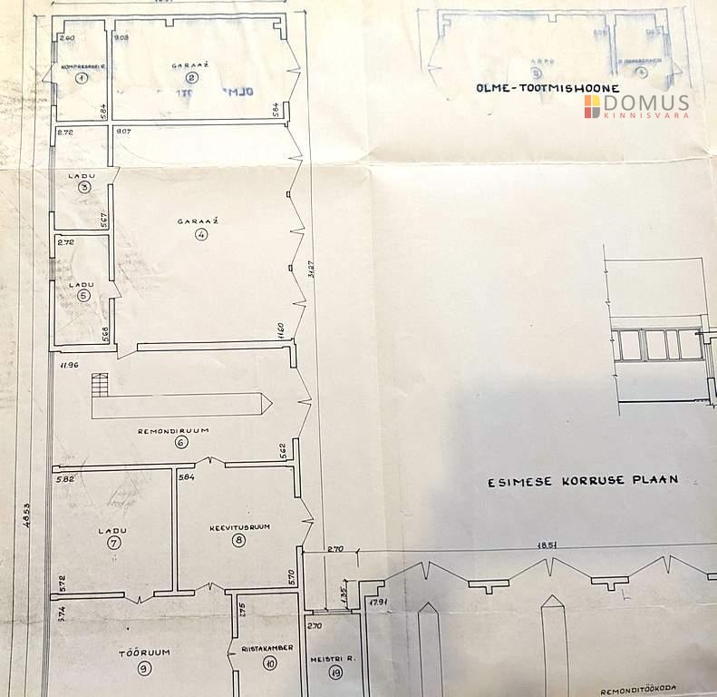 Olme-tootmishoones asuvad büroo-, käitlus-, olme-, garaaži- ja remondiruumid (vt. plaane).