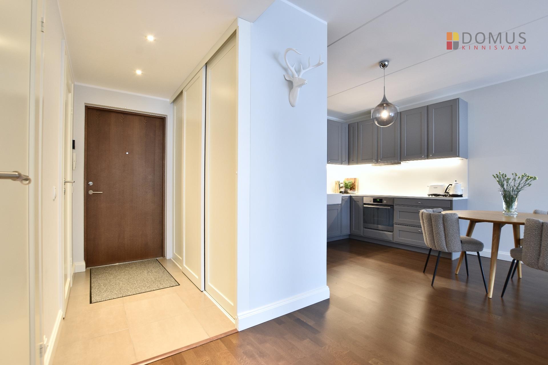 KORTER asub maja kolmandal korrusel ja koosneb avatud köögiga elutoast, kust pääseb avarale rõdule, magamistoast, vannitoast ning eraldi garderoobist/panipaigast. Akendest ja rõdult avanevad vaated lõuna-läänesuunas. Esikus on sisseehitatud garderoobkapp, köögis on kvaliteetne integreeritud köögimööbel koos tehnikaga ning kogu korteris tagab värske õhu ja hea sisekliima soojustagastusega sundventilatsioon. Korteris on keskküte. Korteri juurde kuulub kindel parkimiskoht hoovis ja mugava suurusega keldriboks maja esimesel korrusel.