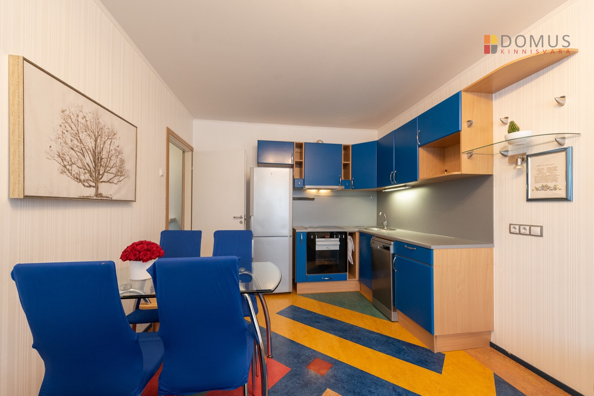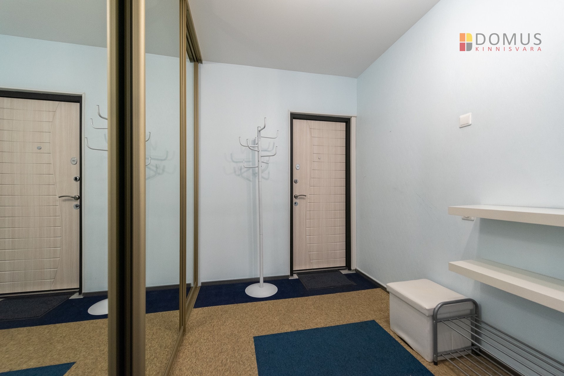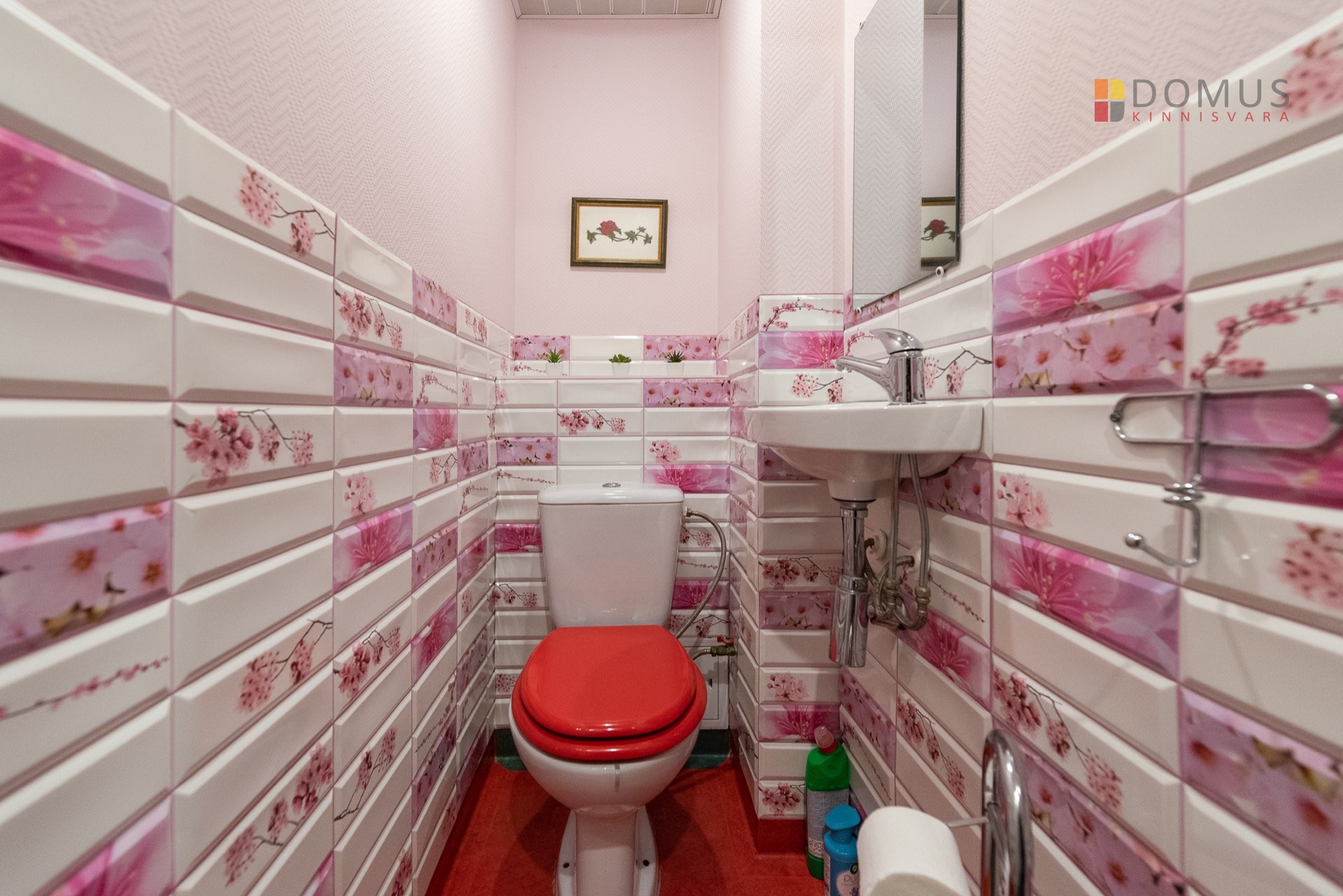 Teise magamistoa rõdu on avatud. WC ja vannitoa seinad ning põrand on plaaditud ning need on eraldi ruumid. Vannitoas on plastpinnaga Balteco vann ja Whirlpool pesumasin. Kõik korteri aknad on vahetatud ja paigaldatud on 2X klaaspaketiga plastraamidega aknad. Eluruumide seinu katab värvitud seinakatte materjal. Laed on valget värvi ja põrandaid katab kas vaip või CO2-neutraalne põrandakate marmoleum. Köök-elutoas on Beko sügavkülma osaga külmik, üsna uus nõudepesumasin Beko, keraamiline pliit Schott, õhupuhasti, ahi Beko, klaaspinnaga laud ja neli tooli, diivan, seinariiulid ja TV kapp.