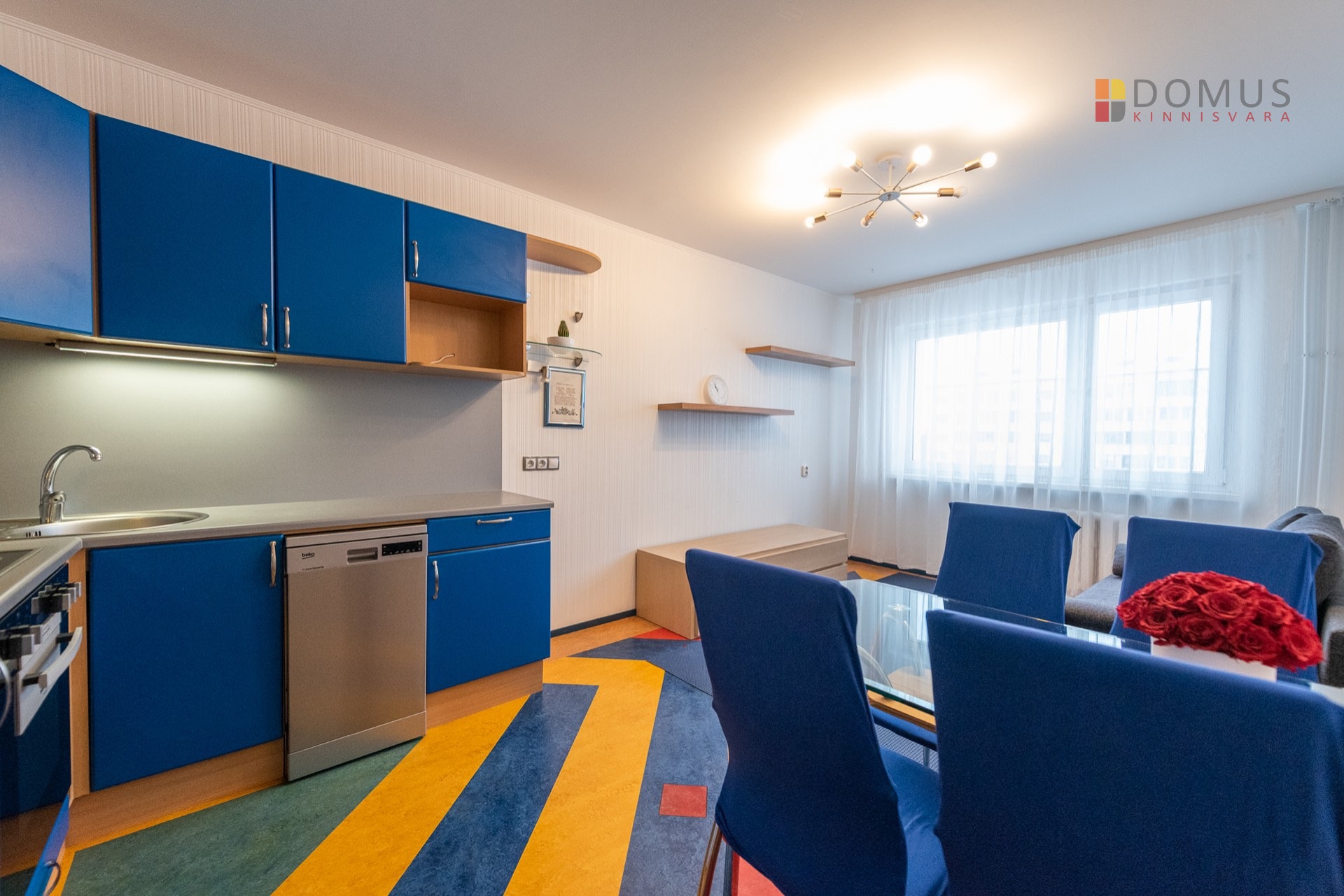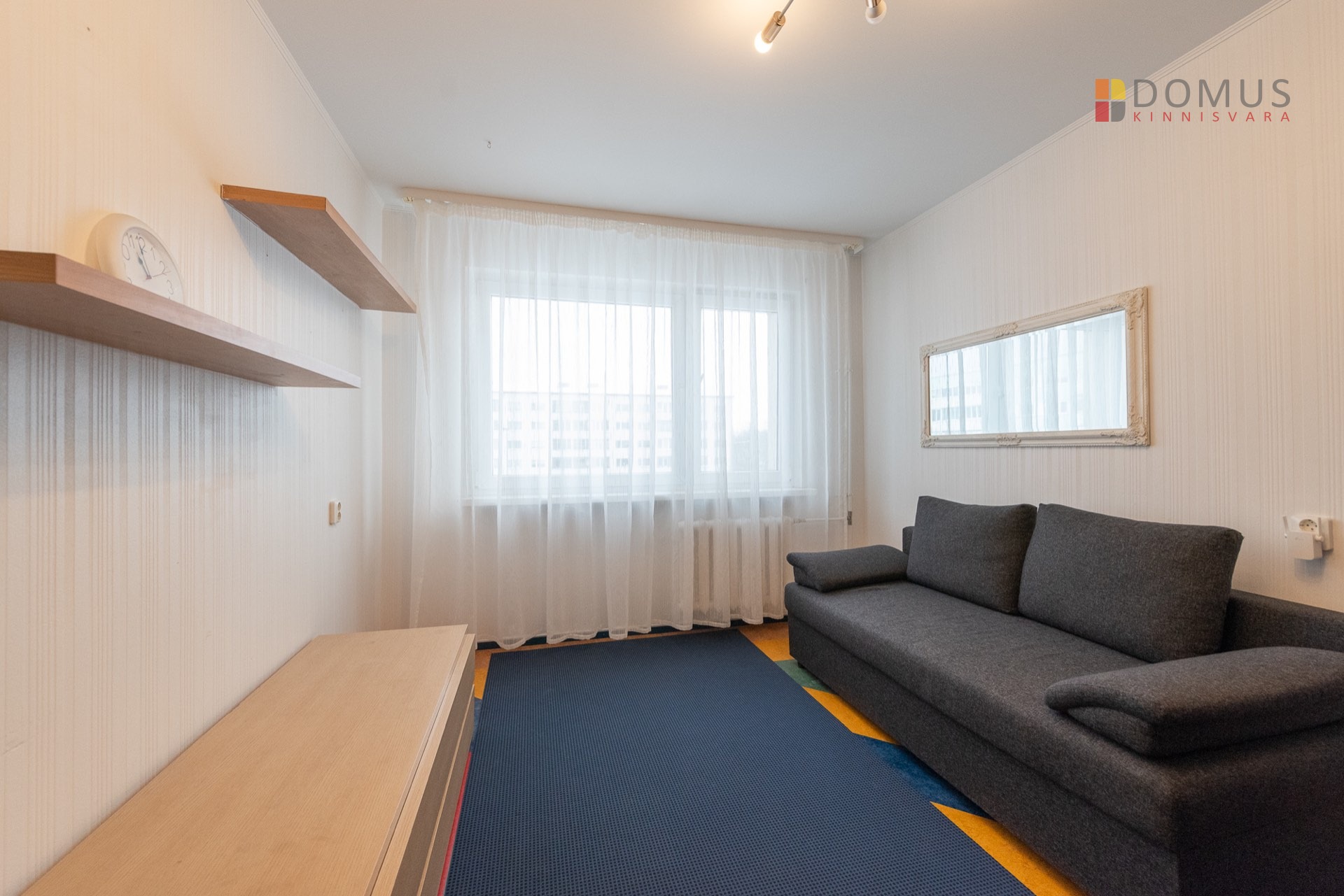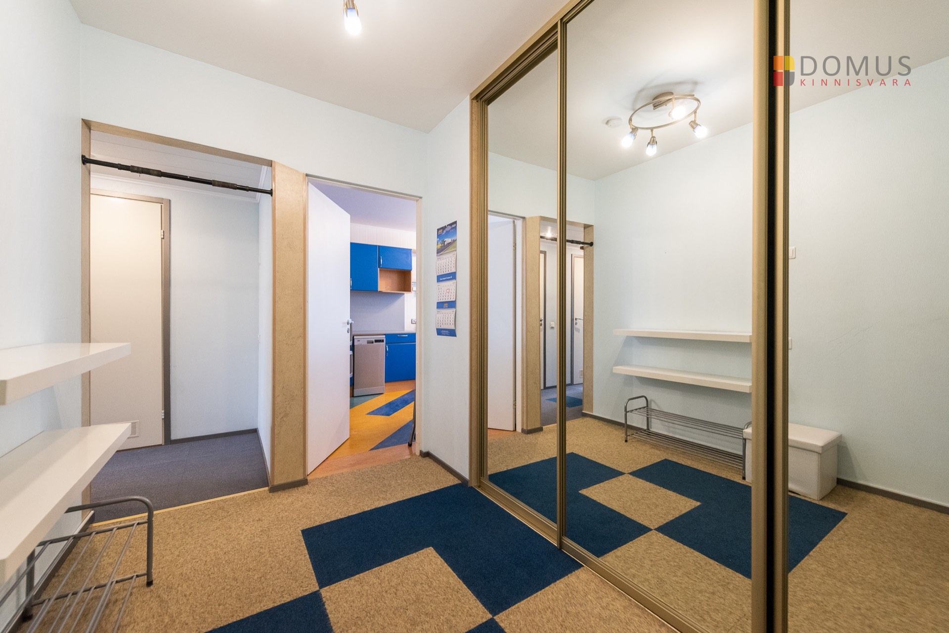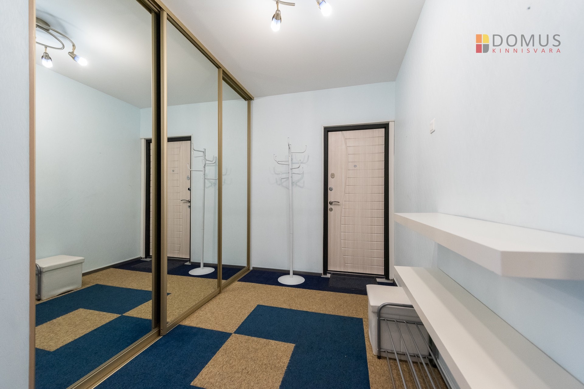 Teise magamistoa rõdu on avatud. WC ja vannitoa seinad ning põrand on plaaditud ning need on eraldi ruumid. Vannitoas on plastpinnaga Balteco vann ja Whirlpool pesumasin. Kõik korteri aknad on vahetatud ja paigaldatud on 2X klaaspaketiga plastraamidega aknad. Eluruumide seinu katab värvitud seinakatte materjal. Laed on valget värvi ja põrandaid katab kas vaip või CO2-neutraalne põrandakate marmoleum. Köök-elutoas on Beko sügavkülma osaga külmik, üsna uus nõudepesumasin Beko, keraamiline pliit Schott, õhupuhasti, ahi Beko, klaaspinnaga laud ja neli tooli, diivan, seinariiulid ja TV kapp.