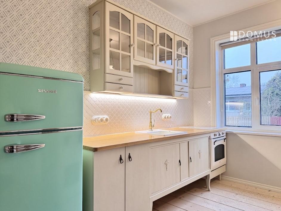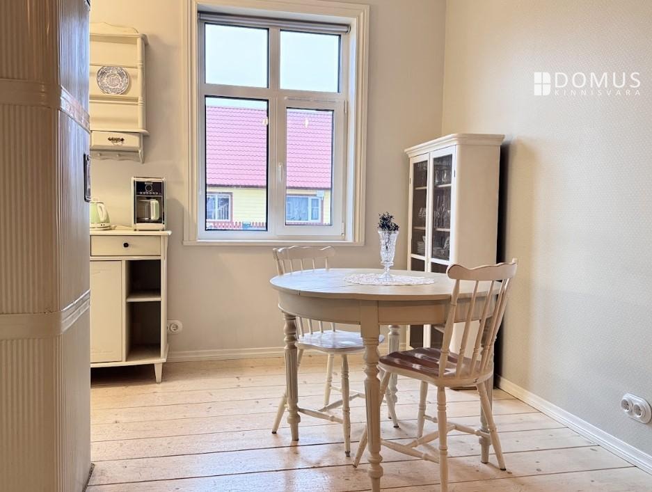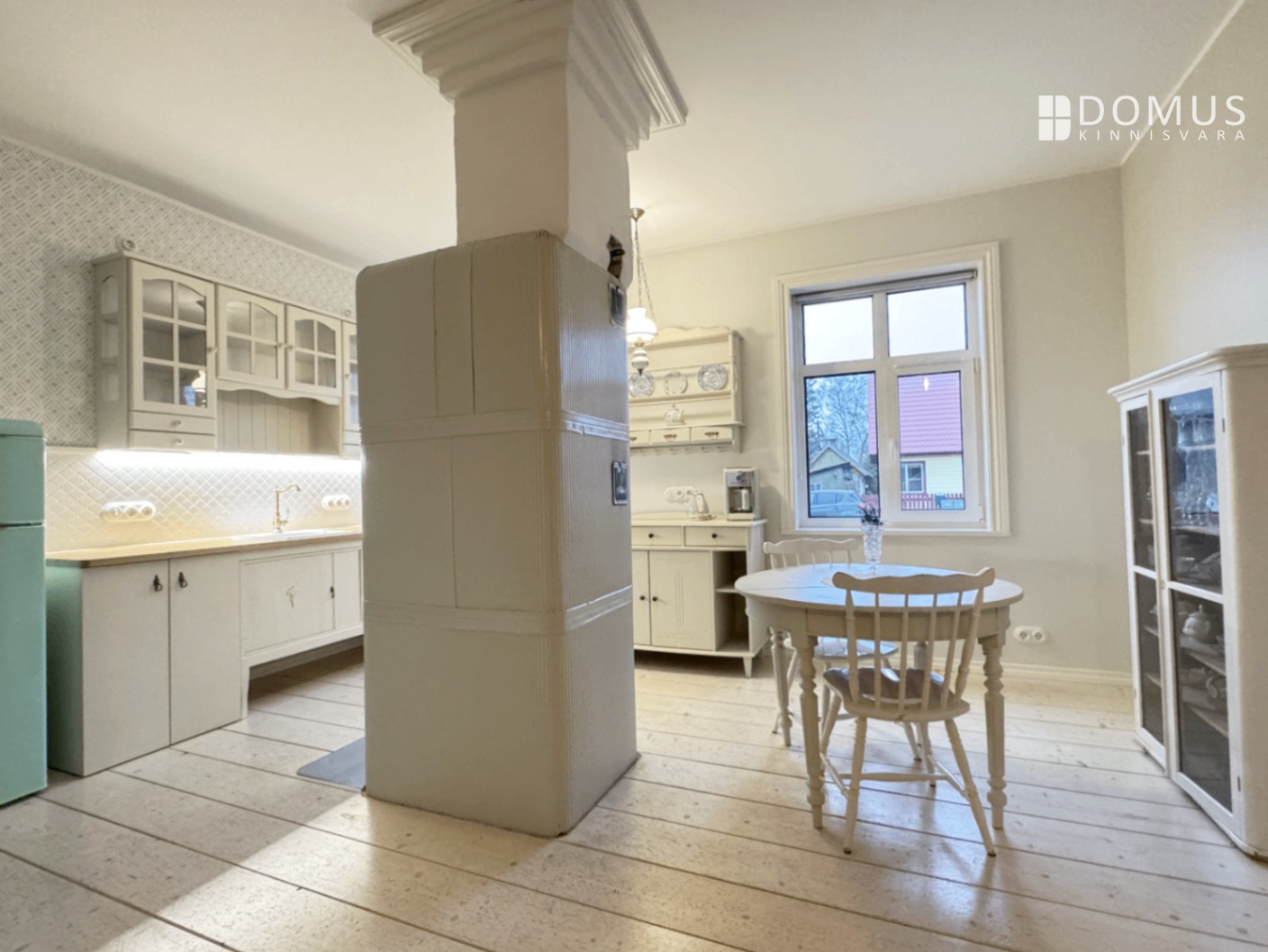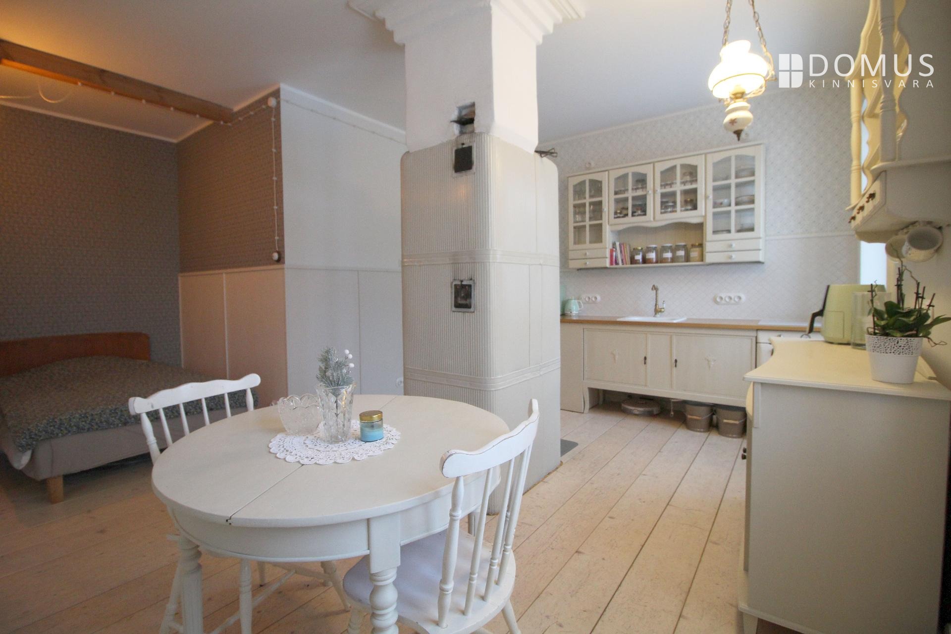 Korteris on esikust pääsud WC-duširuumi ja tuppa, viimane on nutikalt jagatud köögi-, elutoa- ja magamistsoonideks. Korteri remondi käigus soojustati korteri seinad, lagi, valati kogu ulatuses uus betoonpõrand, mis kaeti massiivse laudisega, paigaldati kolmekordse pakettklaasiga aknad ja uued uksed, asendati elektripaigaldis ja torustik. Korter on stiilne, väga hubane, viimistluses on kasutatud kvaliteetseid materjale ja heledaid toone. Sooja annab keset tuba asuv ahi, küta see kuumaks ja pane pajaroog sinna küpsema.