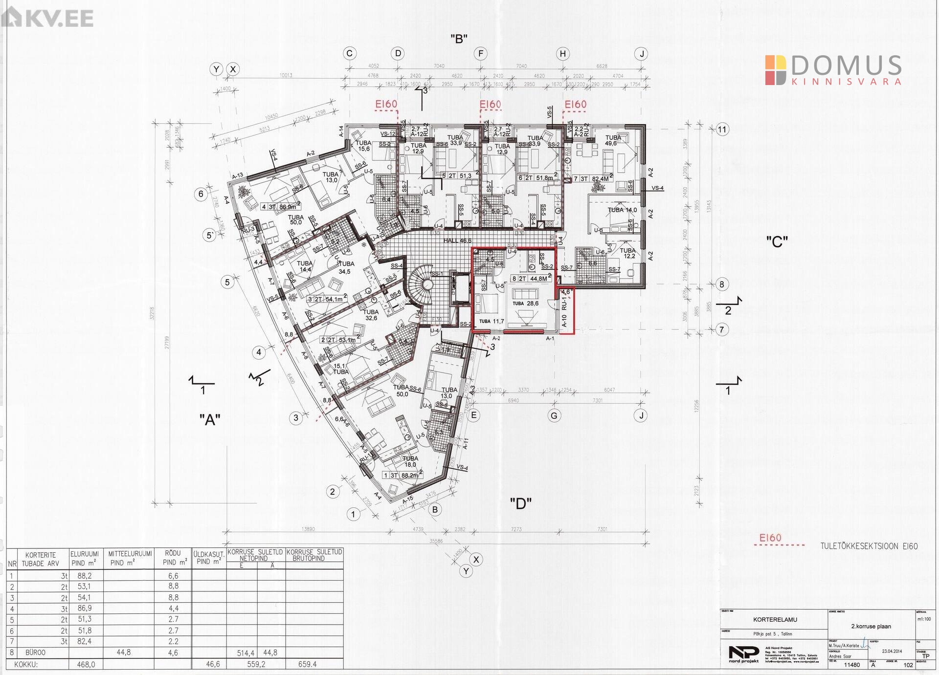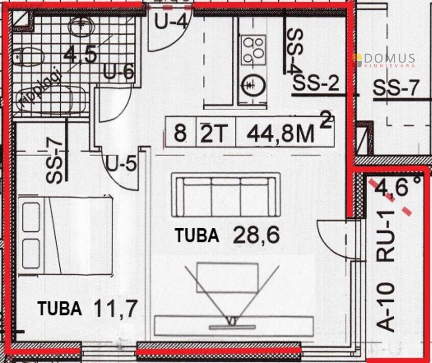Korteri üldpind on 44,8 m²