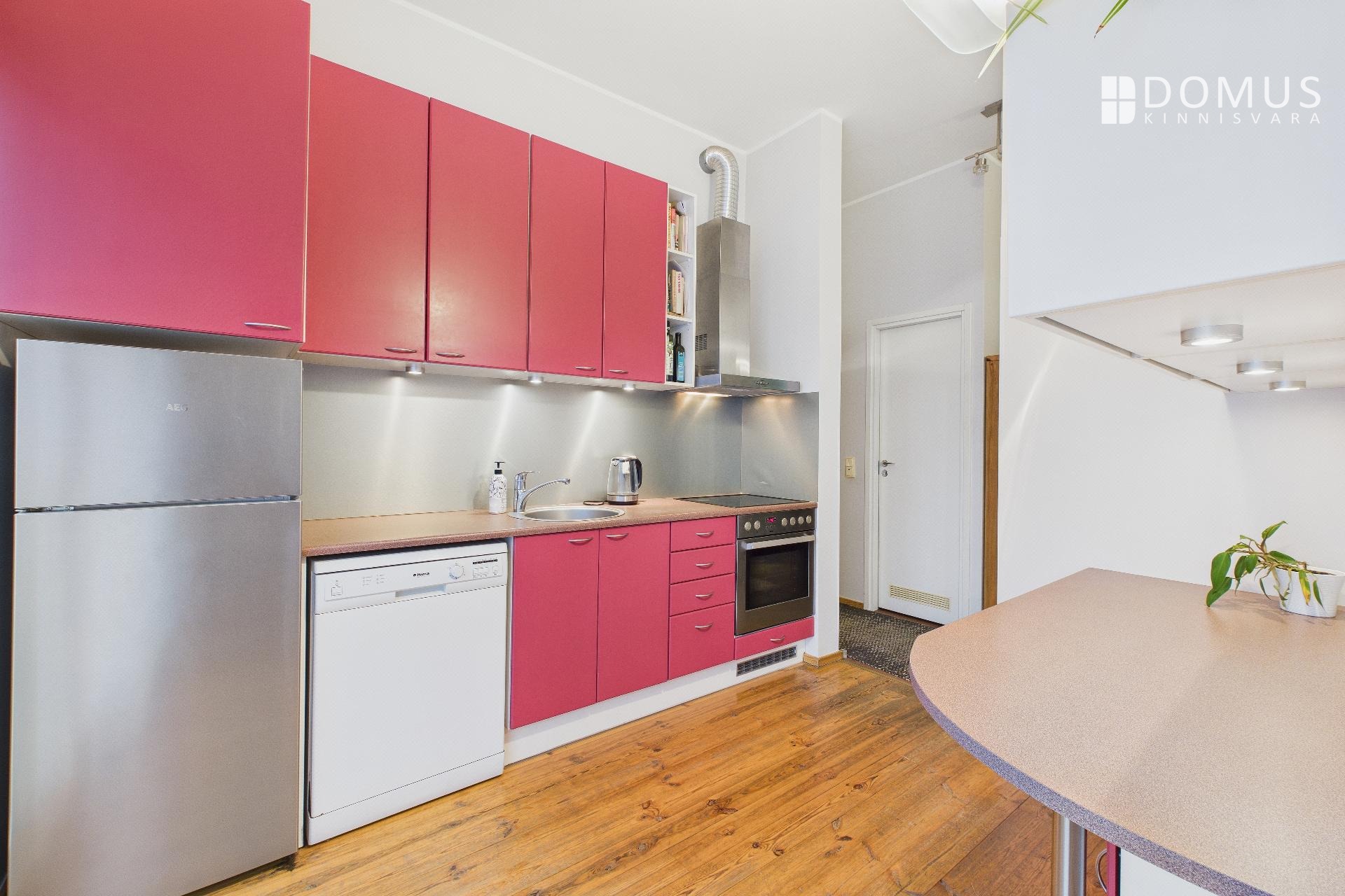 saun, internet, televiisor, pesumasin, mööbel, parkett, külmkapp, dušš