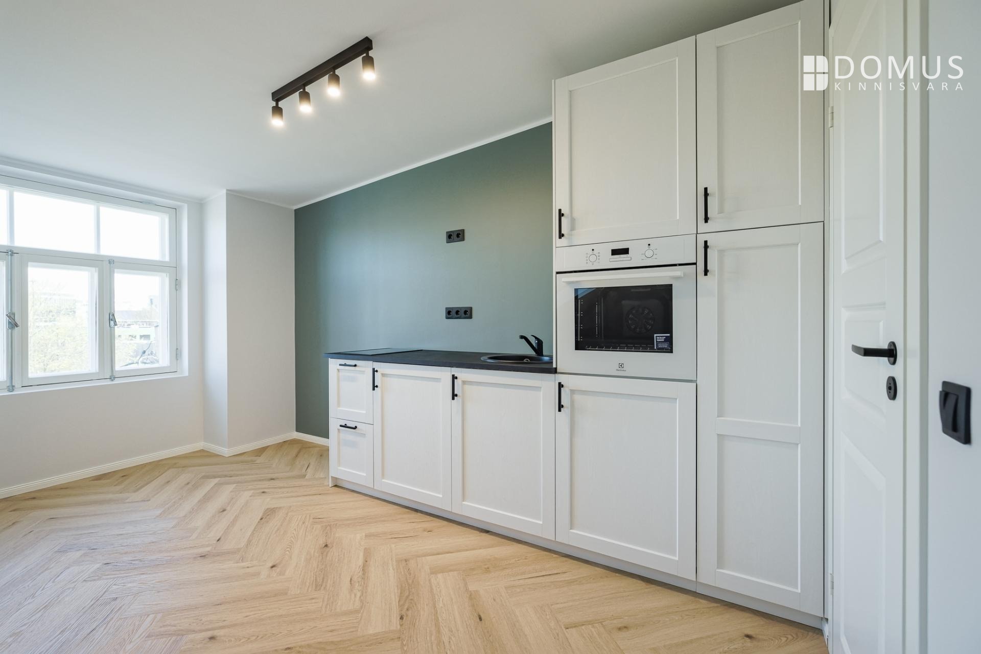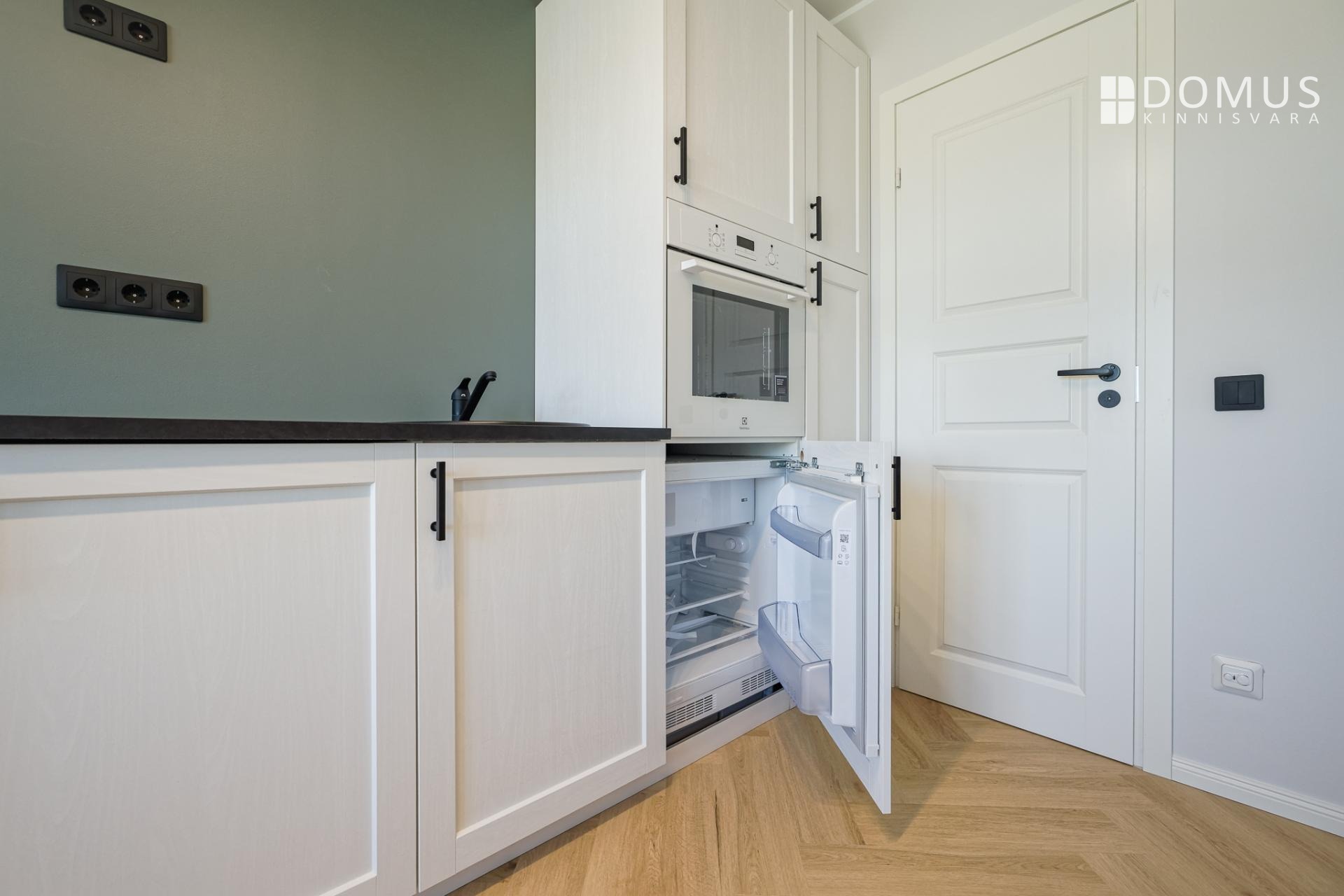 3. korruse stuudiokorter on suurusega (20,8 m²). Korter on sisustatud kvaliteetse köögimööbli ja -tehnikaga ning stiilse, suurte keraamiliste plaatidega plaaditud vannitoaga, kus on mugav dušinurk. Põrandal on kvaliteetne SPC vinüül kalasabaparkett, mis on vee- ja kriimustuskindel ning sobib ka põrandaküttega.