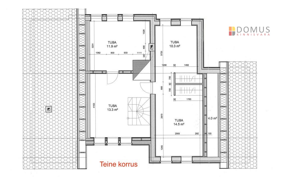 Elamu suletud netopind on 142,7 m², millest eluruumide pind 112,1 m², projekti järgi on ette nähtud 5 tuba.