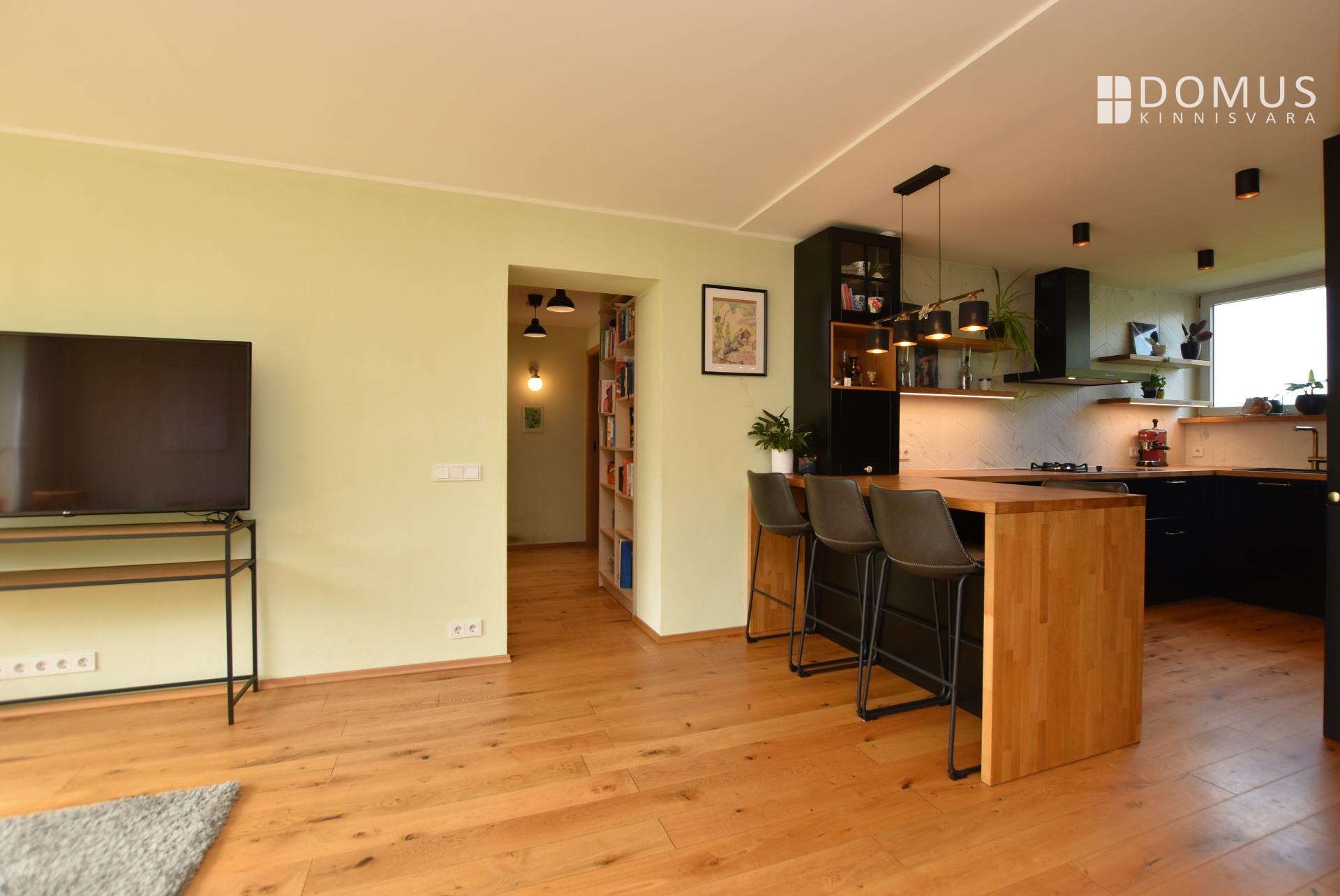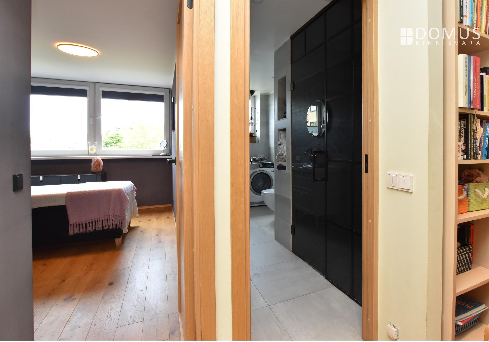 Kolmandal korrusel asuv avar korter on läbi maja planeeringuga, pakkudes palju loomulikku valgust. Igal korrusel on vaid kaks korterit, mis lisab eksklusiivsust ja vaikust. Erandliku lahendusega korteris on aknad kõikides ruumides, isegi esikus ja vannitoas. Rõdule, mis avaneb sisehoovi rohelusse, pääseb esikust. Suures magamistoas asub eraldiseisev walk-in garderoob, köögis täisvarustuses kaasaegne köögimööbel ja tehnika – kõik, mida kokkamiseks vajad, on juba olemas.