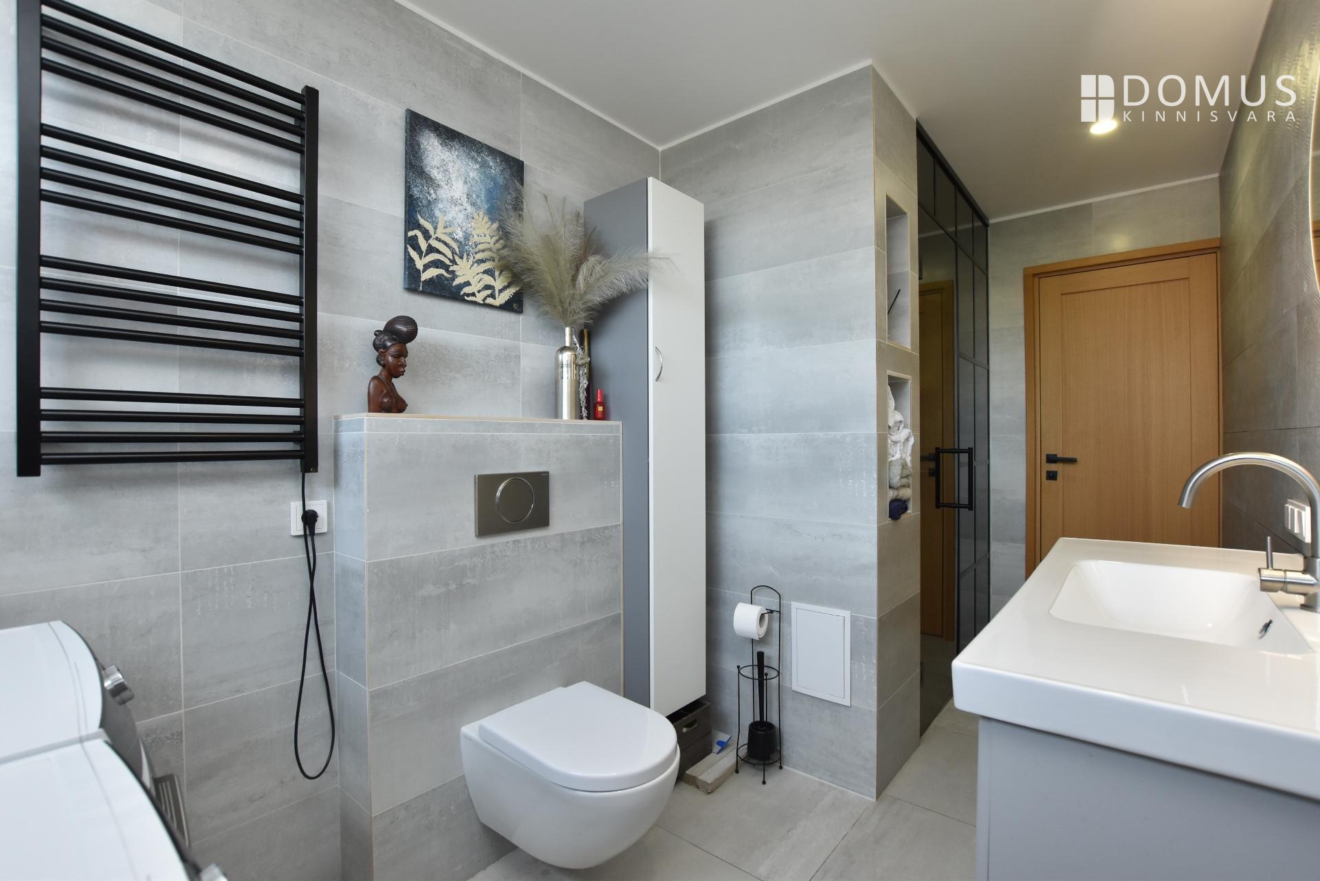 Esikus on sisseehitatud mahukas lükandustega garderoobikapp. Tubade põrandaid katab naturaalne puitparkett, vannitoas kvaliteetsed keraamilised plaadid, tubade seinad on kaetud lubikrohvi ja -värviga.