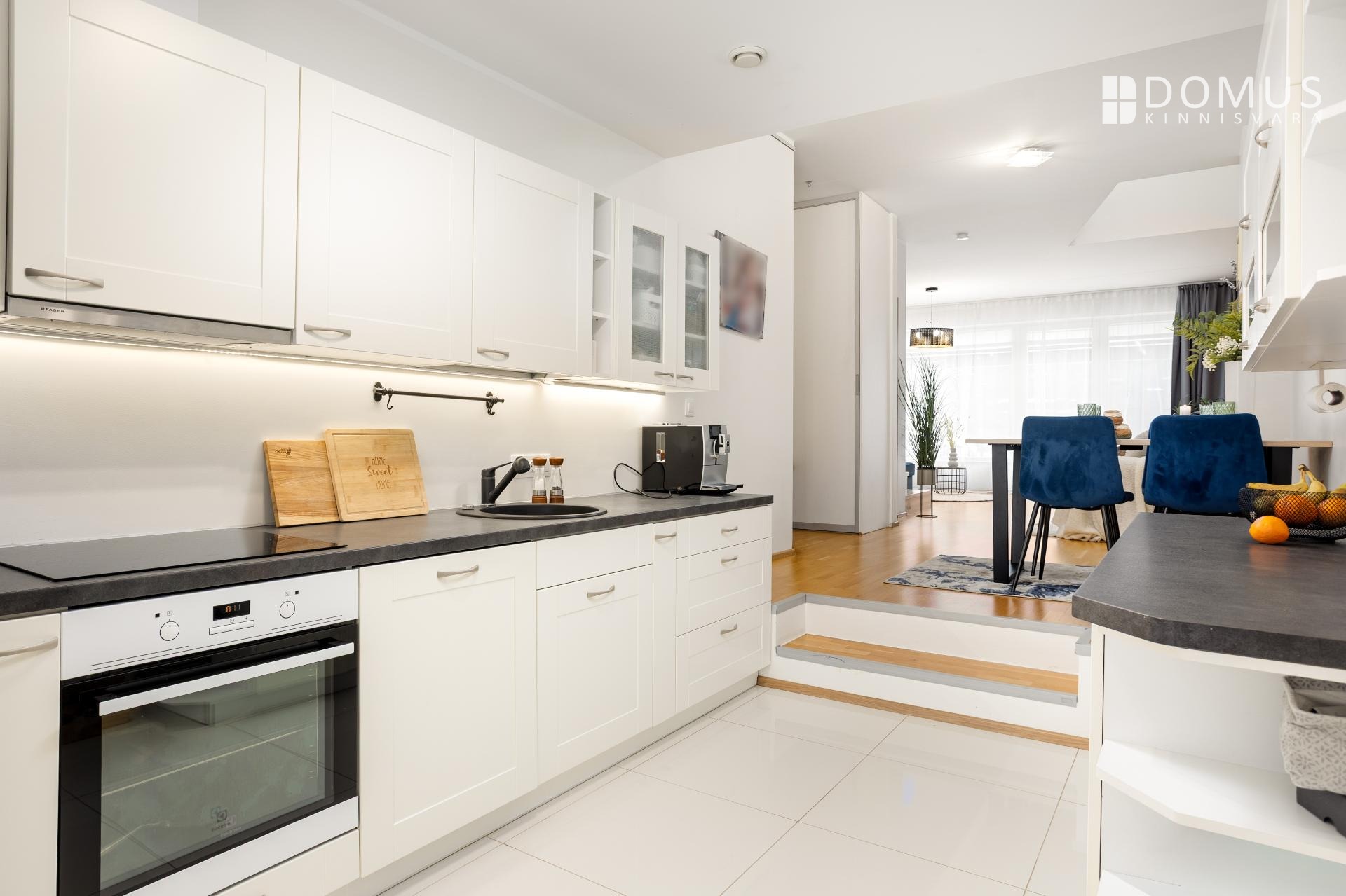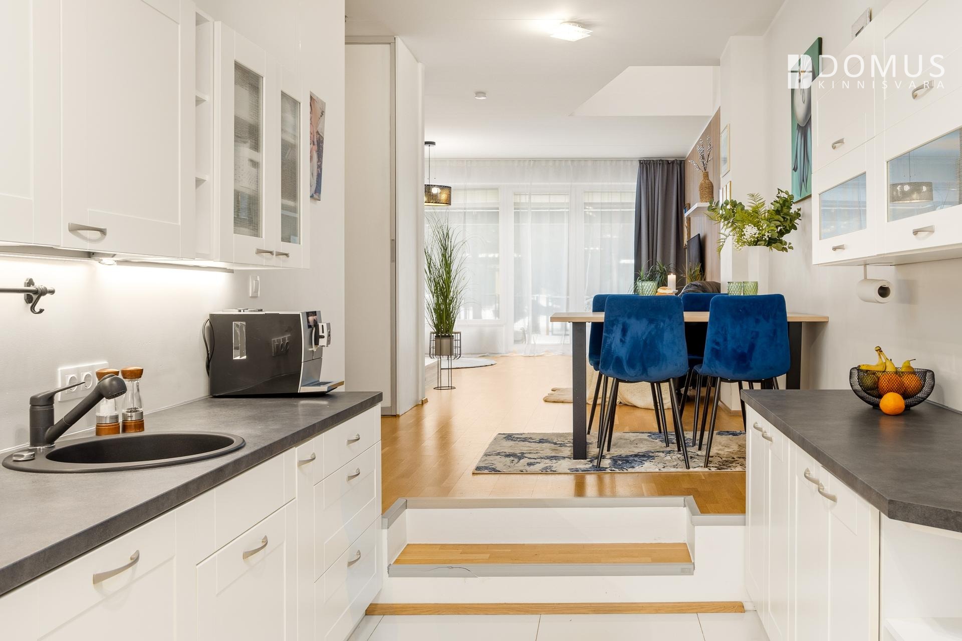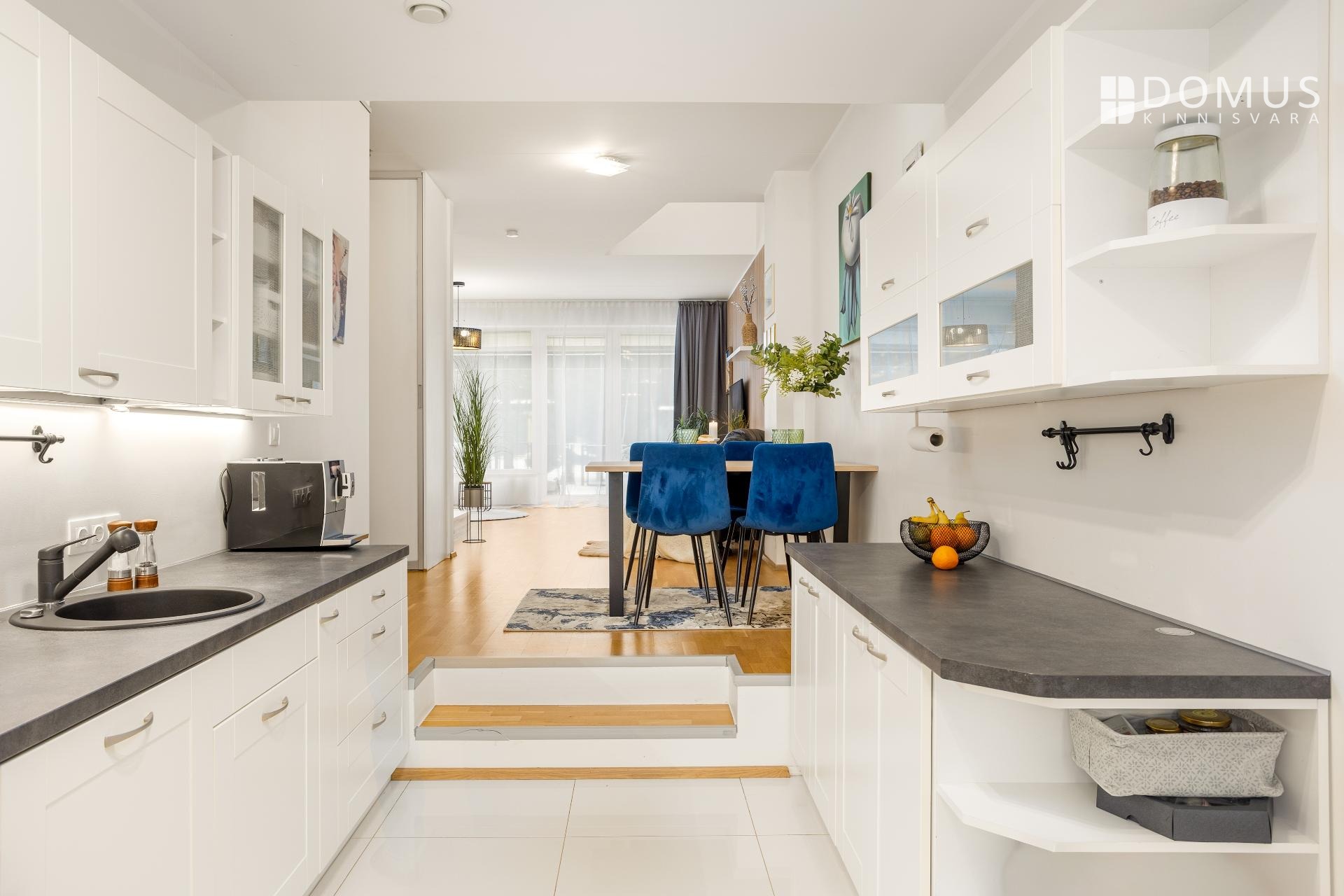 Avatud köök-söögituba (köök 9,1 m² ja söögituba 10,4 m²) on paigutatud hommiku- ja päevapäikese suunda.