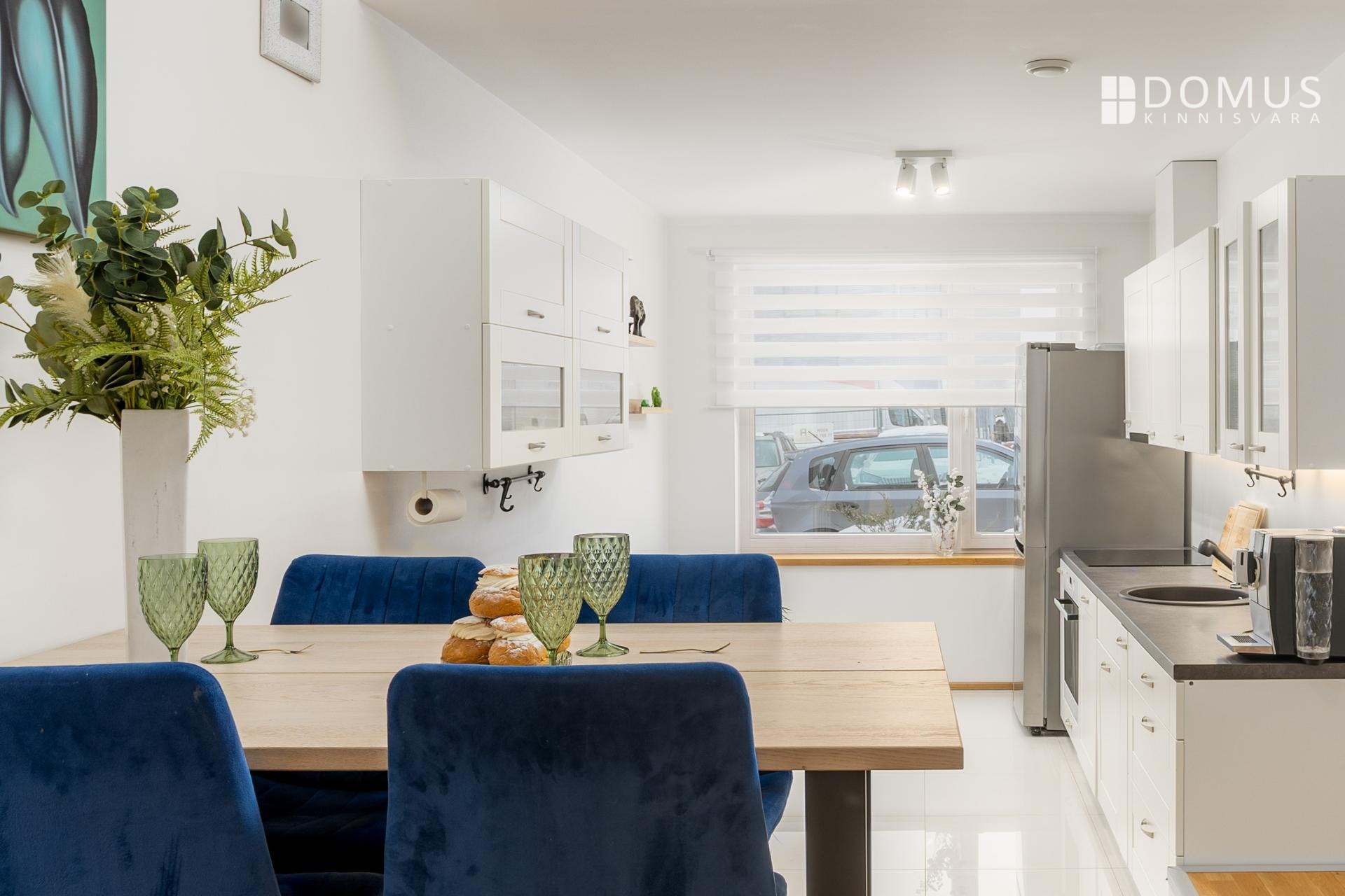 Avatud köök-söögituba (köök 9,1 m² ja söögituba 10,4 m²) on paigutatud hommiku- ja päevapäikese suunda.