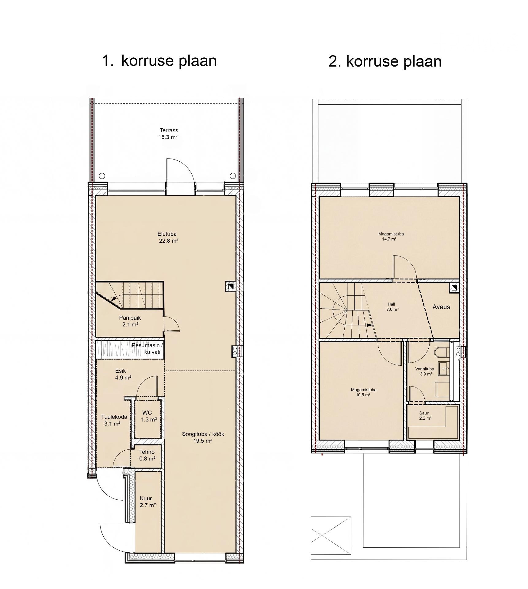 2 eraldi tiibades paiknevat magamistuba (14,7 m² ja 10,5 m²)
