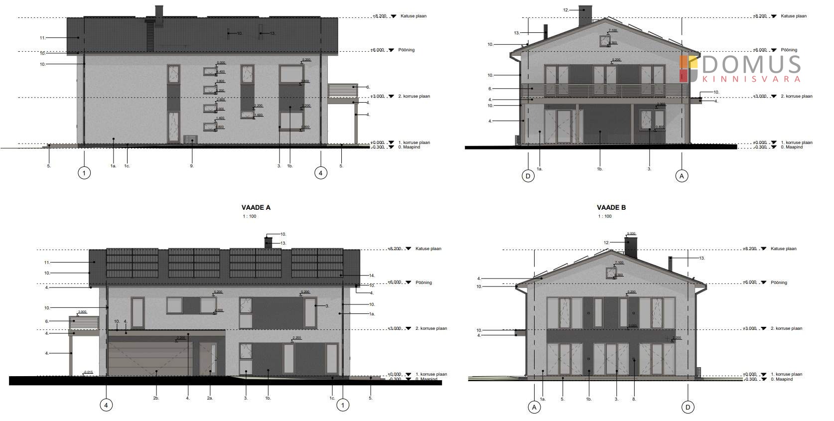 Maja esialgne energiaklass A, planeeritud päikesepaneelid.