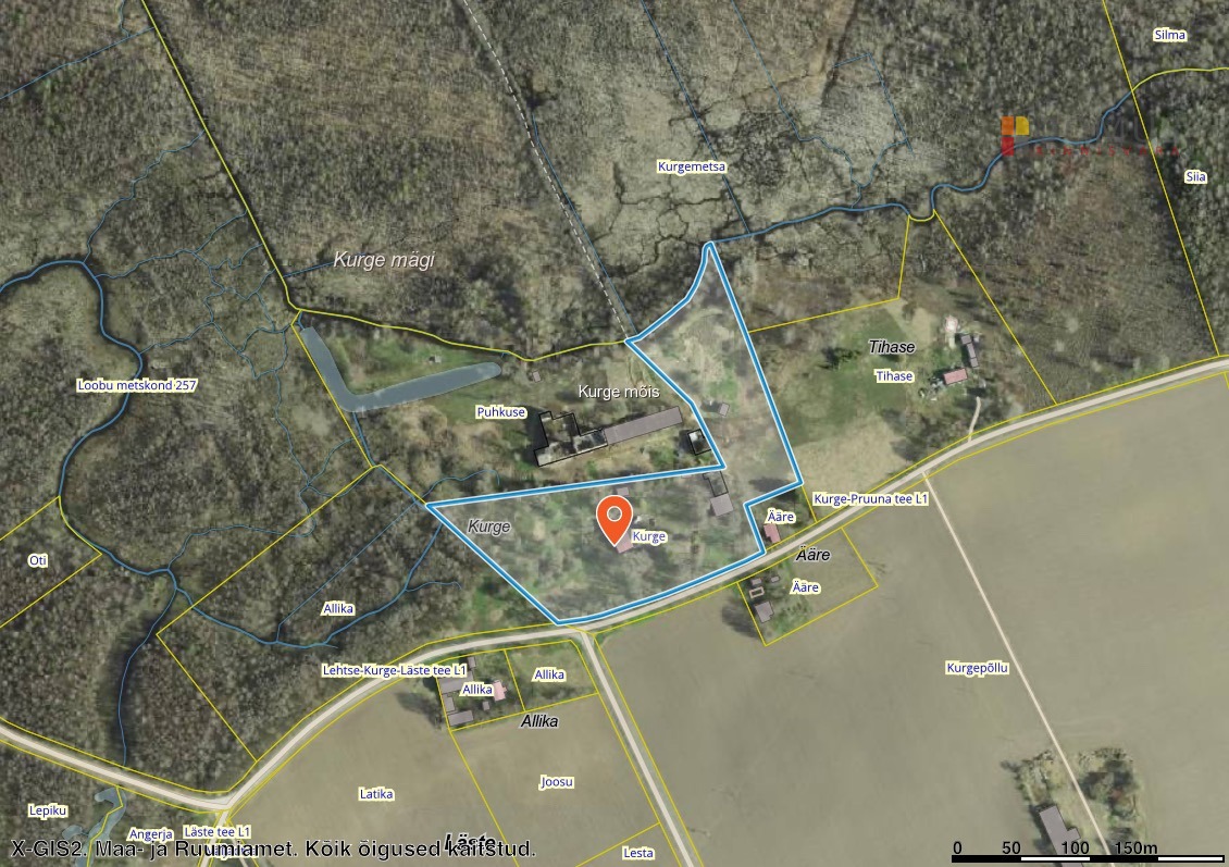 Kurge kinnistul pindalaga 25575 m² asuvad ehitisregistri järgi elamu-kontor, kuur, alajaam, ladu, kaalumaja, valvemaja. Kinnistu sihtotstarve on 100% maatulundusmaa.