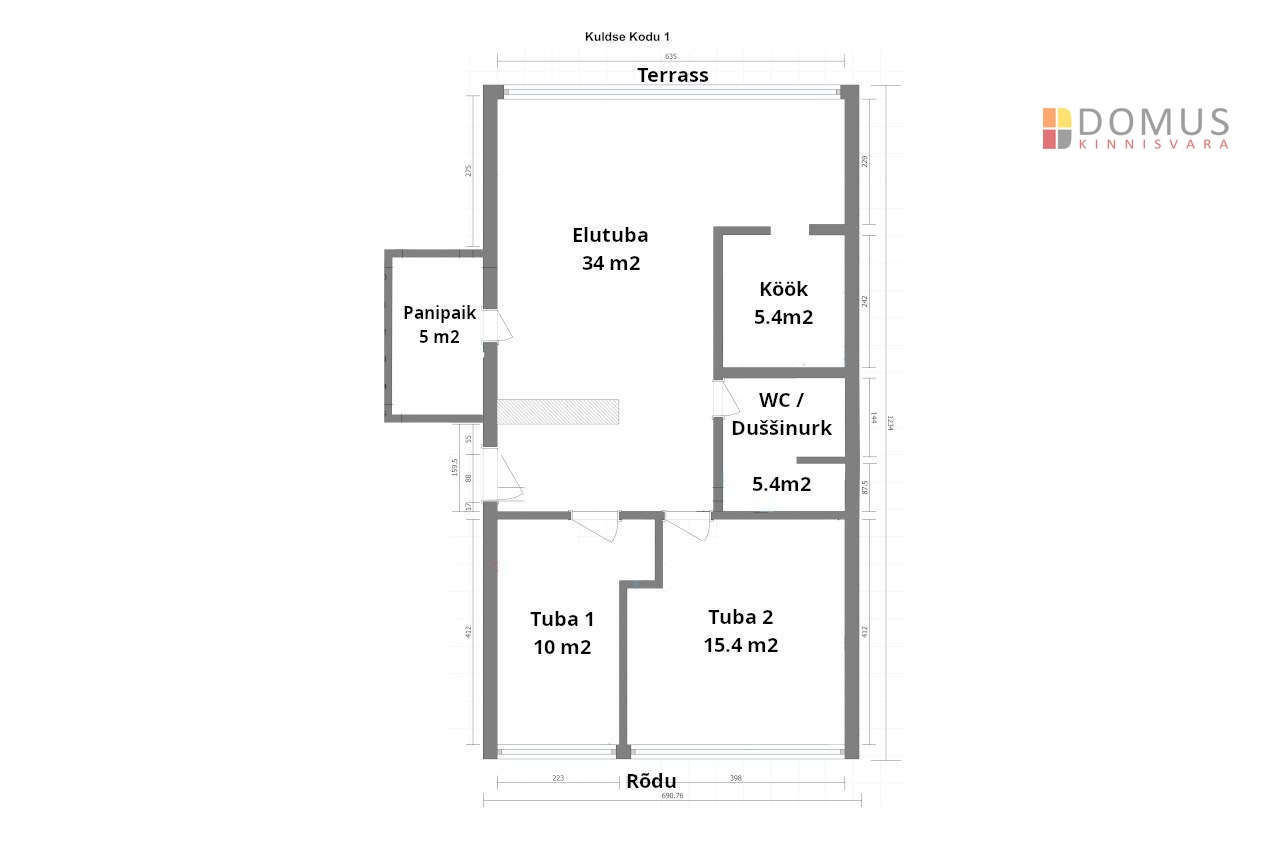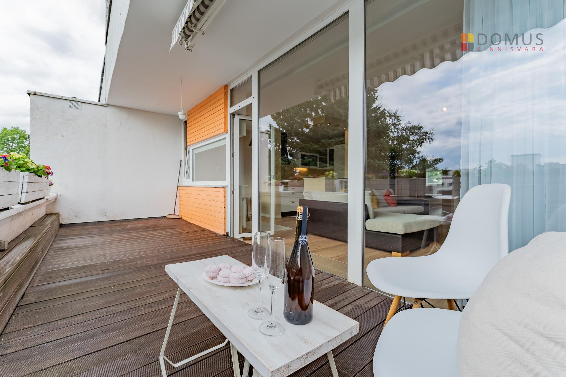 Korteri pind on 70,6 m², millele lisandub 5 m² panipaik otse korteri seest. Eluruumide juurde kuuluvad õhtuse päikese poole suur terrass ja hommikuse päikese poole klaasitud rõdu, mis loovad mõnusa võimaluse nautida privaatsust ja väliruumi igal aastaajal – ideaalne nii hommikukohviks kui ka õhtuseks lõõgastumiseks.