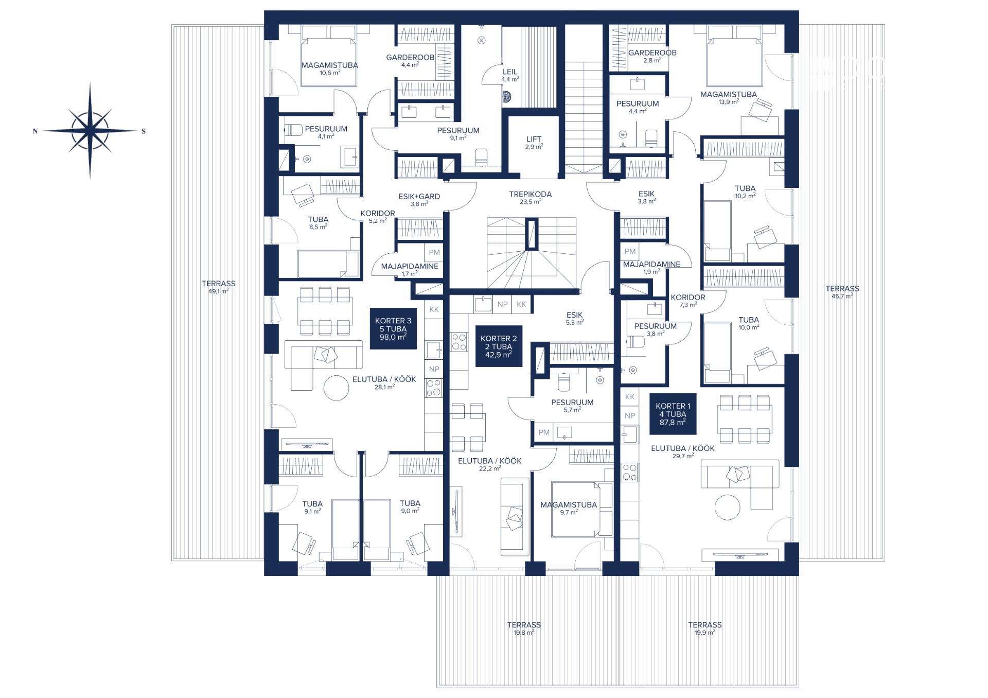 Korter nr 3 – 98,0 m² suurune 5-toaline kodu suurele perele