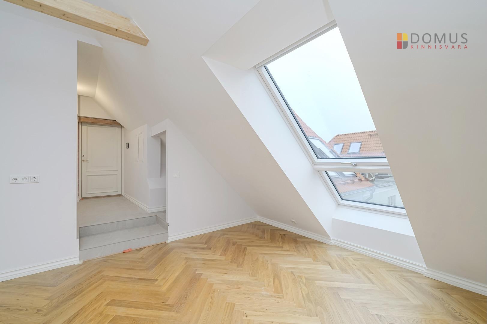 Avar korter asub läbi kahe korruse (III-IV) ja elutoast avaneb läände 7 m² katuseterrass. Korterisse on paigaldatud konditsioneer. Pesuruumis on vann.