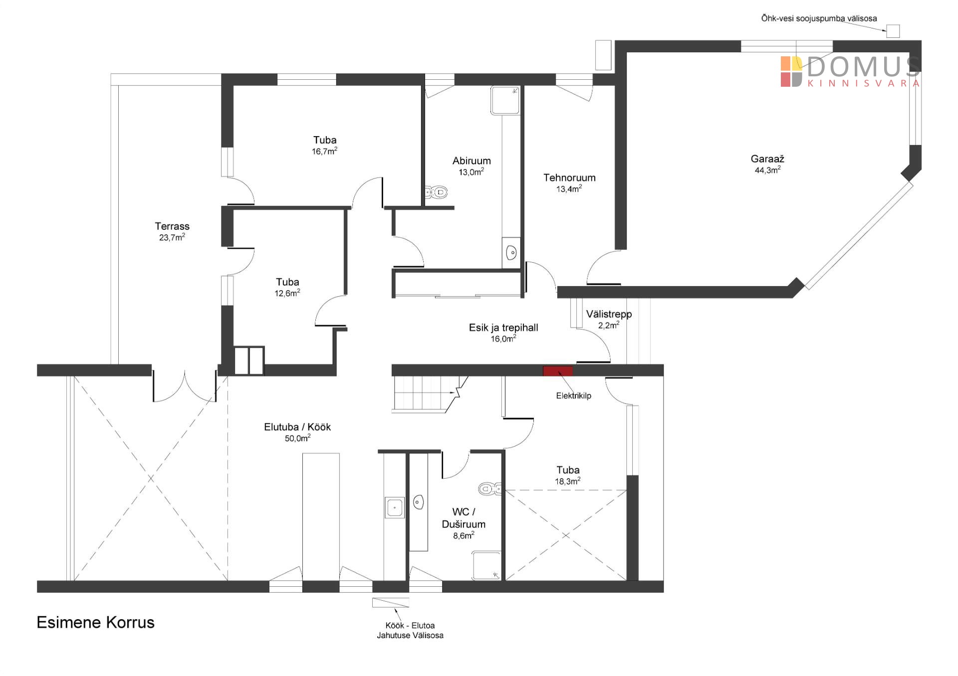 Lisaks asub esimesel korrusel mugavaks parkimiseks garaaž (44,3m²) otse sissepääsuga tehnoruumi ja sealt esikusse.
