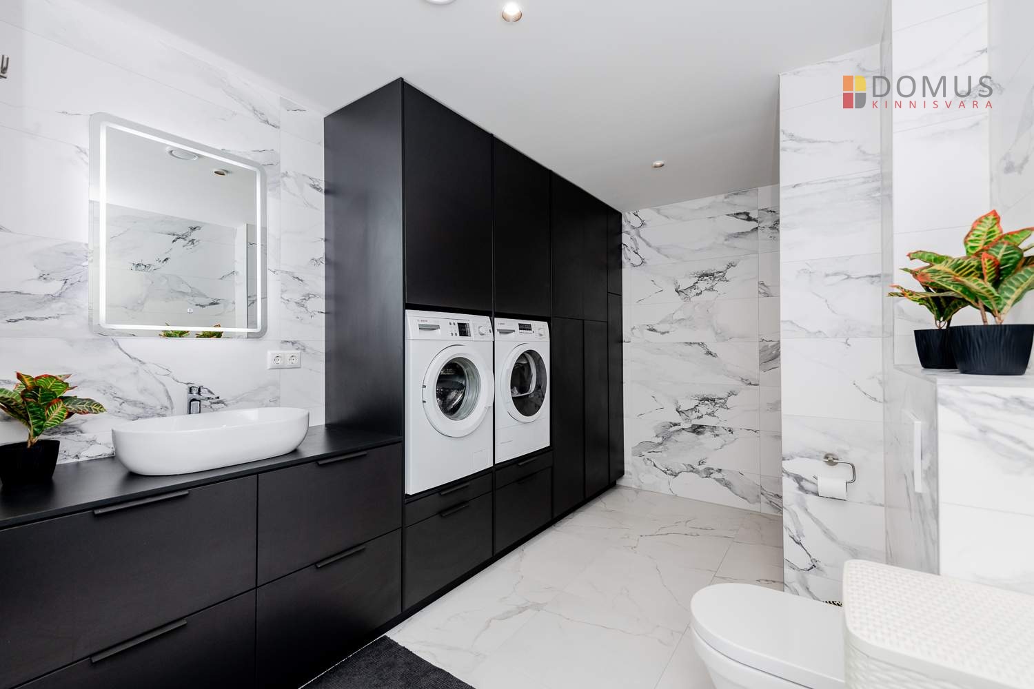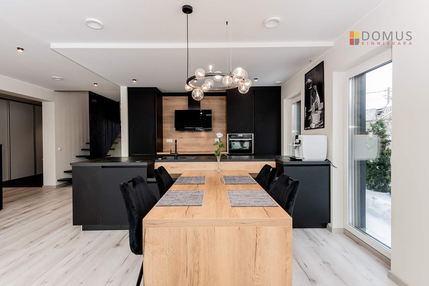 Köögis on eritellimusel valmistatud kvaliteetne köögimööbel tehnikaga. Hea suurusega ja mahukate sahtlite ja valamuga köögisaar koos söögilauaga on mugav