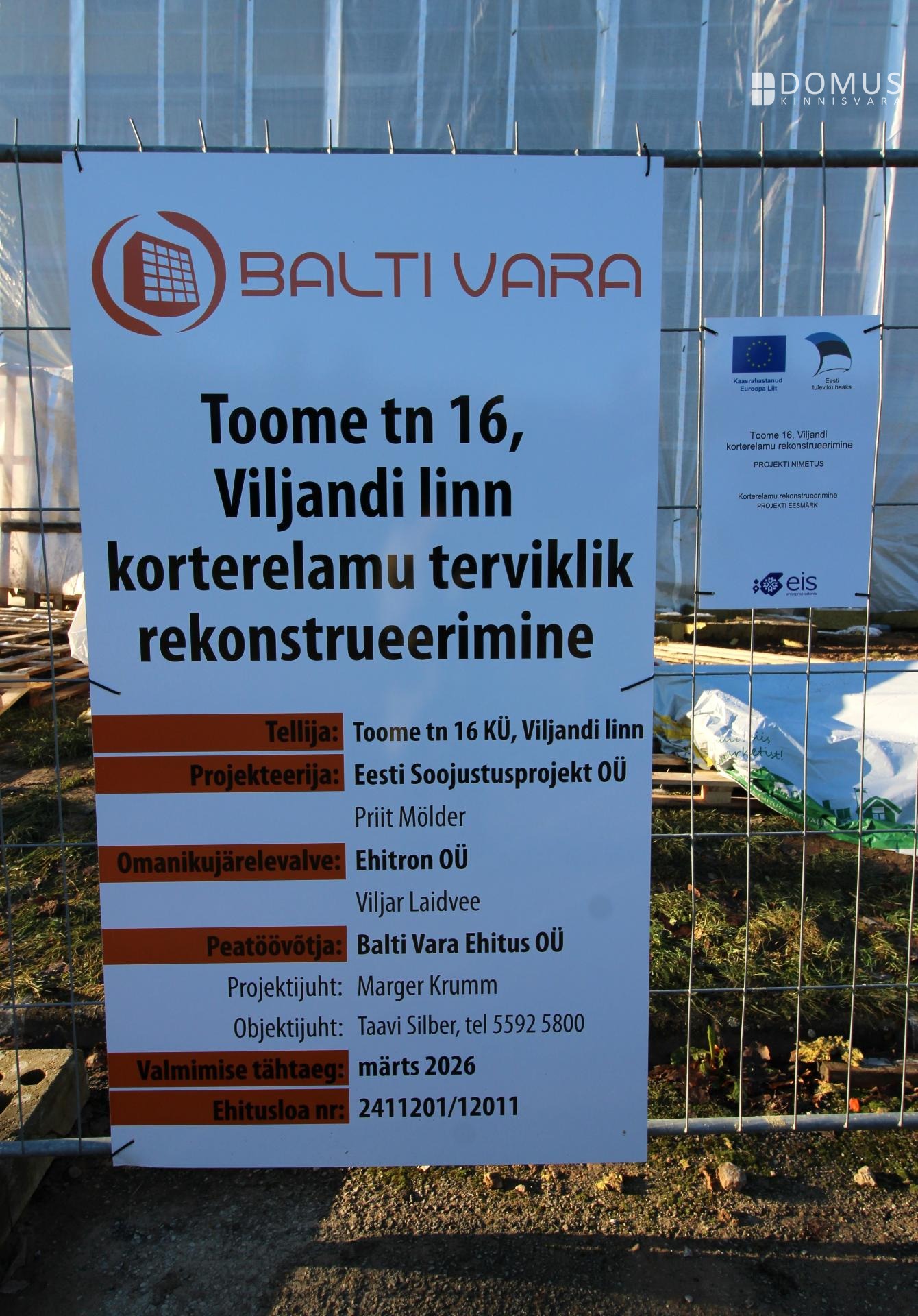 Hetkel on töös kortermaja renoveerimine. See valmib see juba mõne kuu pärast! Tööde lõpetamise tähtaeg on juba 31.märts 2026.a.
