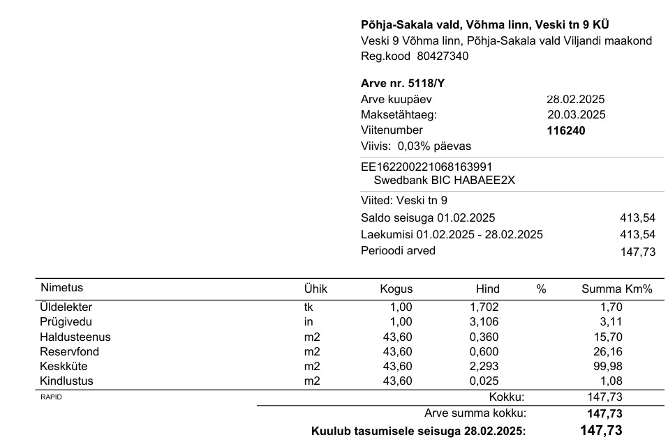 Kommunaalkulude info leiad kuulutuse lõpus olevatelt piltidelt.