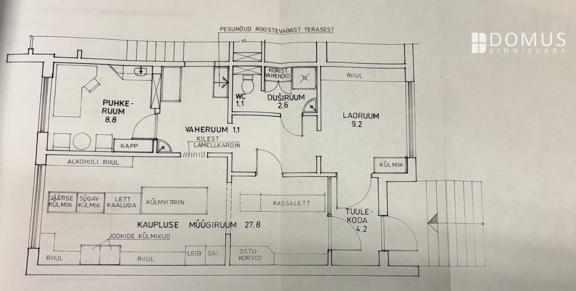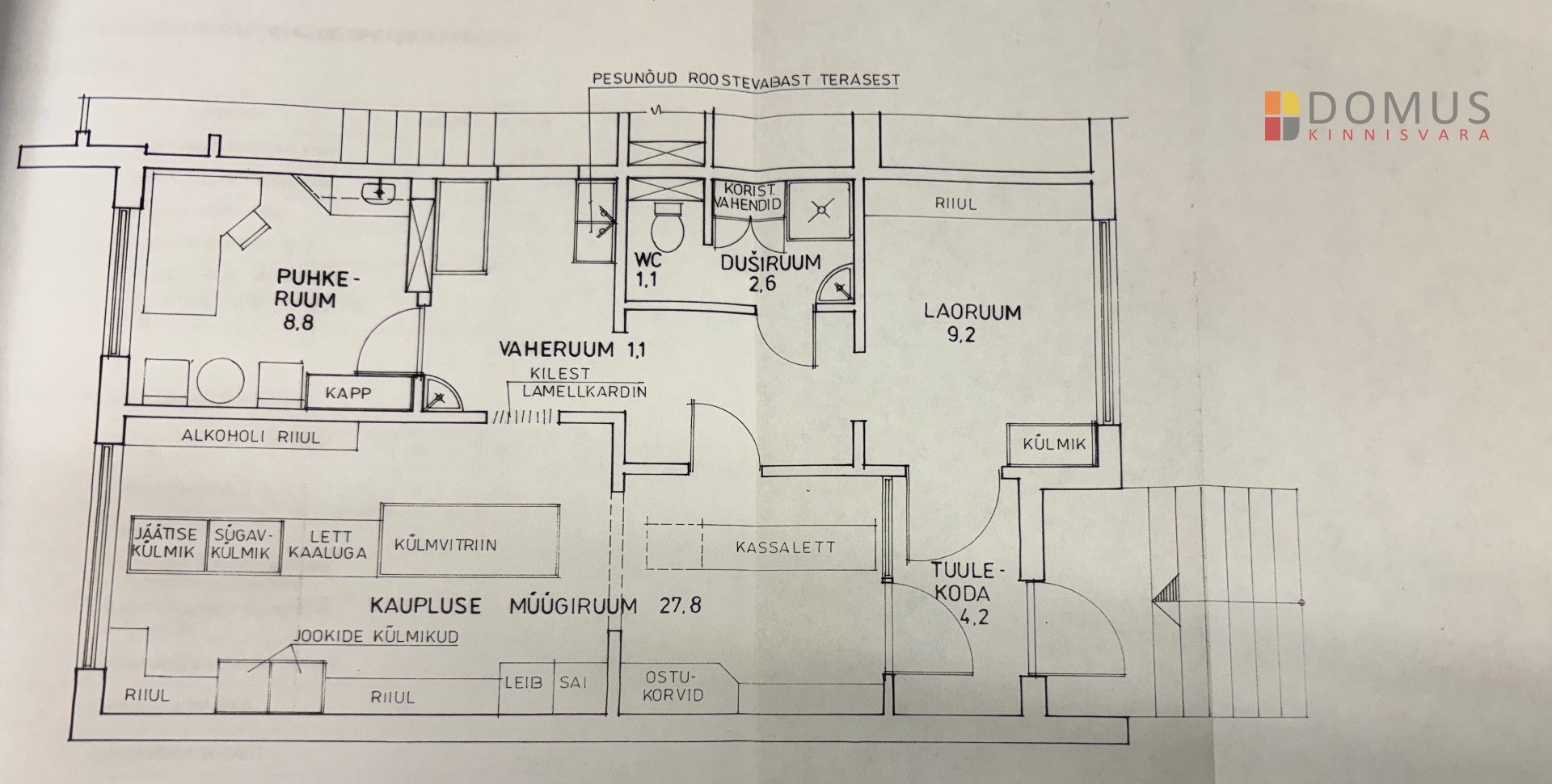Olemas korteri ümberehitamise projekt kaupluseks, millega on võimalik tutvuda.