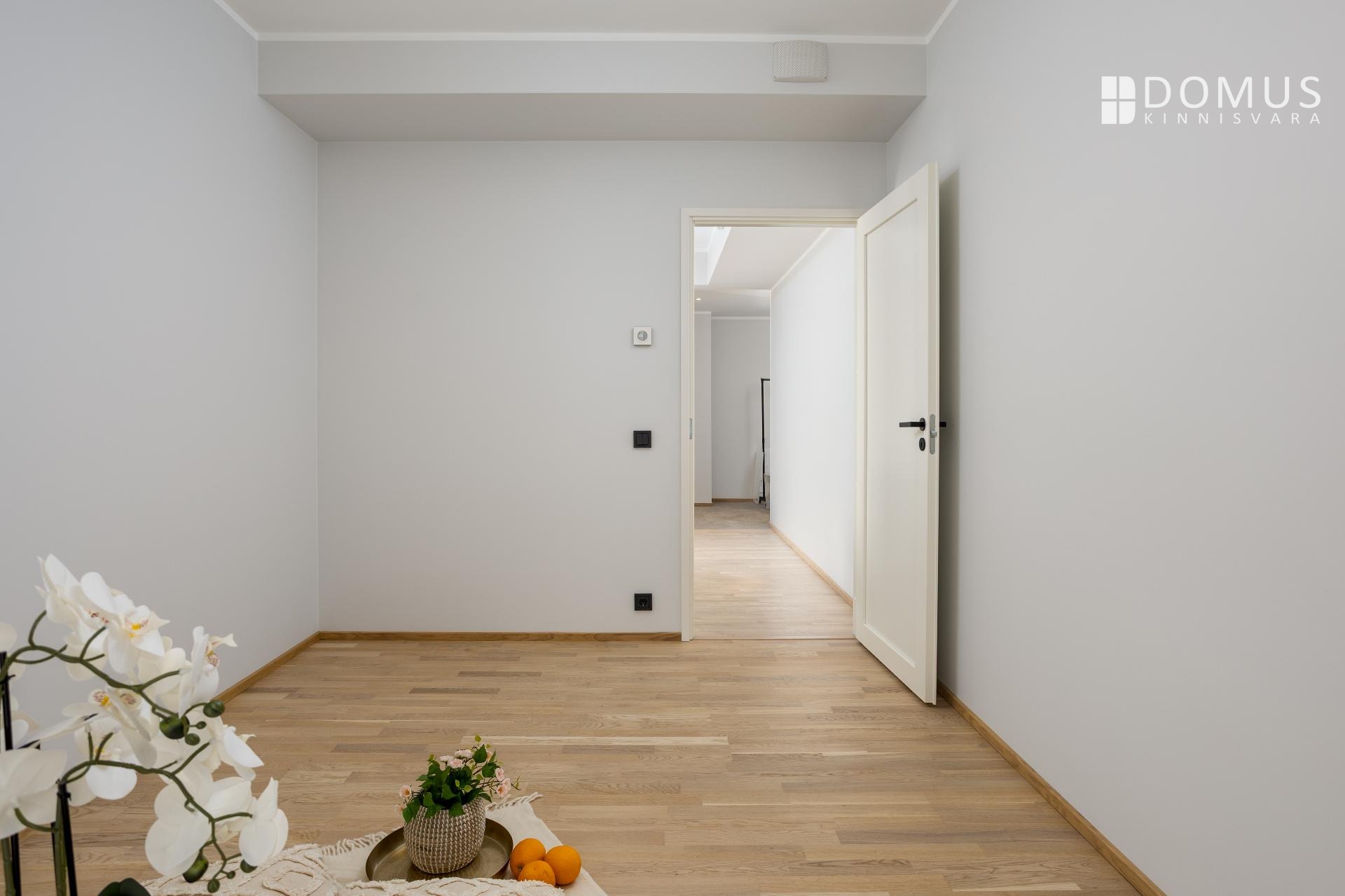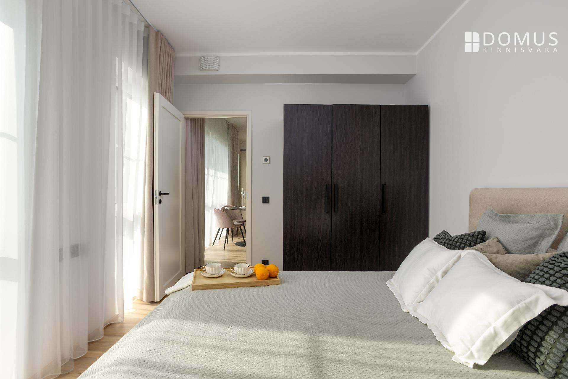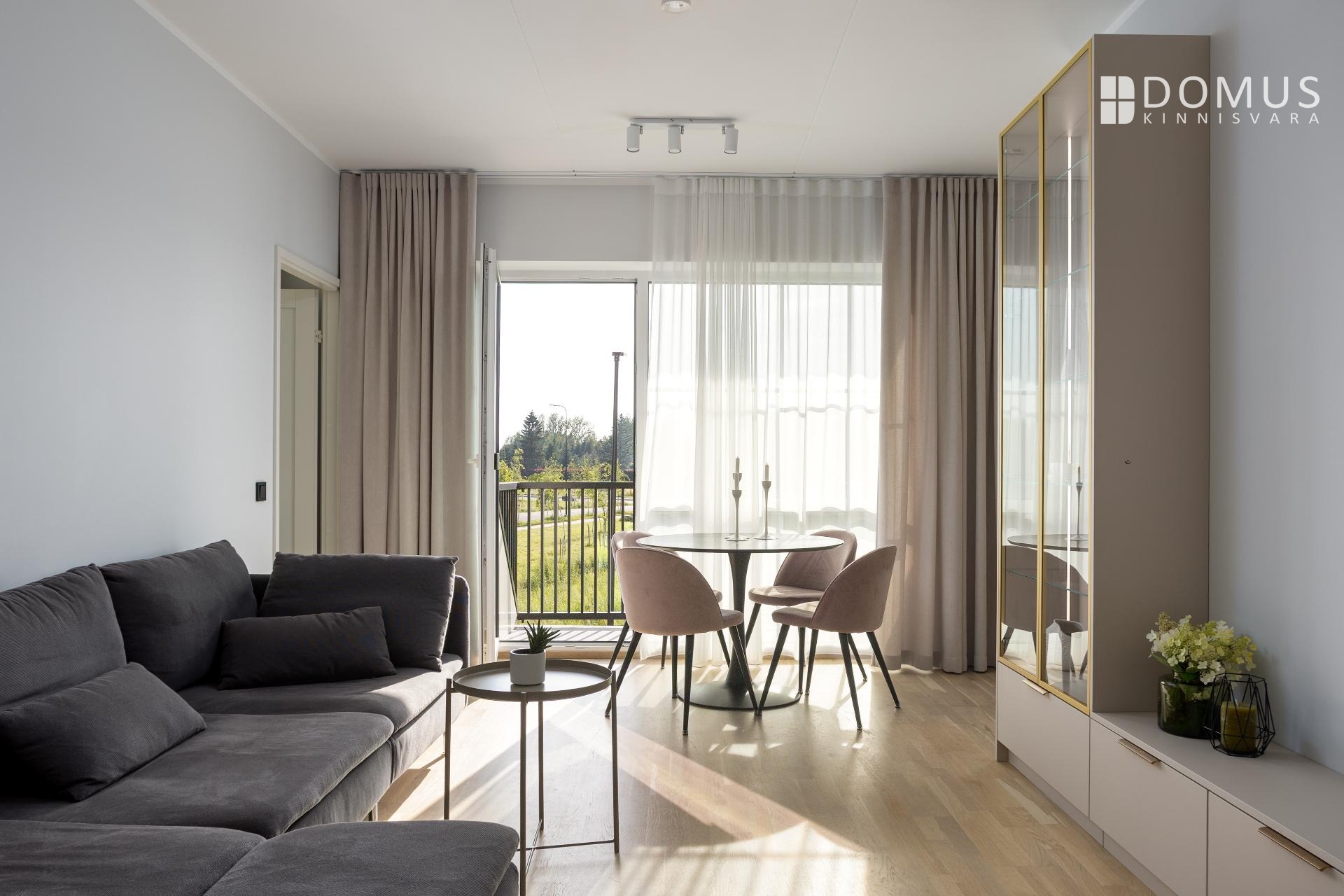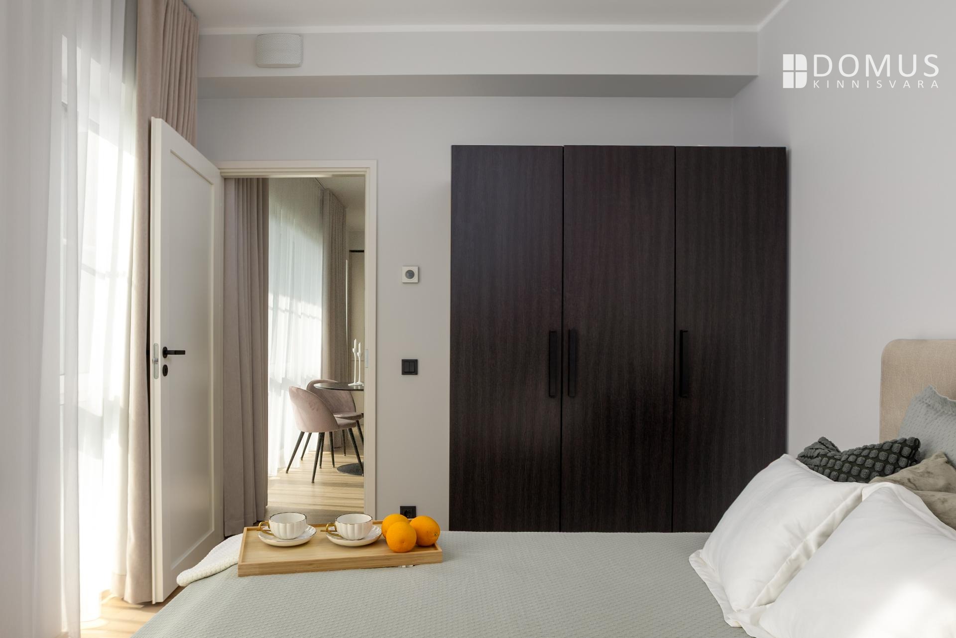 Kvaliteetne köök on sisustatud kõige vajalikuga, tasapind on kivist. Tehnika: nõudepesumasin, pürolüüsiga praeahi, induktsioonpliit, külmik, õhupuhasti.