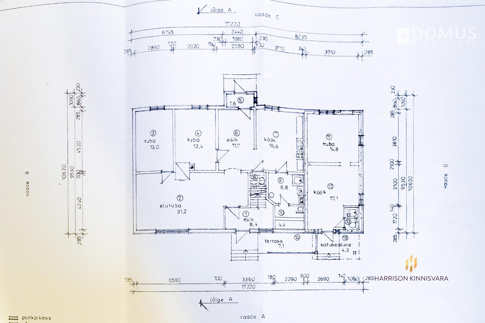 • 3 tuba, köök, tualett, duširuum, lisaks üks ca 32 m² suurune tuba.