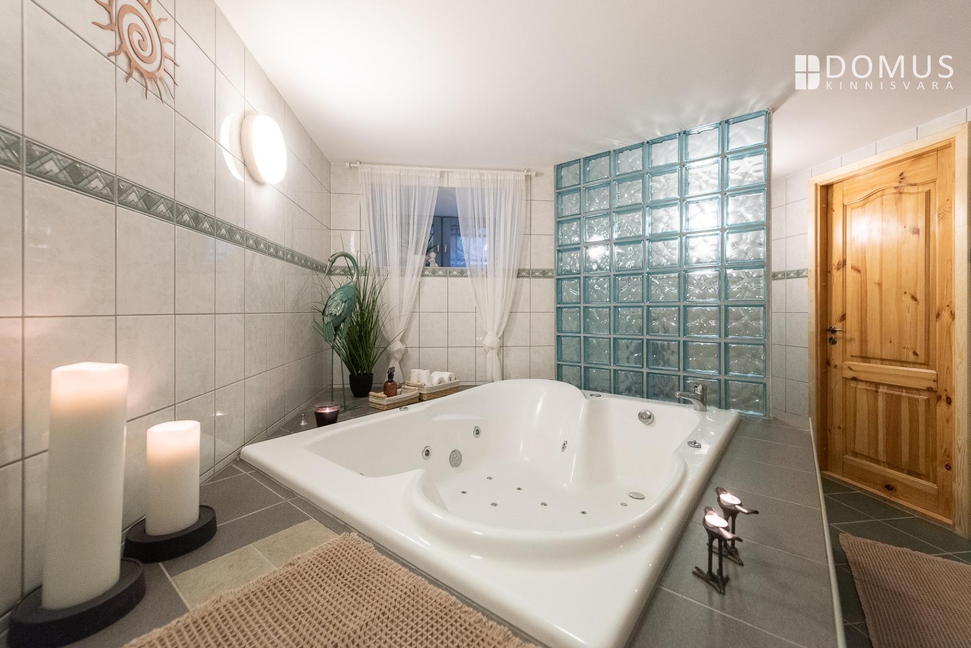Soklikorrus on tõeline varjupaik ja koduspa, kus saab täielikult lõõgastuda. Suur mullivann kahele, saun ja magamistuba loovad intiimse ning rahuliku atmosfääri. Lisaks eraldi wc ja panipaik, mis sobib ka varjendiks, tagavad mugavuse ja praktilisuse igaks olukorraks. Pesuköök koos pesumasina ja kuivatiga teeb igapäevaelu lihtsaks ja organiseerituks. Alumisel korrusel asuv teine kamin lisab hubasust ja luksuslikku tunnet igasse hetke.