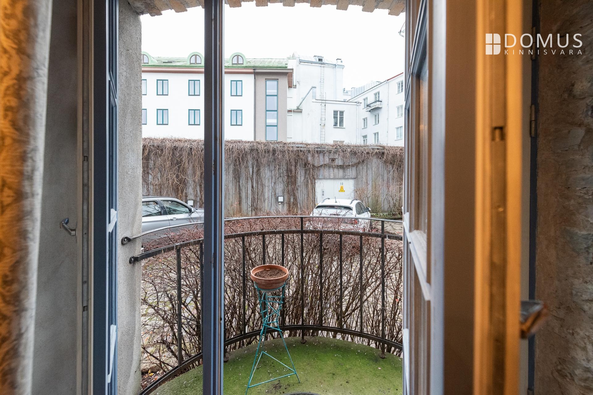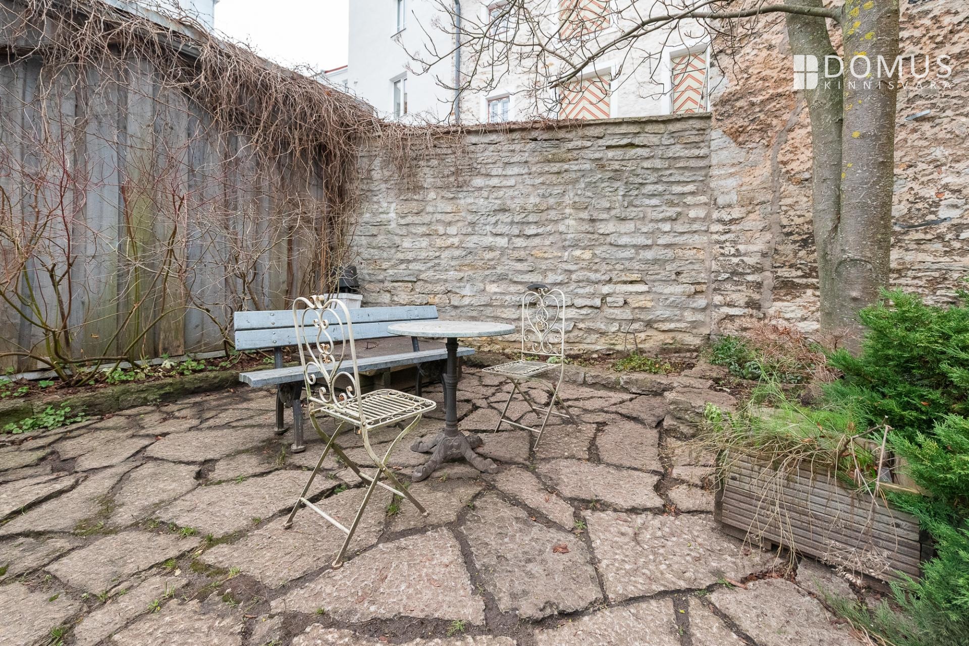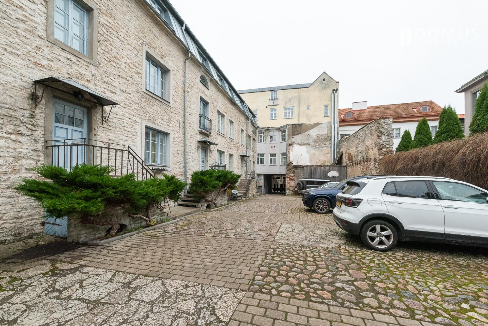 Korteriga kaasneb notariaalselt fikseeritud parkimiskoht lukustatud hoovis, kuhu pääseb mugavalt puldist avatava värava kaudu. Hoov on kaunilt haljastatud, pakub rahu ja privaatsust ning on korduvalt pärjatud vanalinna kauneima aia tiitliga.