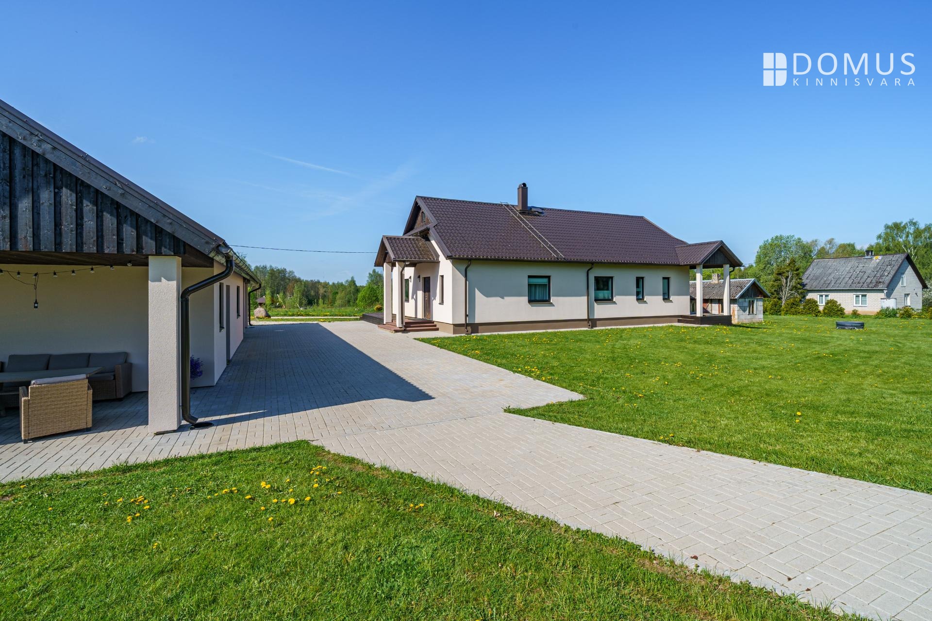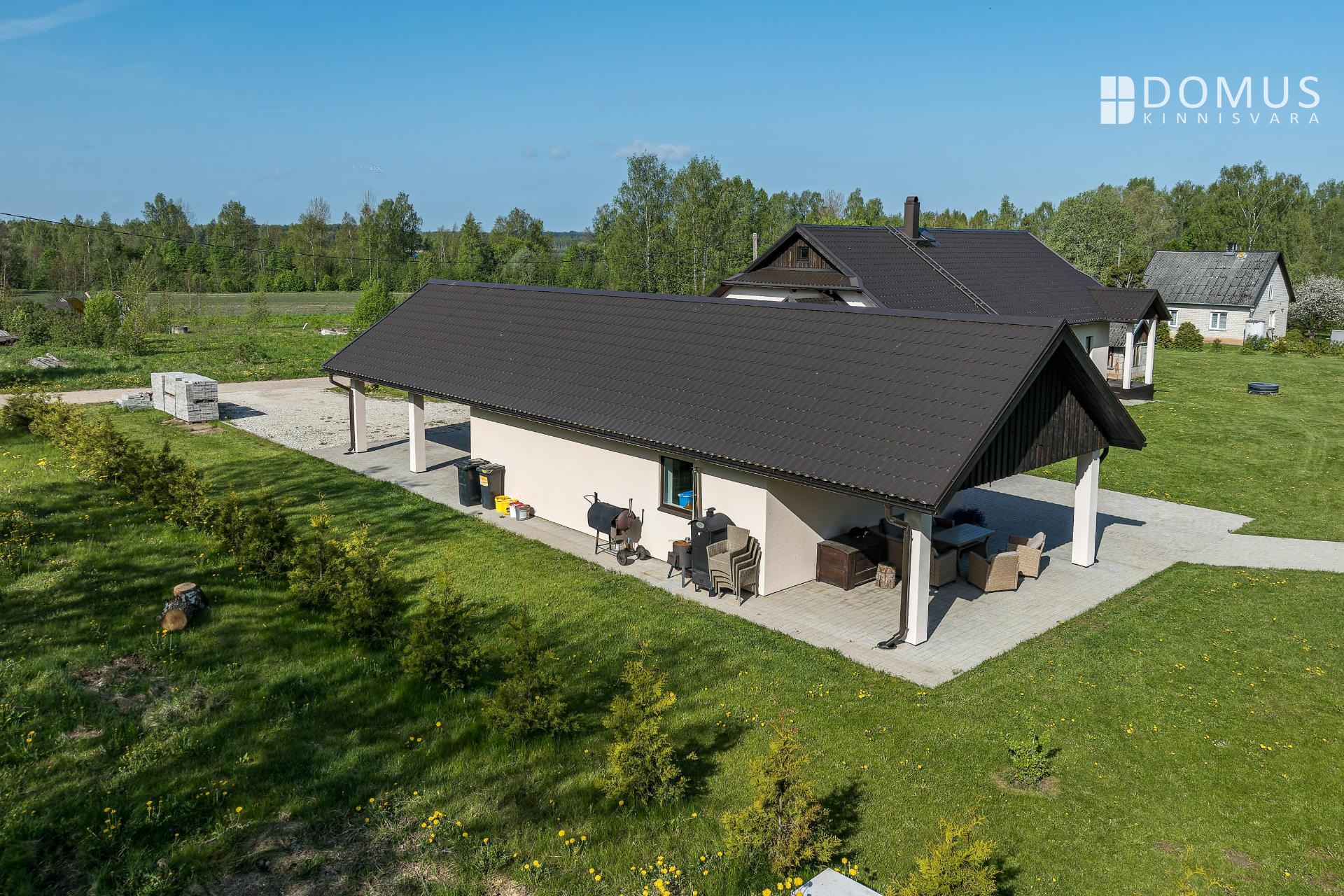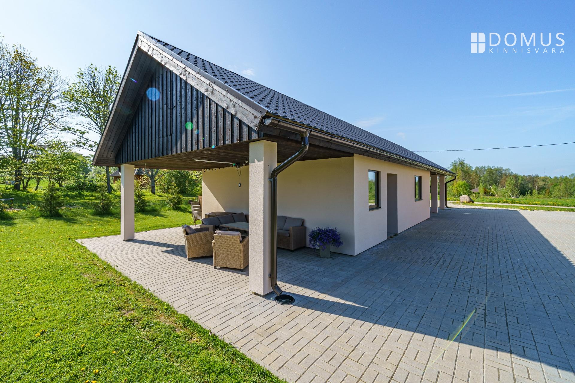 Kinnistul on nii päikseline terrass peamaja elutoast kui ka katusealune terrass kuuma päikese eest peitu pugemiseks ja koht grillimiseks. Autode jaoks varjualune, hooldatud muru. Ligipääs avalikult teelt.