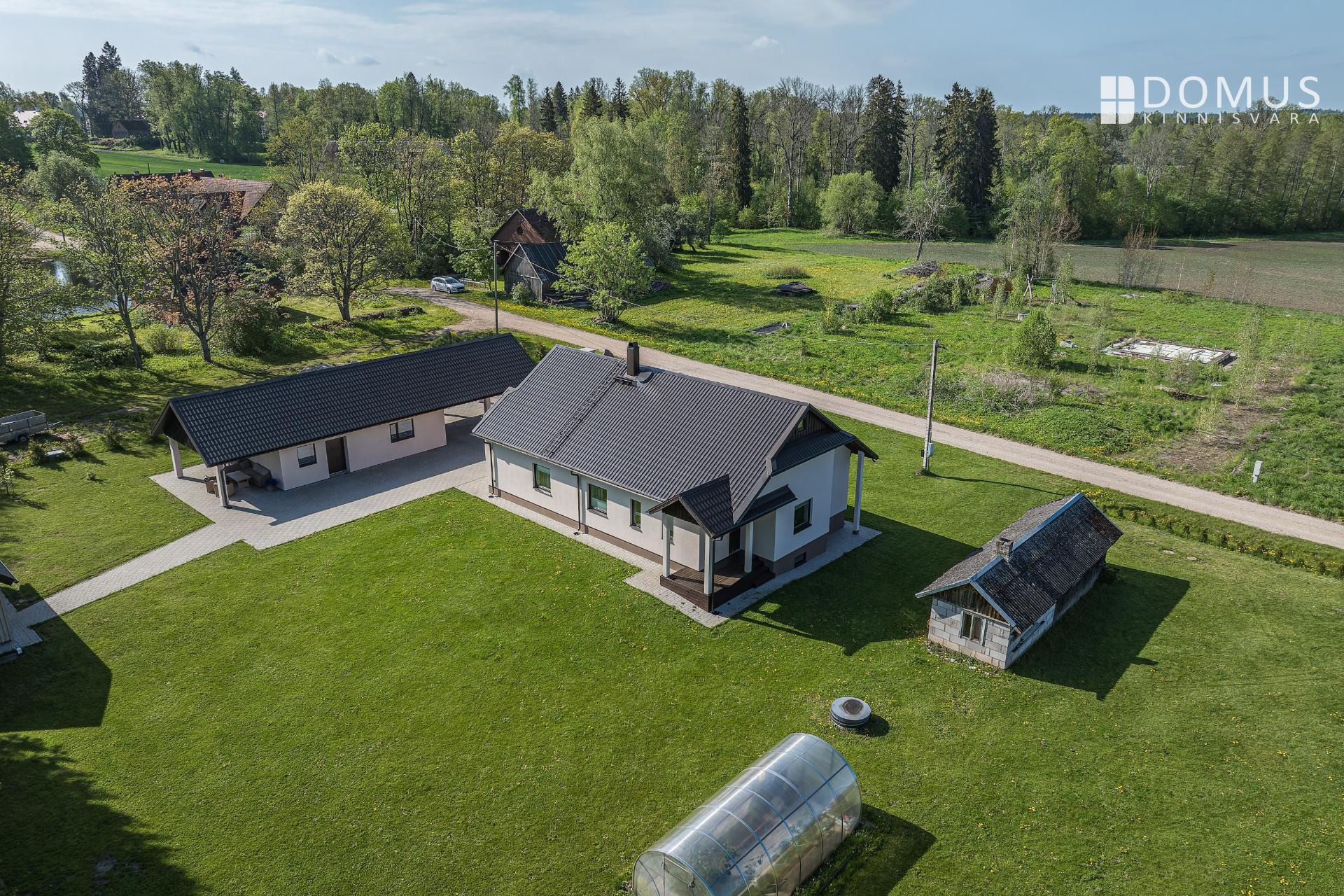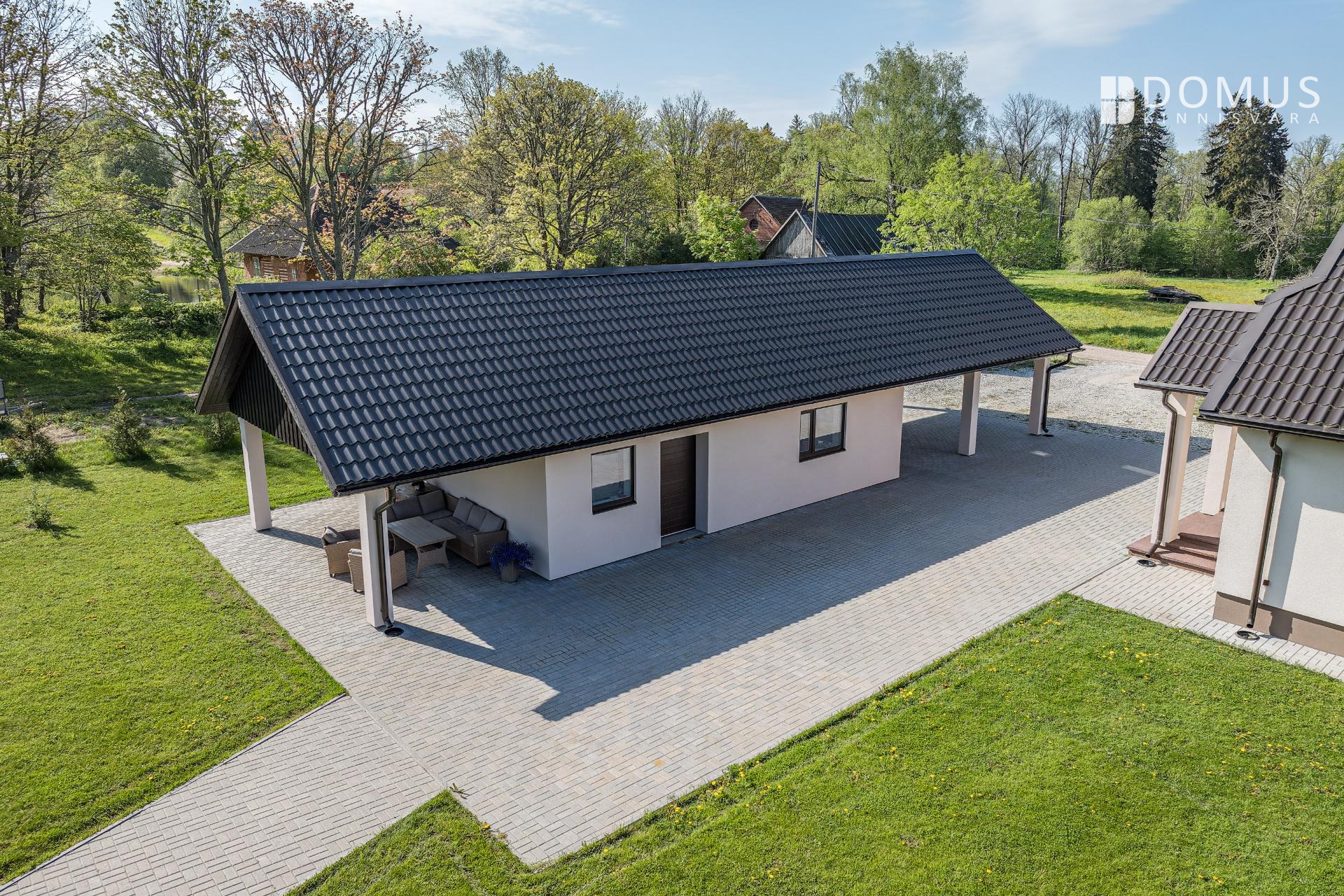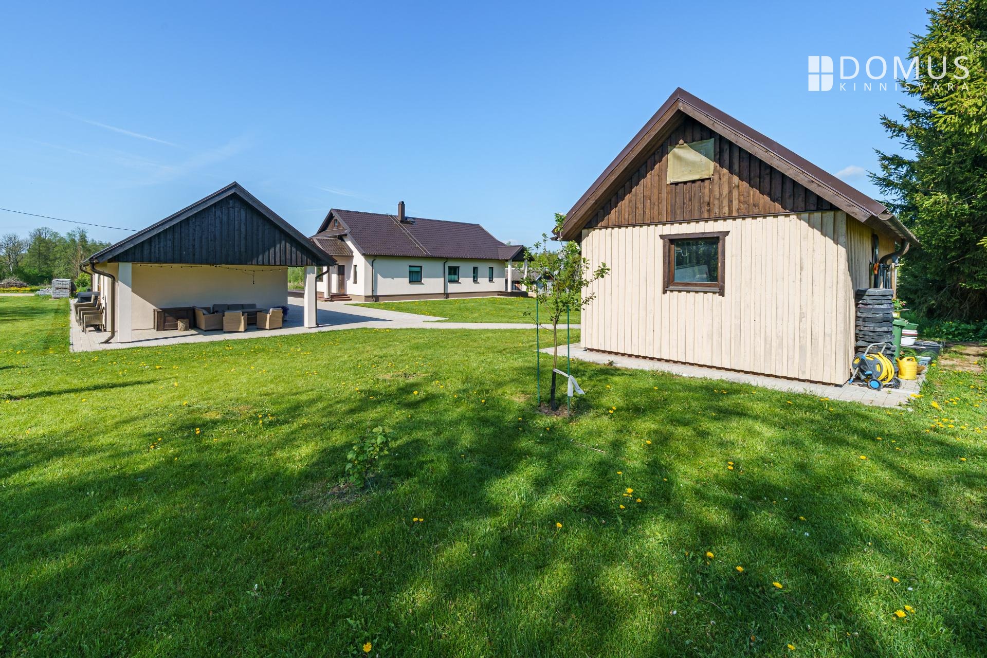 Kinnistul on nii päikseline terrass peamaja elutoast kui ka katusealune terrass kuuma päikese eest peitu pugemiseks ja koht grillimiseks. Autode jaoks varjualune, hooldatud muru. Ligipääs avalikult teelt.