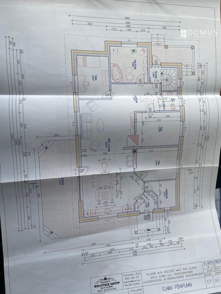 Maja köetav pind on 114,9 m², lisaks terrass 22 m².