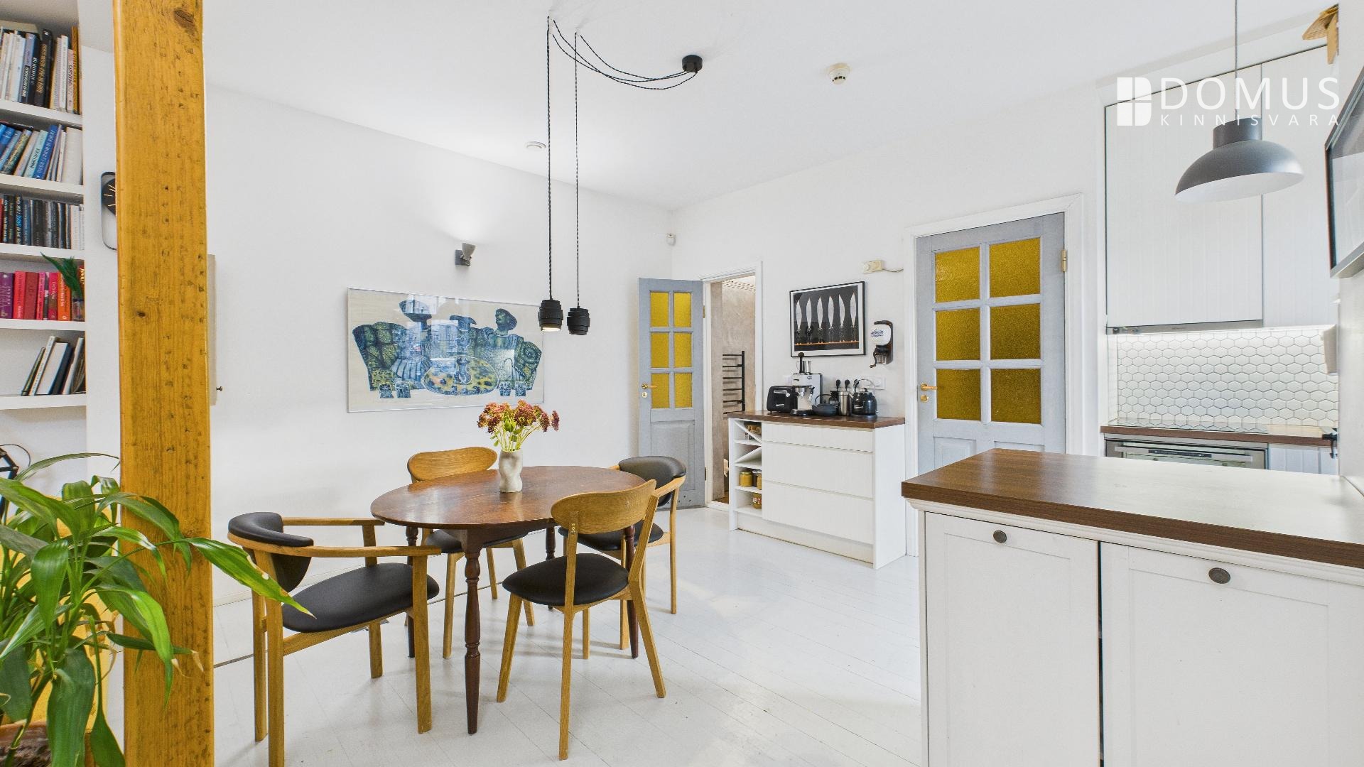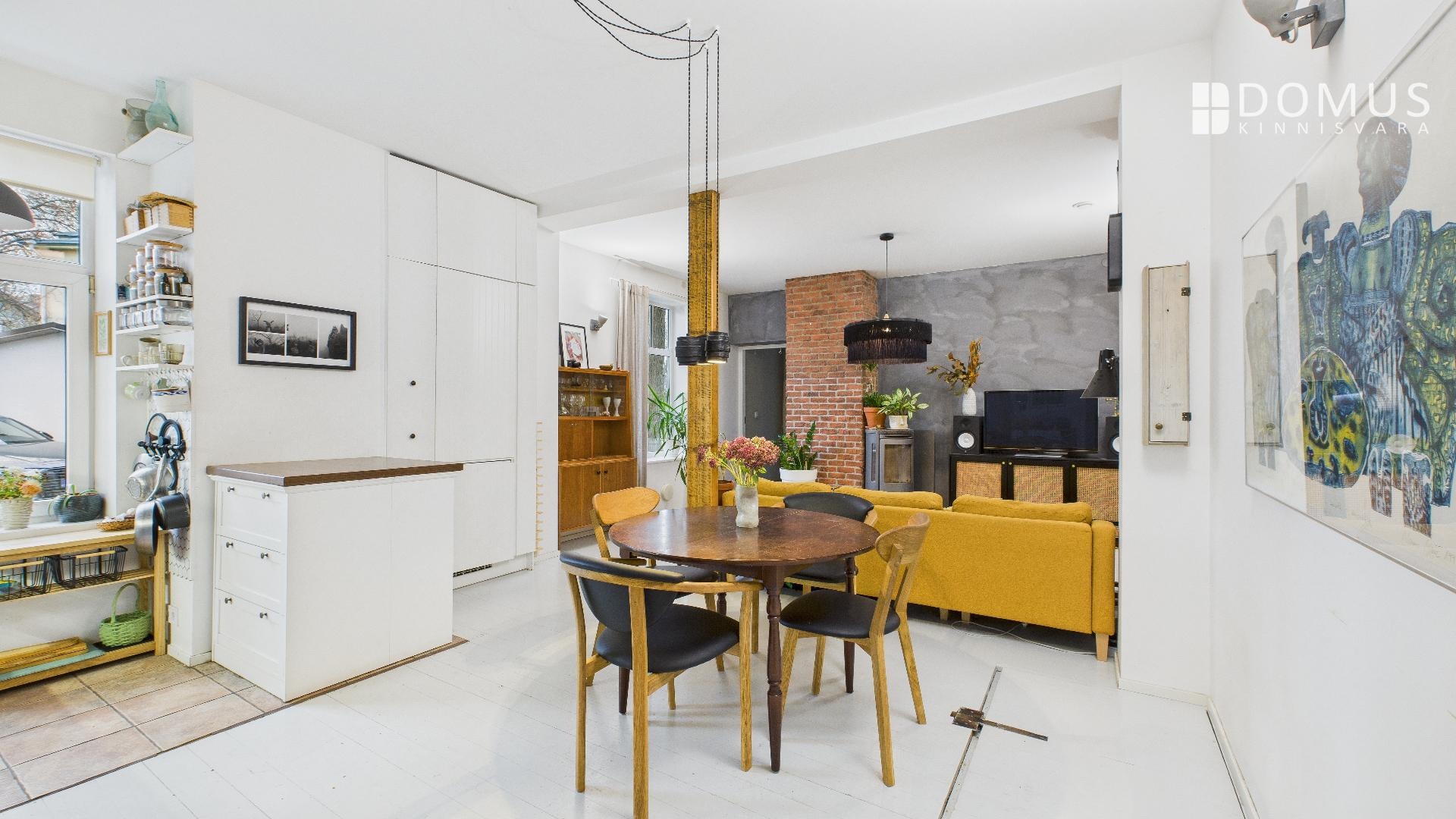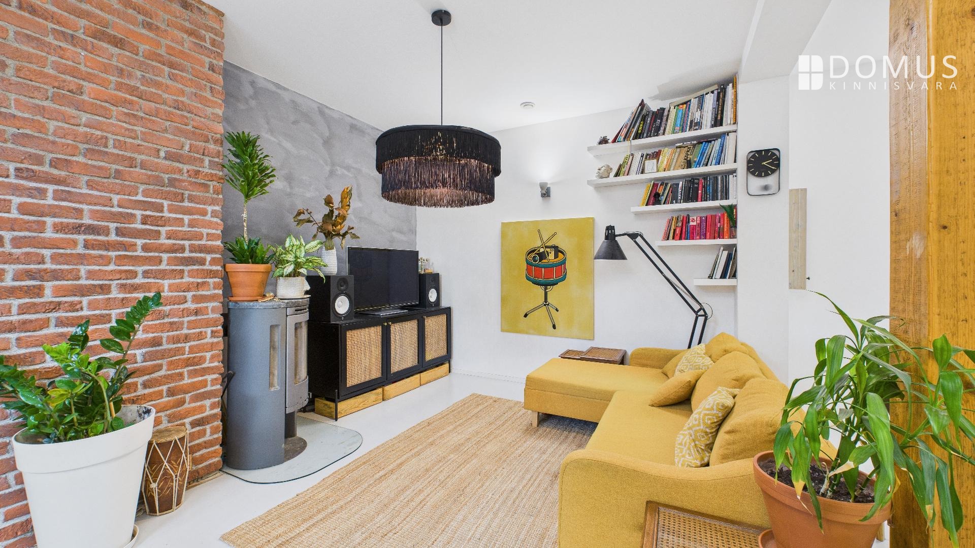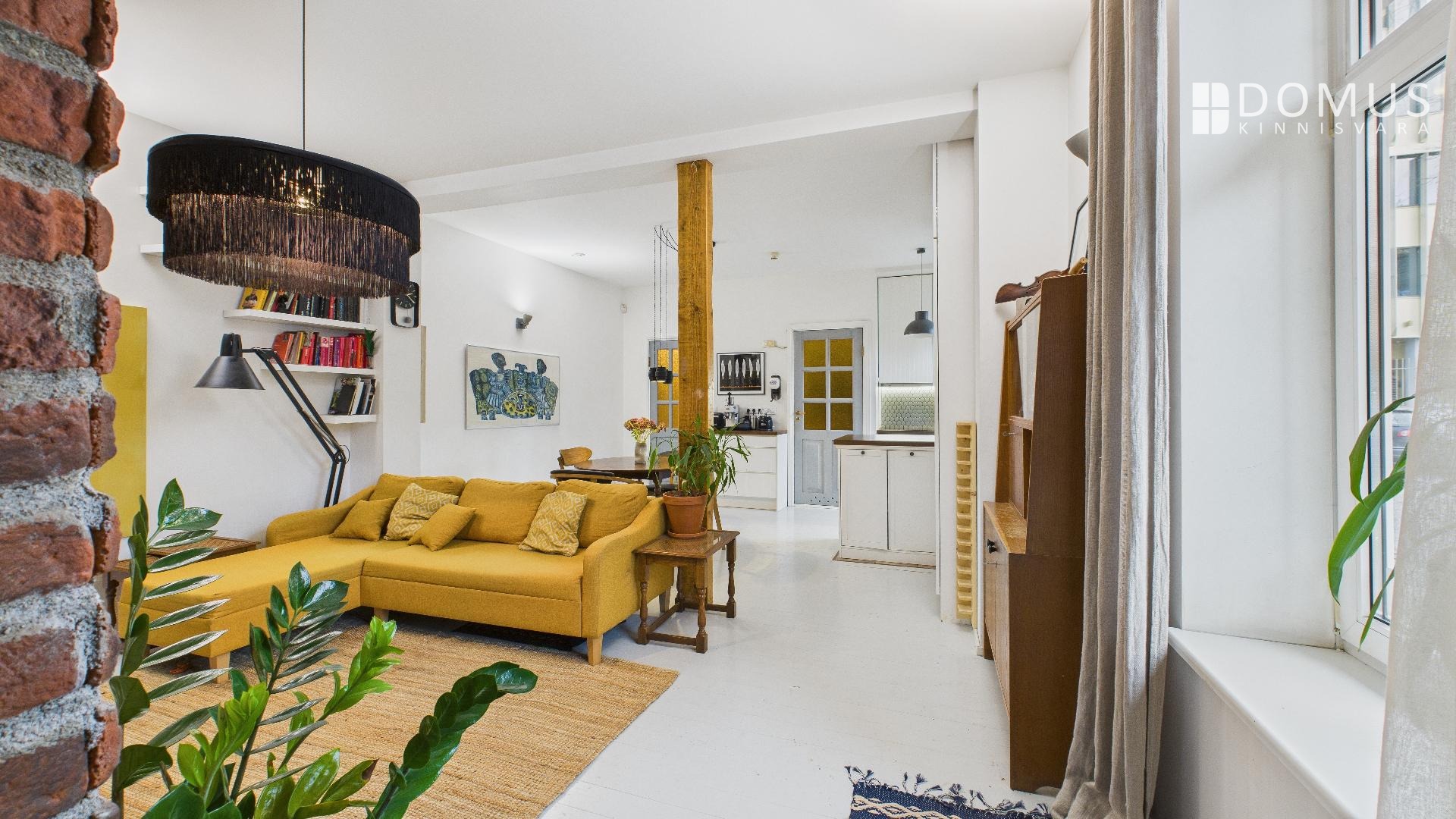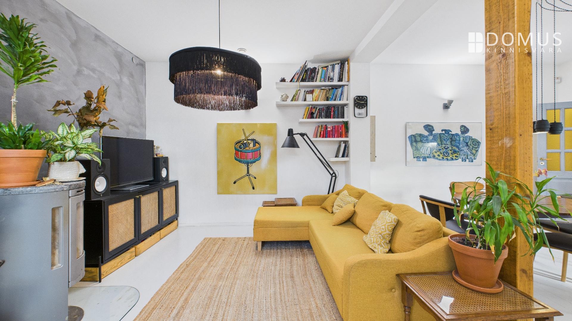 Kõrged laed ja kamin lisavad ruumile avarust ja hubasust.