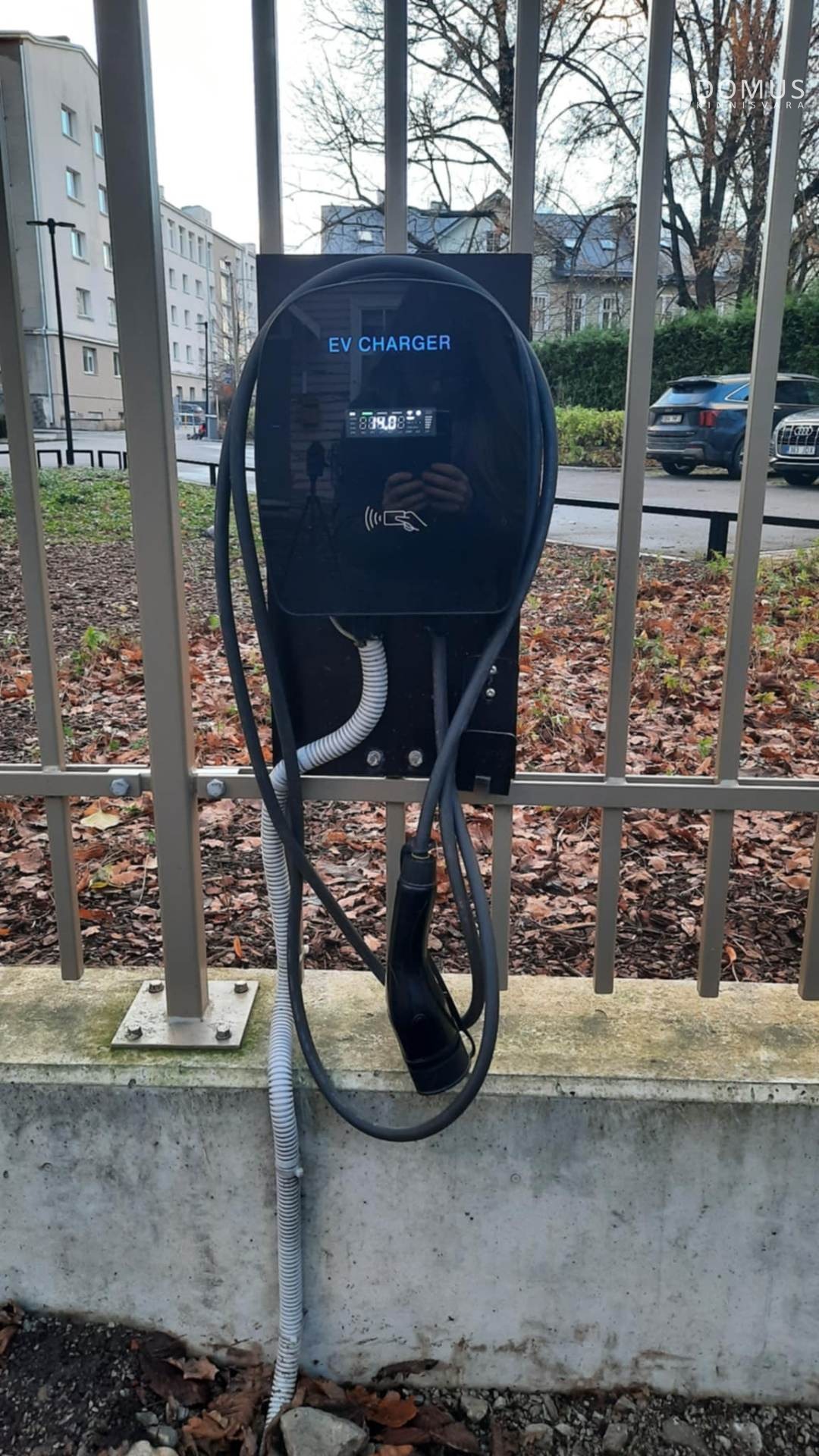 Hoov on kinnine ja ühiskasutusel maja elanikega. Parkimine on tasuta ning hoovis välja kujunenud süsteem toimib hästi. Korteri juurde kuulub kokkuleppeliselt üks parkimiskoht. Boonusena on elektriauto laadimispunkt, mis on ühendatud otse korteri elektrikilbiga. Akna all õitsevad kevadel nartsissid ja tulbid ning suvel pakub silmailu hostapeenar.