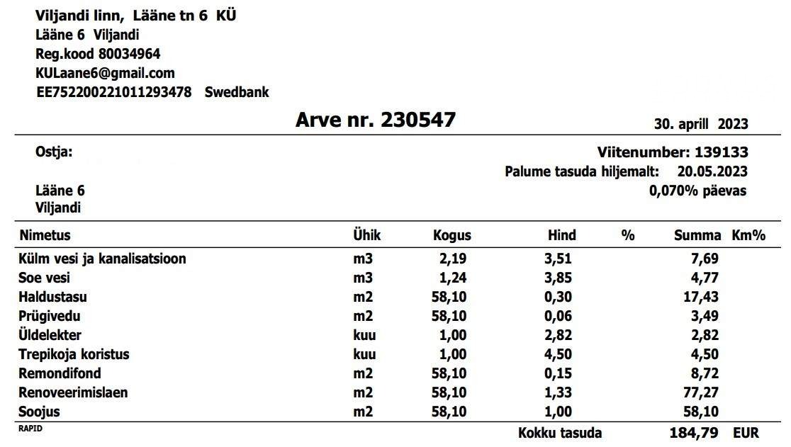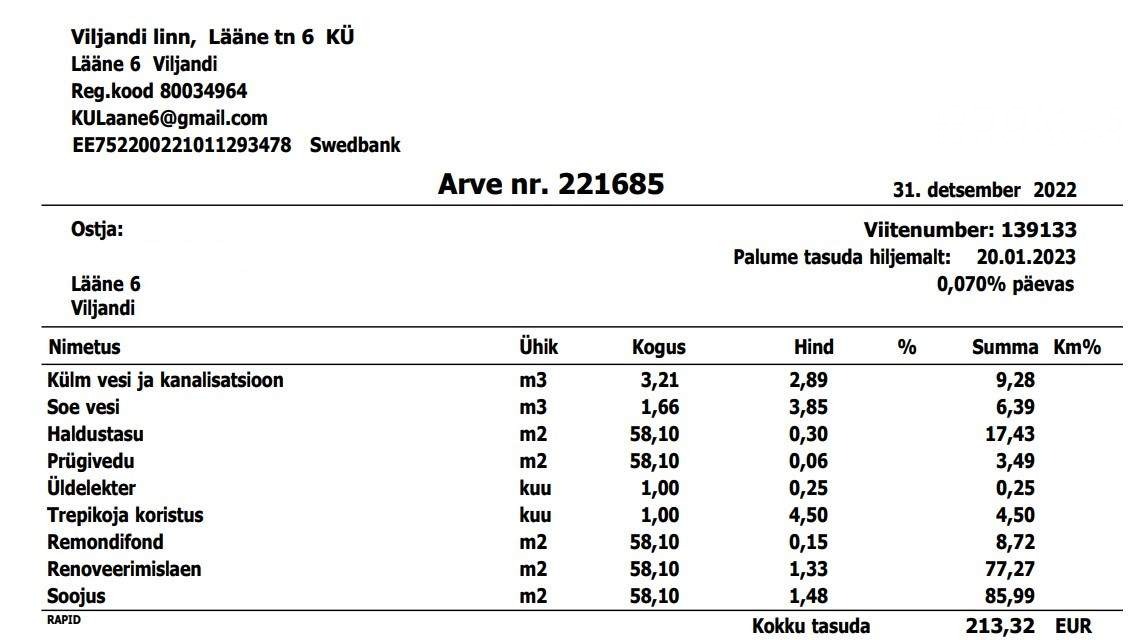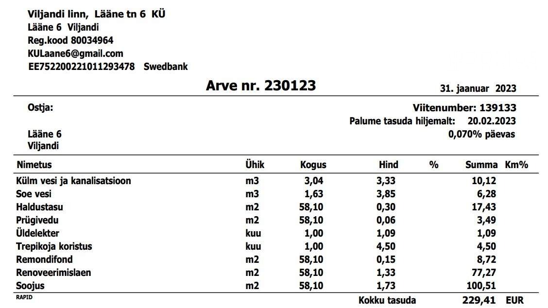 Üürilevõtja tasub igakuised kommunaalarved.