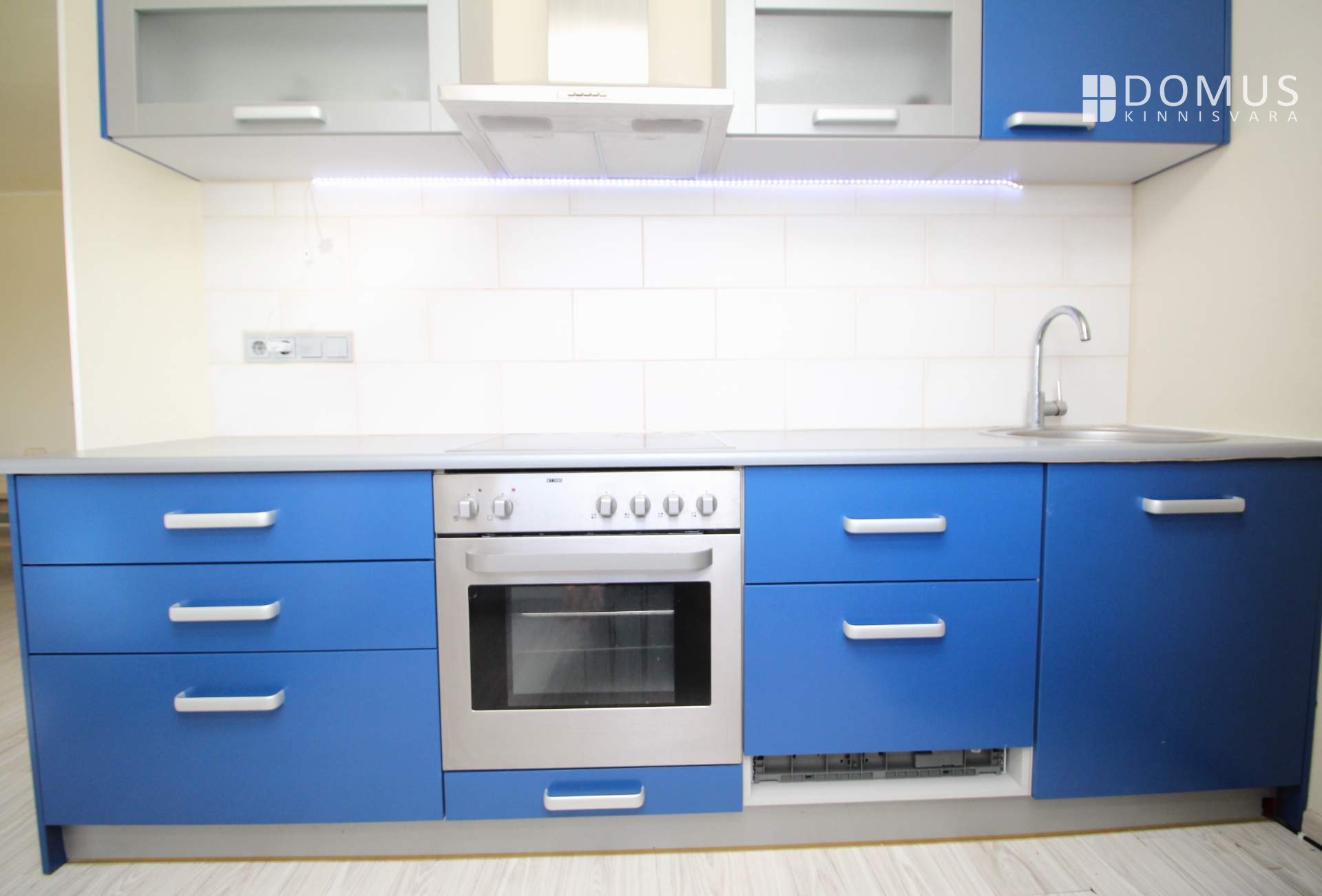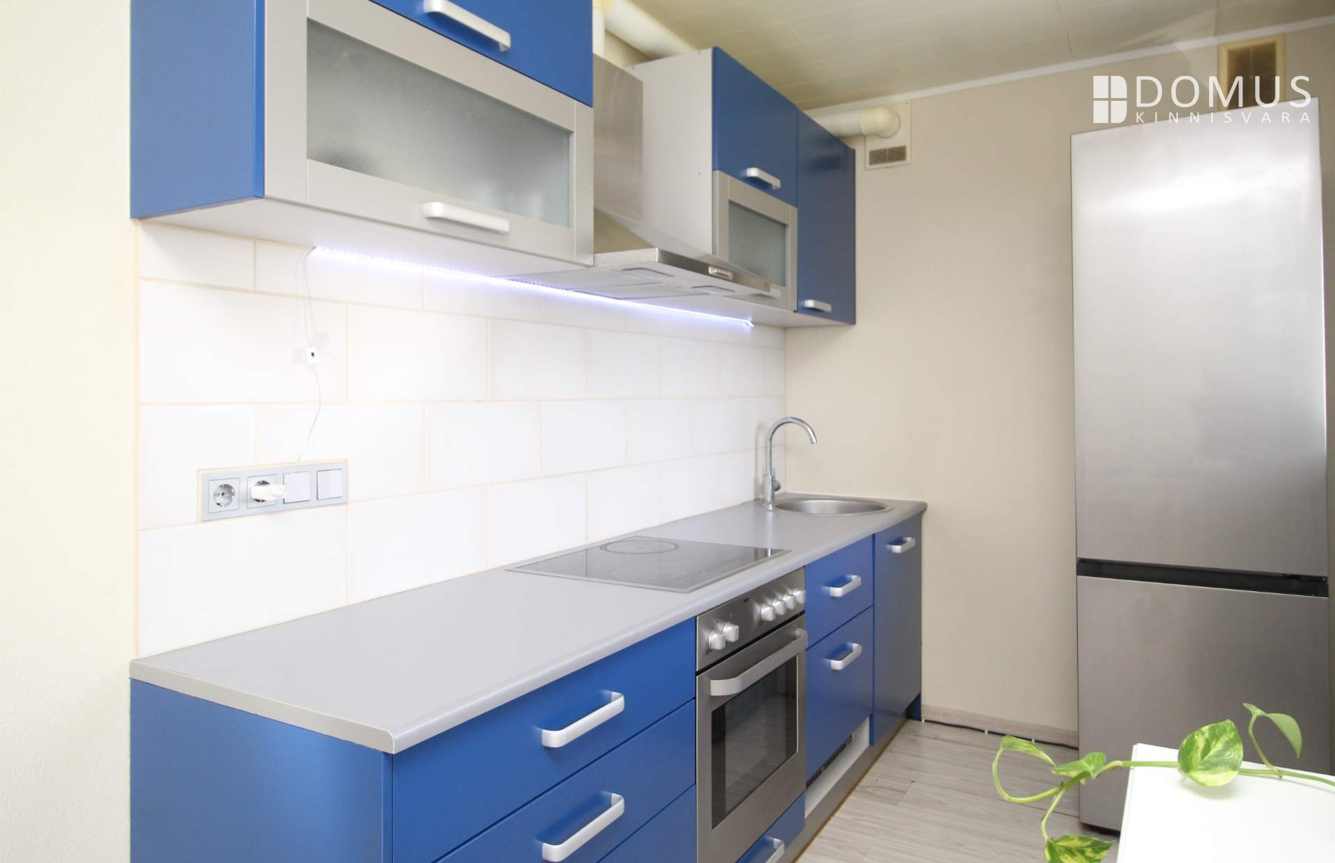 Tehnikast on korteris olemas: integreeritud pliidiplaat ja integreeritud ahi, kubu, integreeritud väike nõudepesumasin, külmik ja pesumasin.