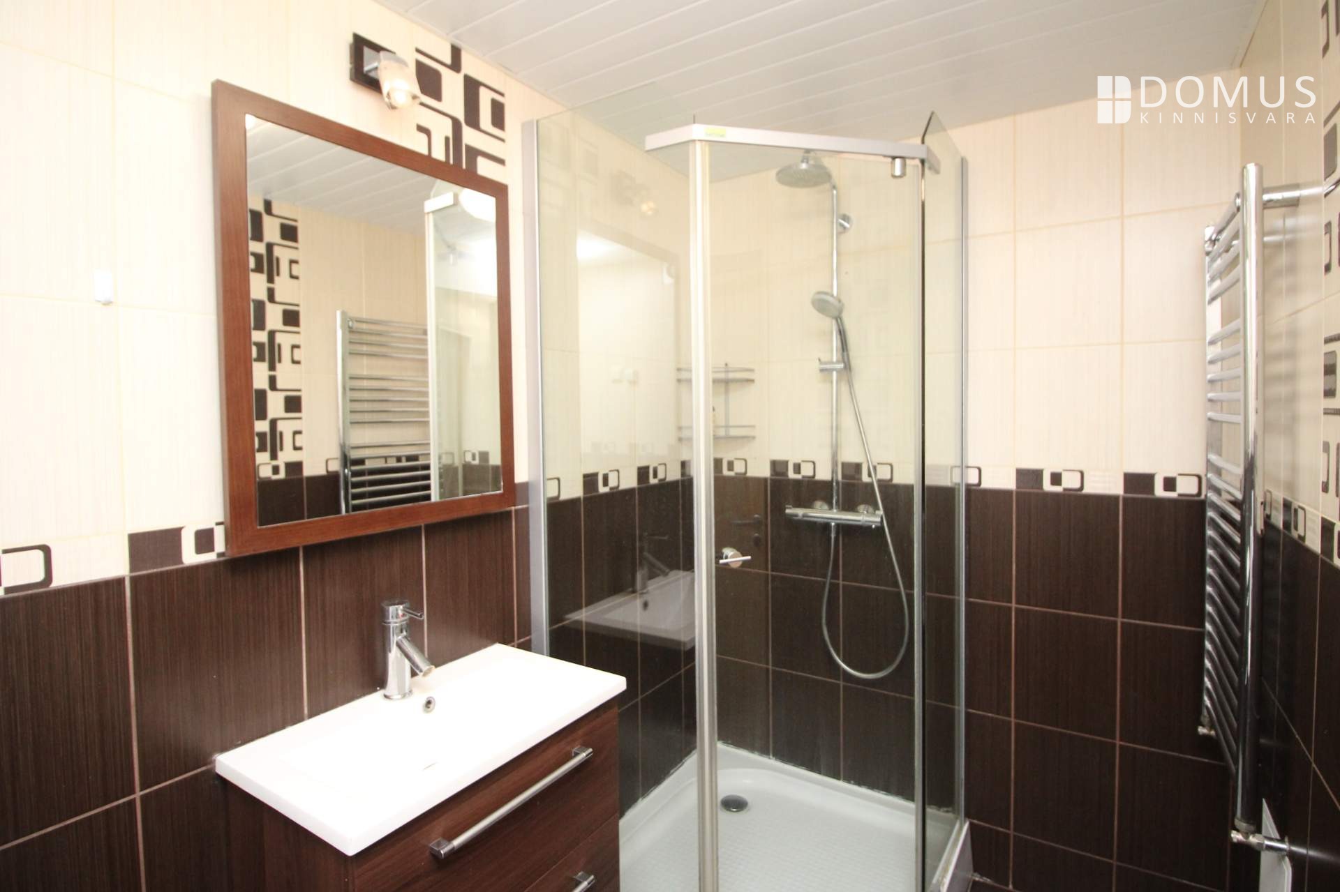 Vannituba on plaaditud ja paigaldatud on dushikabiin.