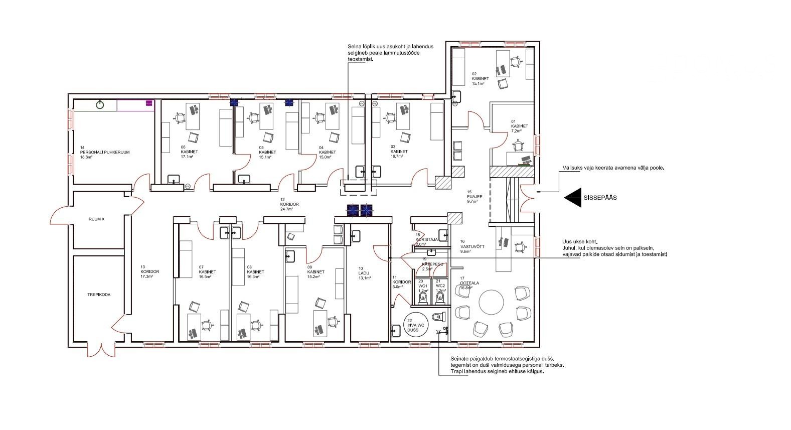 - Kabinetid on osaliselt möbleeritud