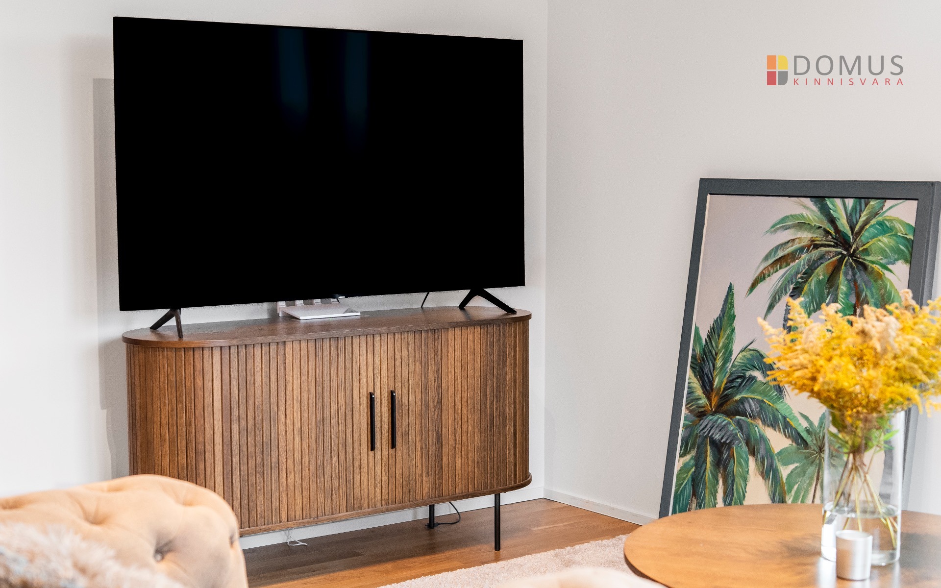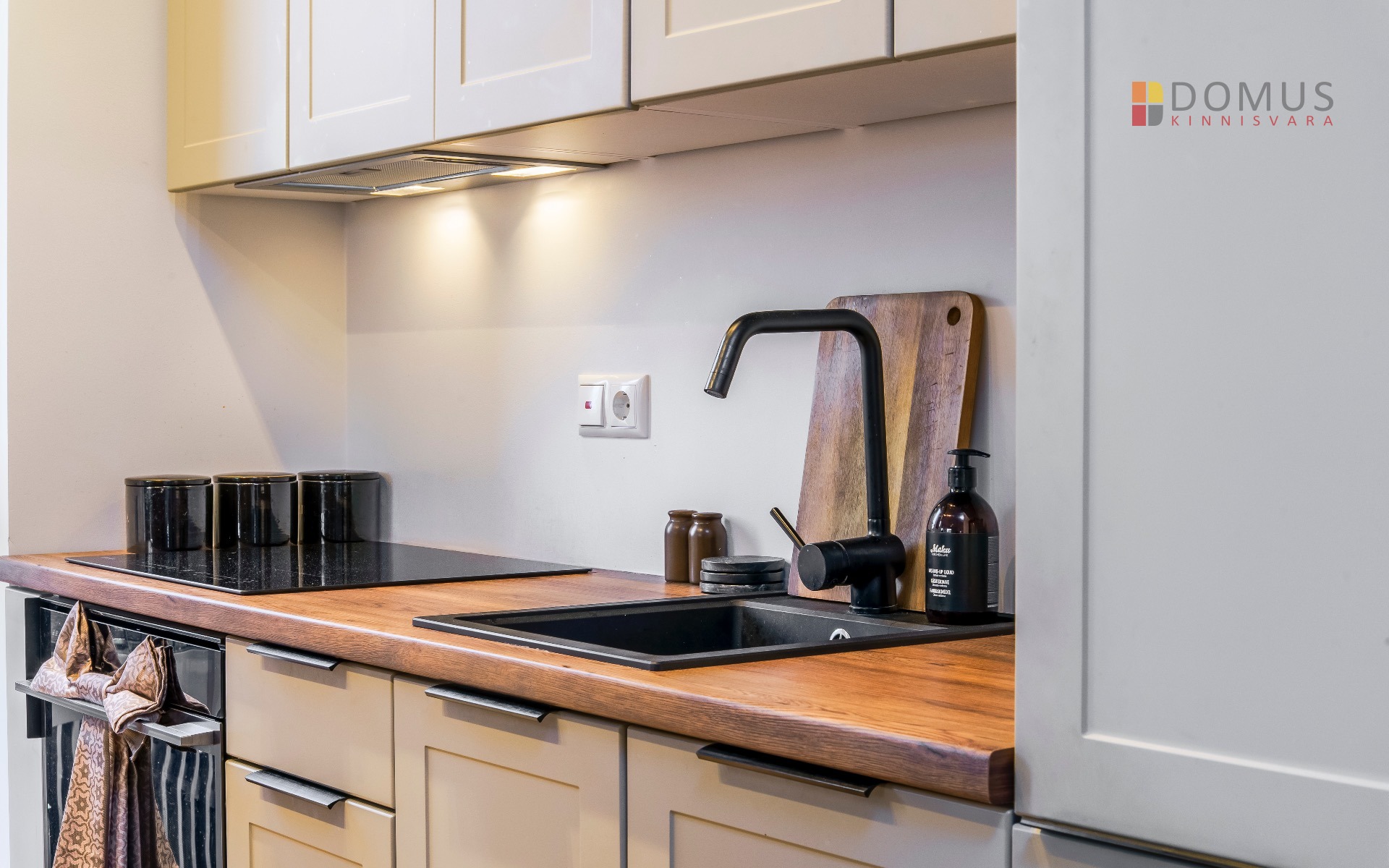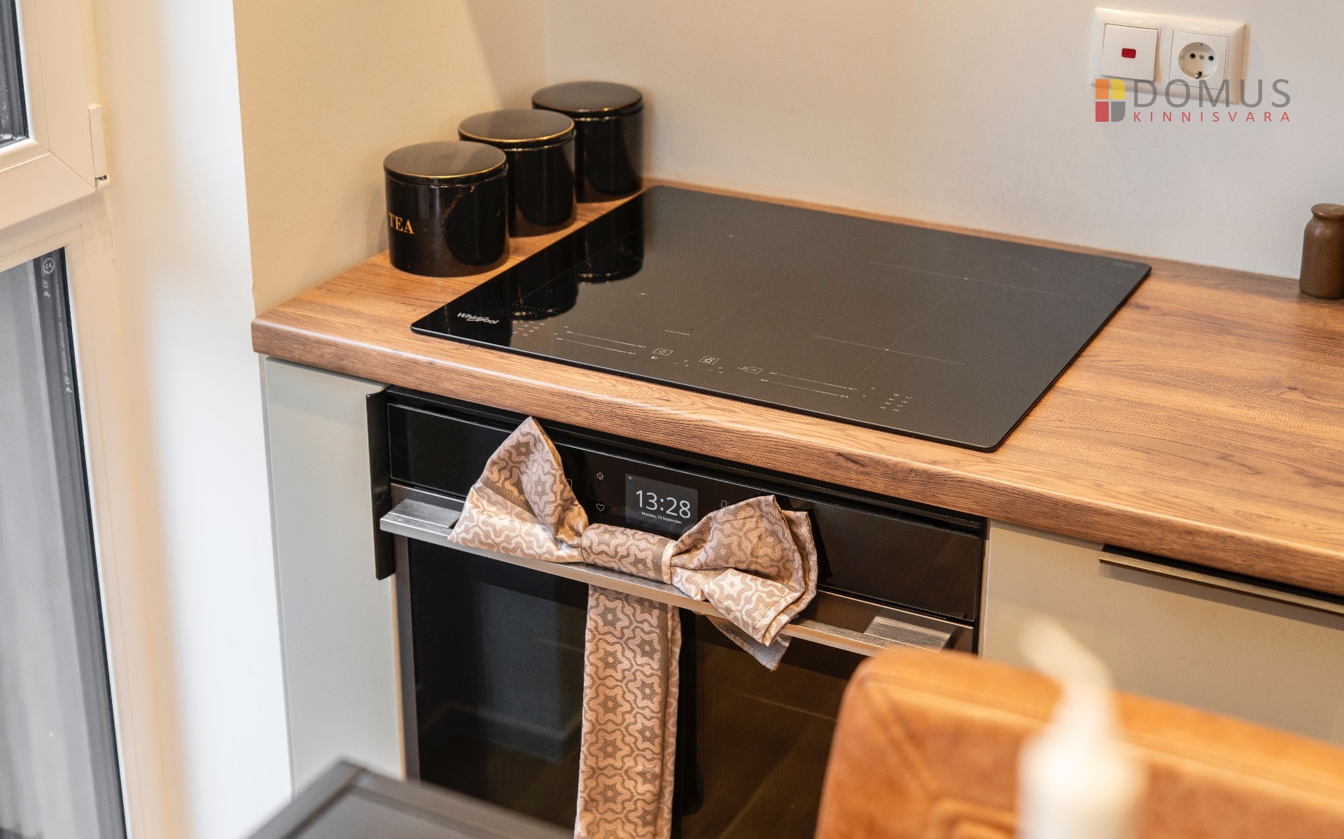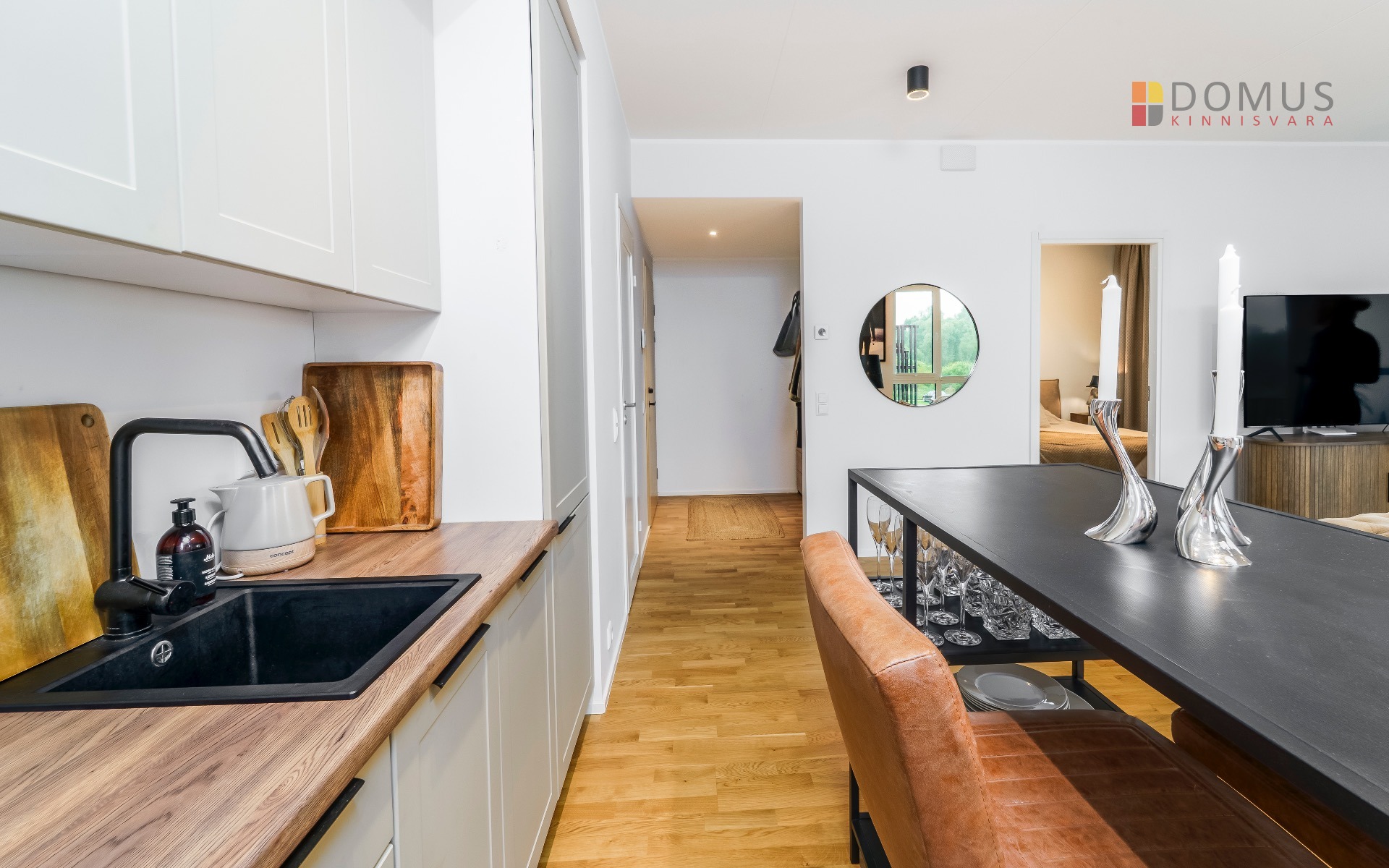 Elutuba-köök 26,8 m² – valgusküllane ja nutikalt lahendatud tuba koos täisfunktsionaalse köögi ja integreeritud tehnikaga.