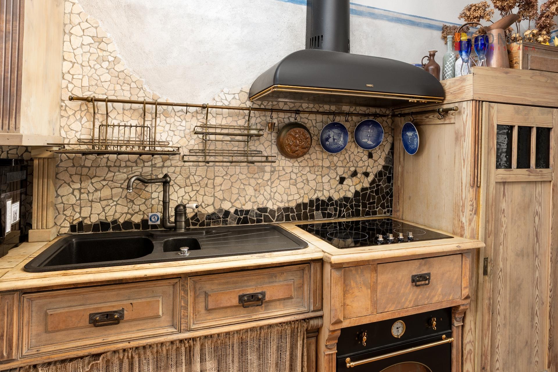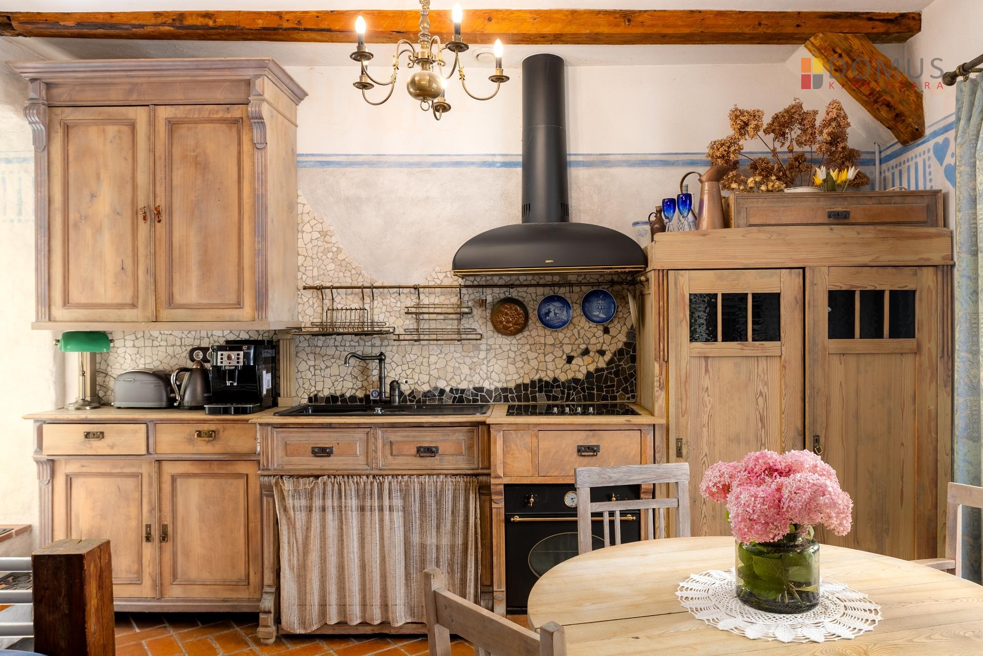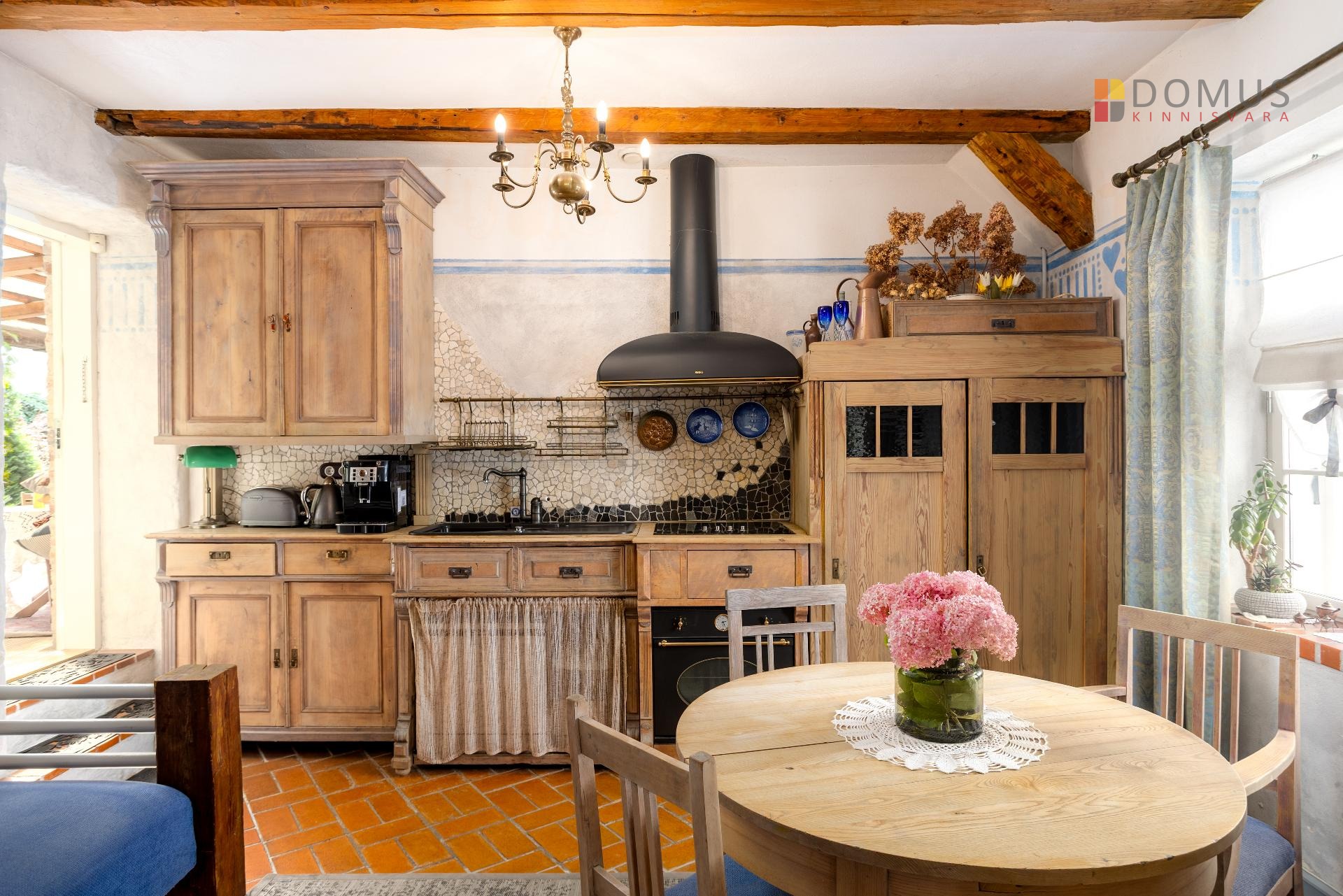 trafarettmaalingud. Köögimööbel on eritellimusel kokku kombineeritud vanadest kummutitest ja