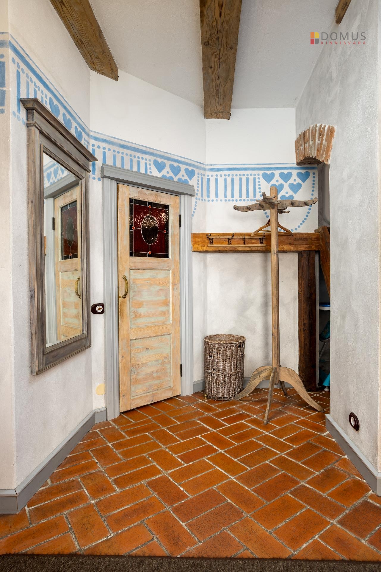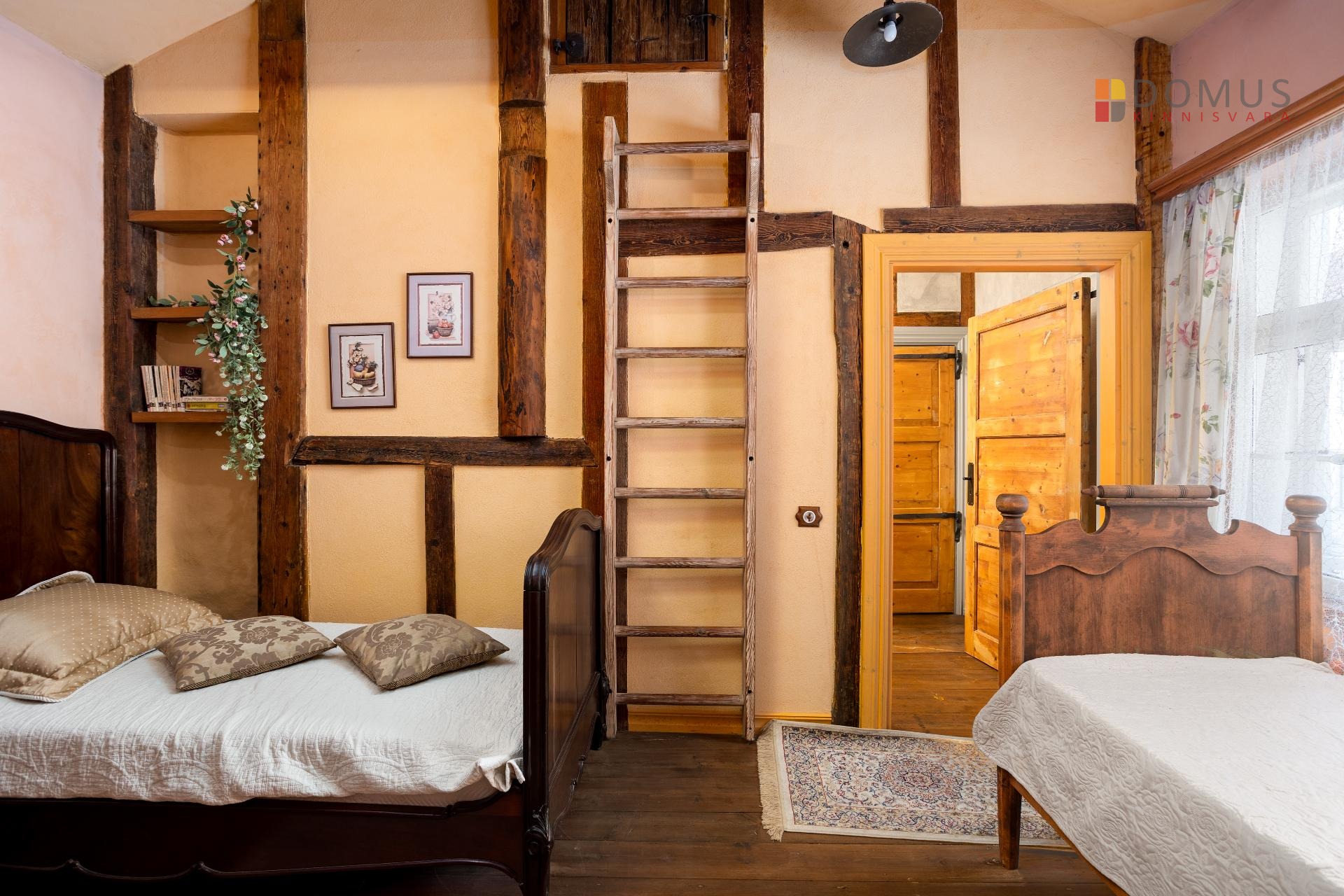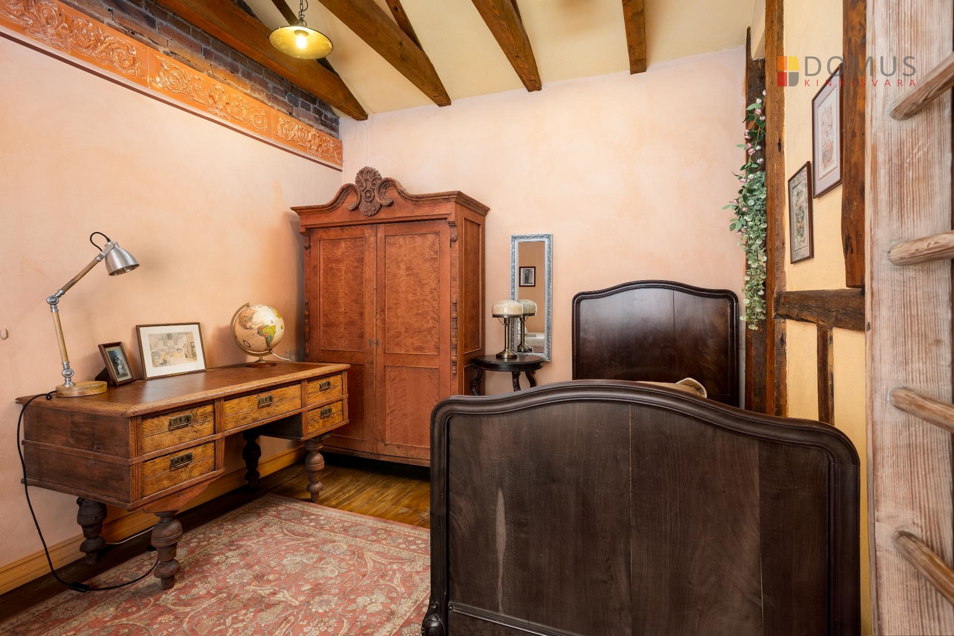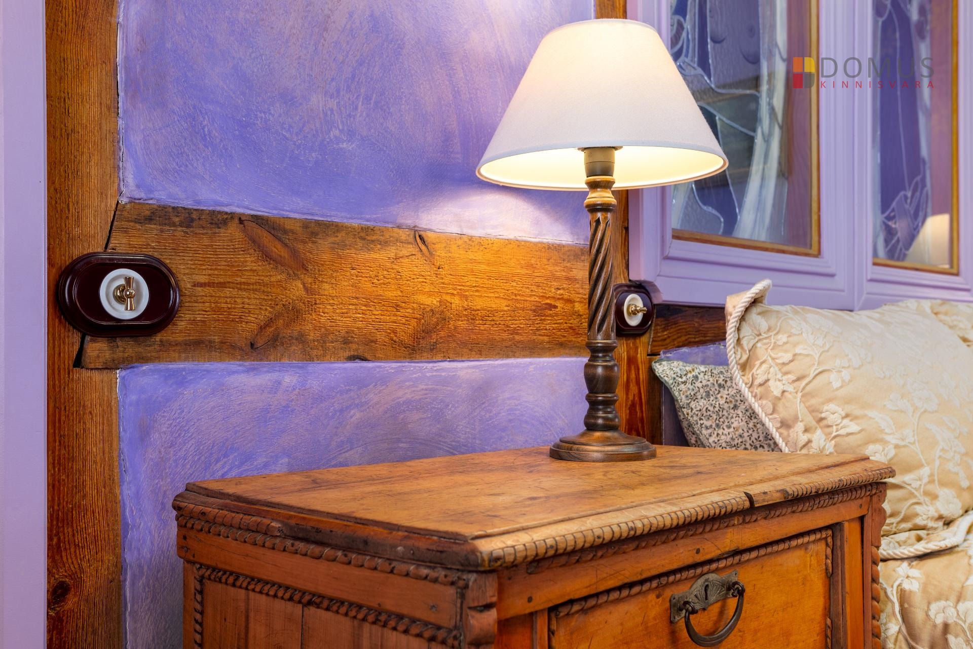 arhailised uksed, vahvärk-vaheseinad. Suuremas magamistoas on kaheinimesevoodi (160cm), mahukas