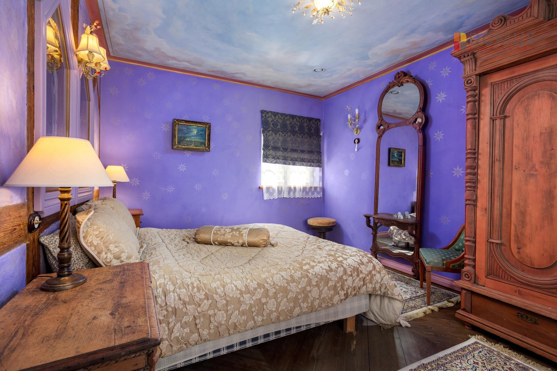 Teine korrus, kus asuvad kaks magamistuba, on kujundatud veelgi vanemas stiilis (baroki mõjutustel),