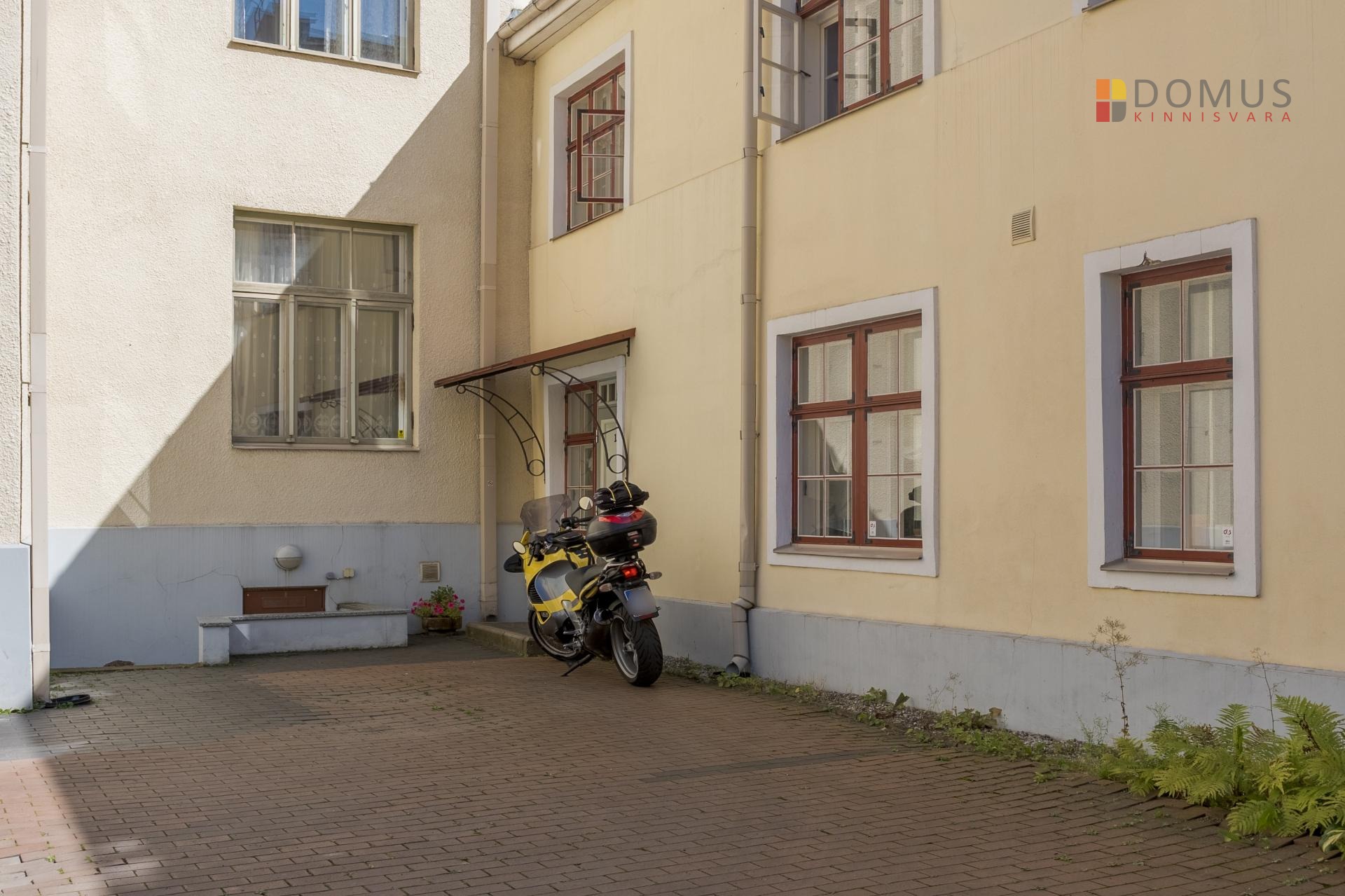 omaette sissepääsuga hoovist, otse isikliku parkimiskoha juurest.