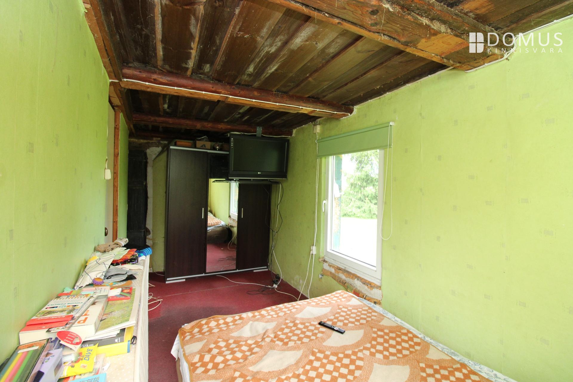 Väljast on maja säilitanud oma algse ilme – välisviimistlus ja eterniitkatus vajavad küll uue omaniku kätt ja renoveerimist, aga just see annab võimaluse kujundada oma unistuste kodu täpselt enda maitse järgi.
