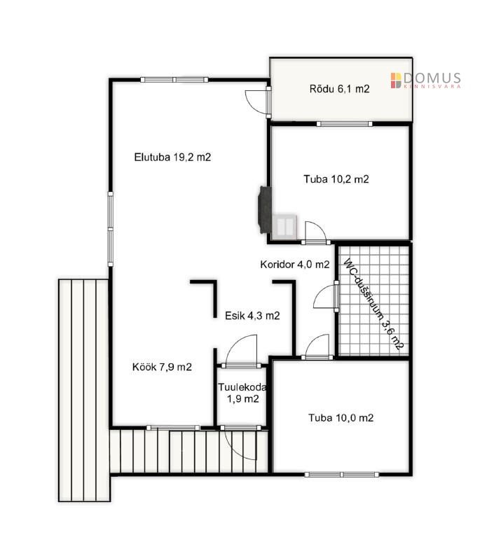 Korter asub teisel korrusel ja on eraldi sissepääsuga.