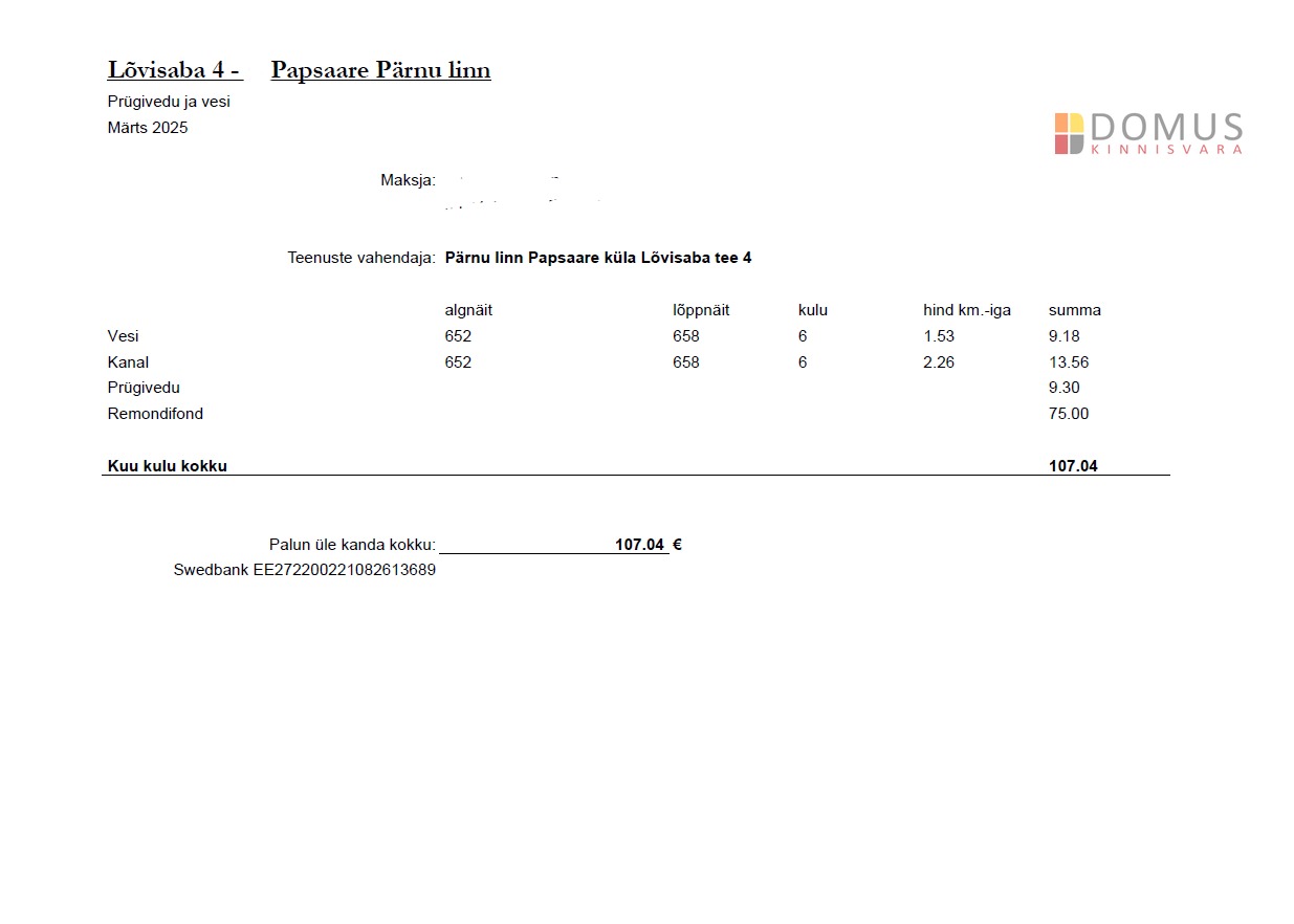 Sellele lisanduvad vesi, kanal., prügivedu ja elekter.