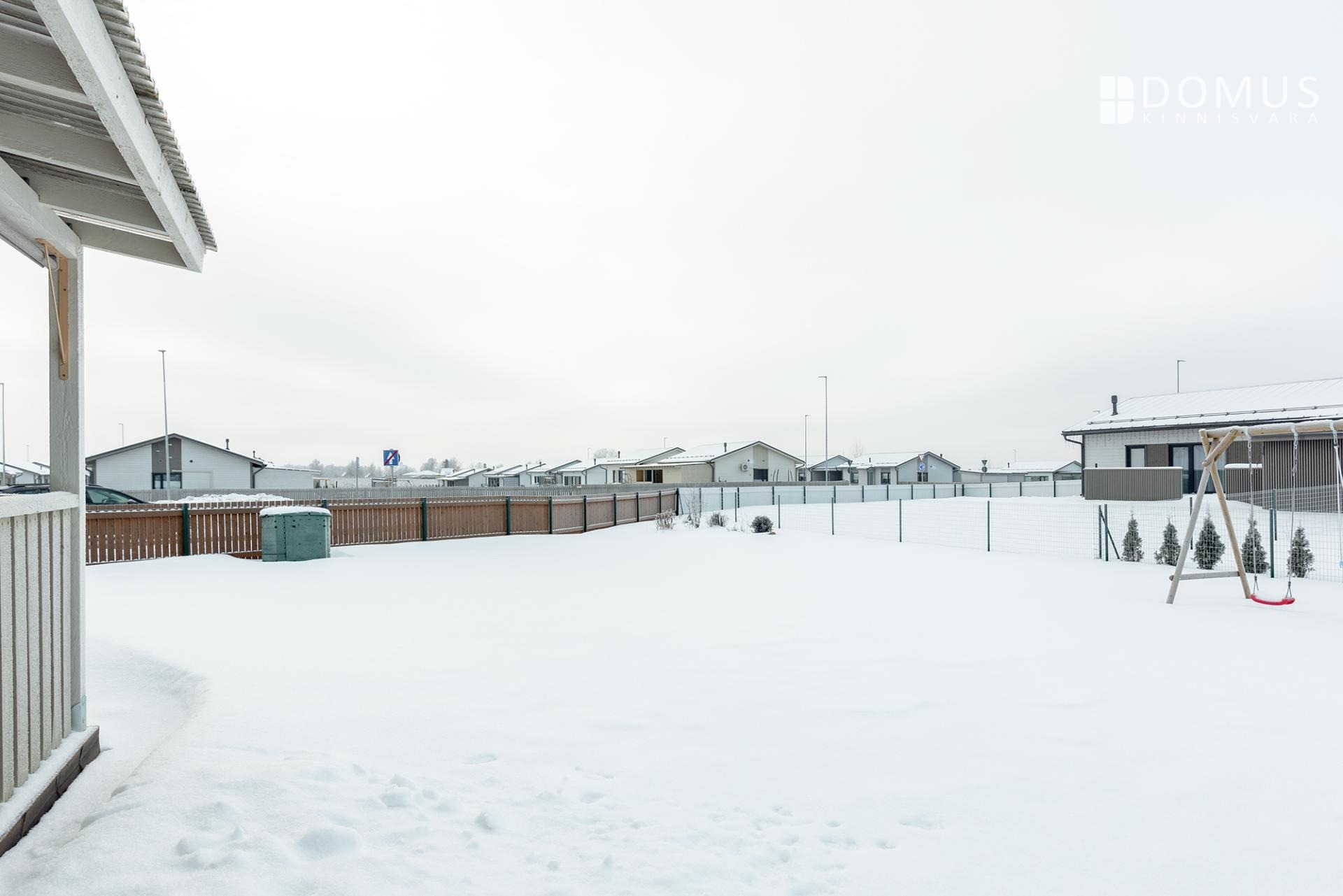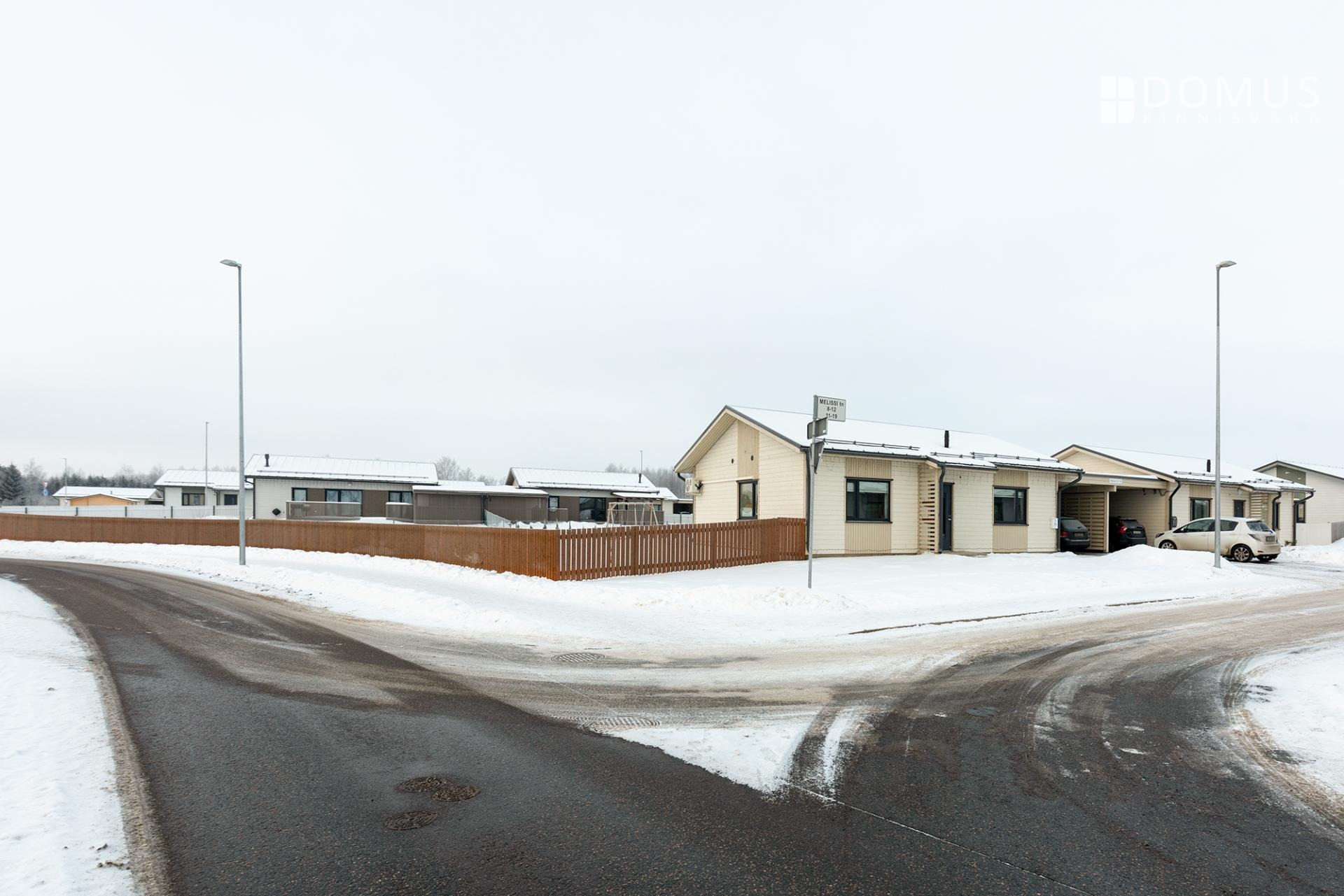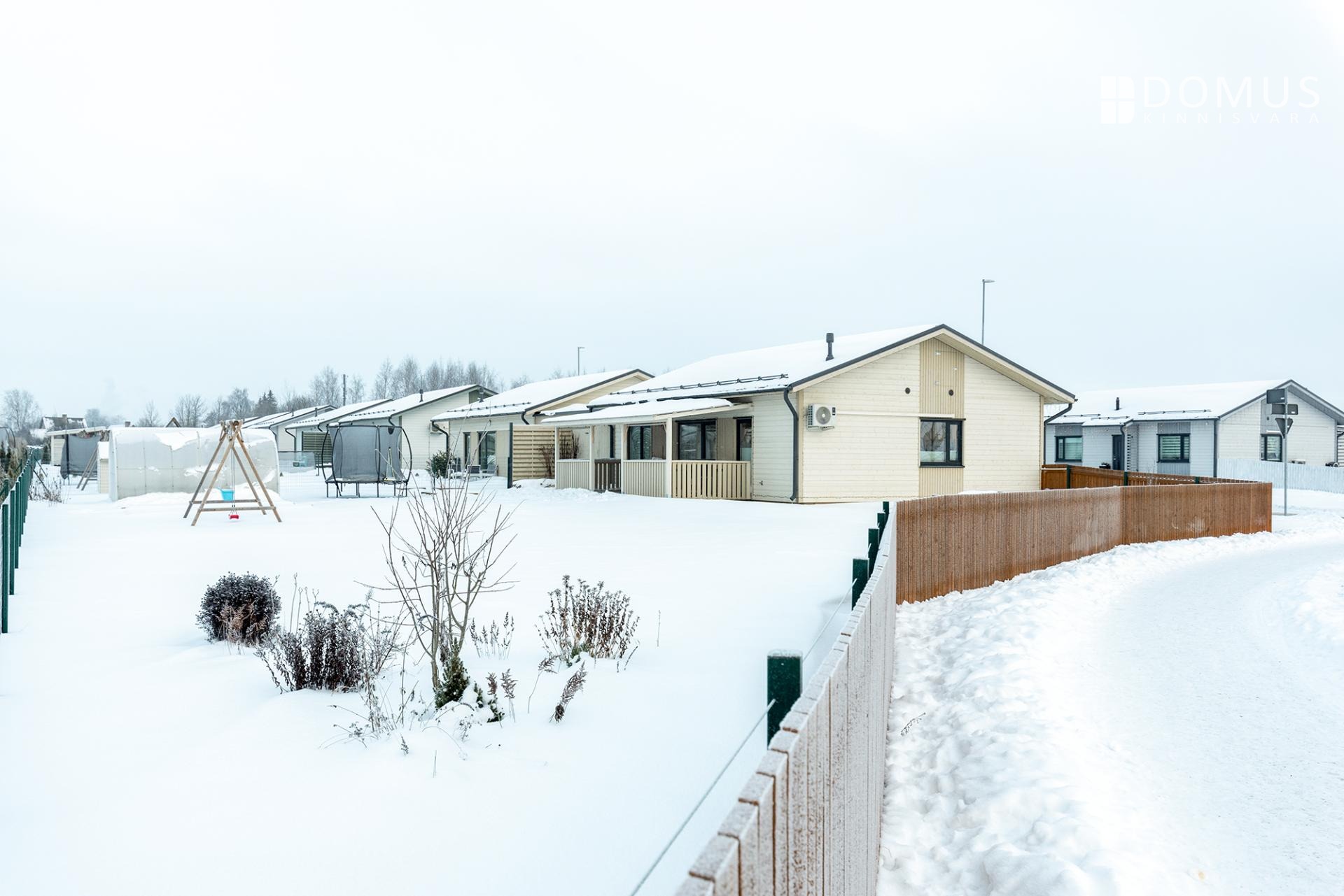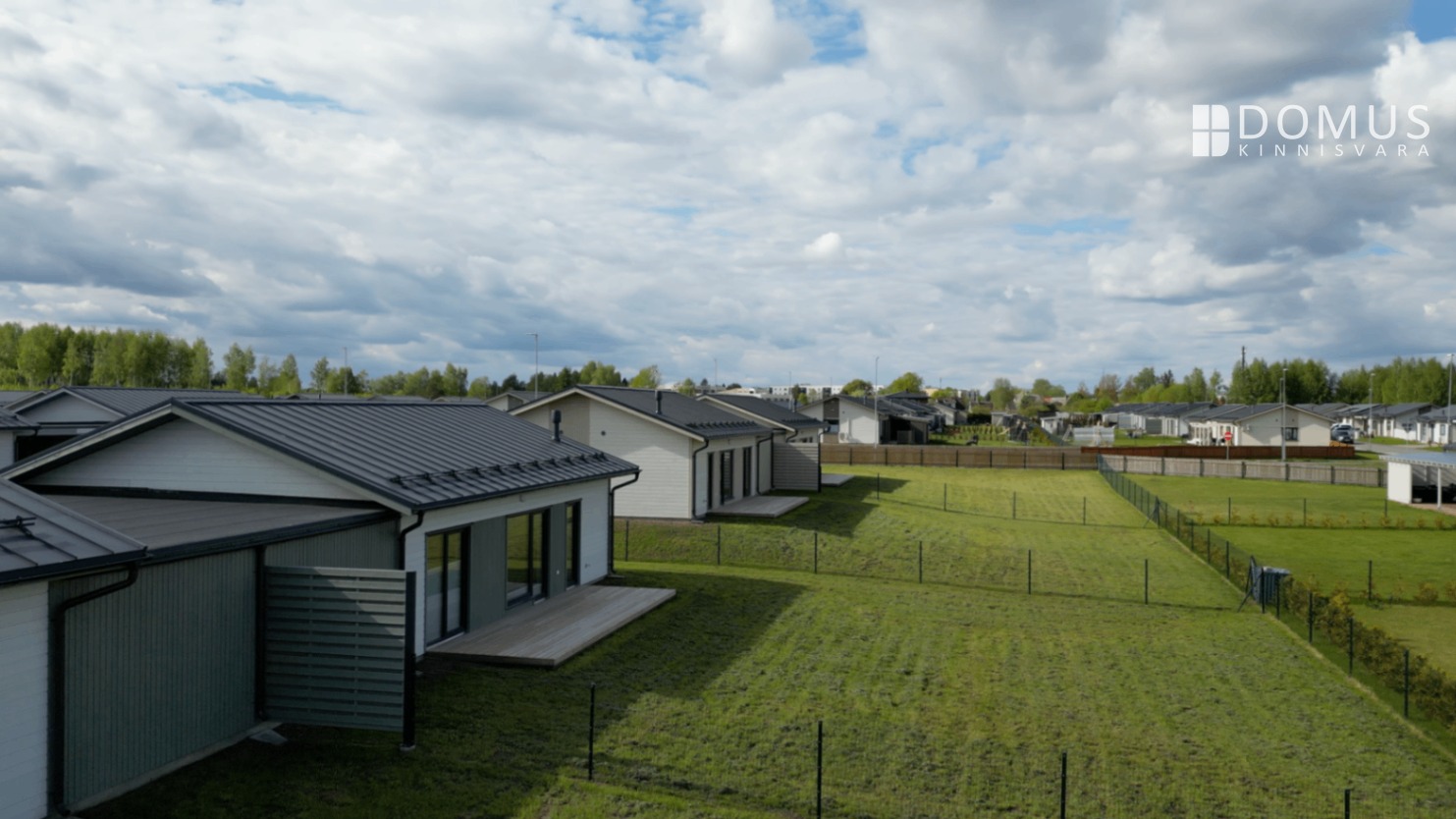 Hoones on olemas saun, 3 tuba, köök-elutuba, esik, suur katusega terrass ning aiaga piiratud muruplats – siin on ohutu lasta mudilasel või neljajalgsel sõbral elutoa uksest hoovi tormata. Autovarjualused ja kuuriboksid annavad lisaväärtust ning ühtse ilmega elamurajoon on silmale nauditav.