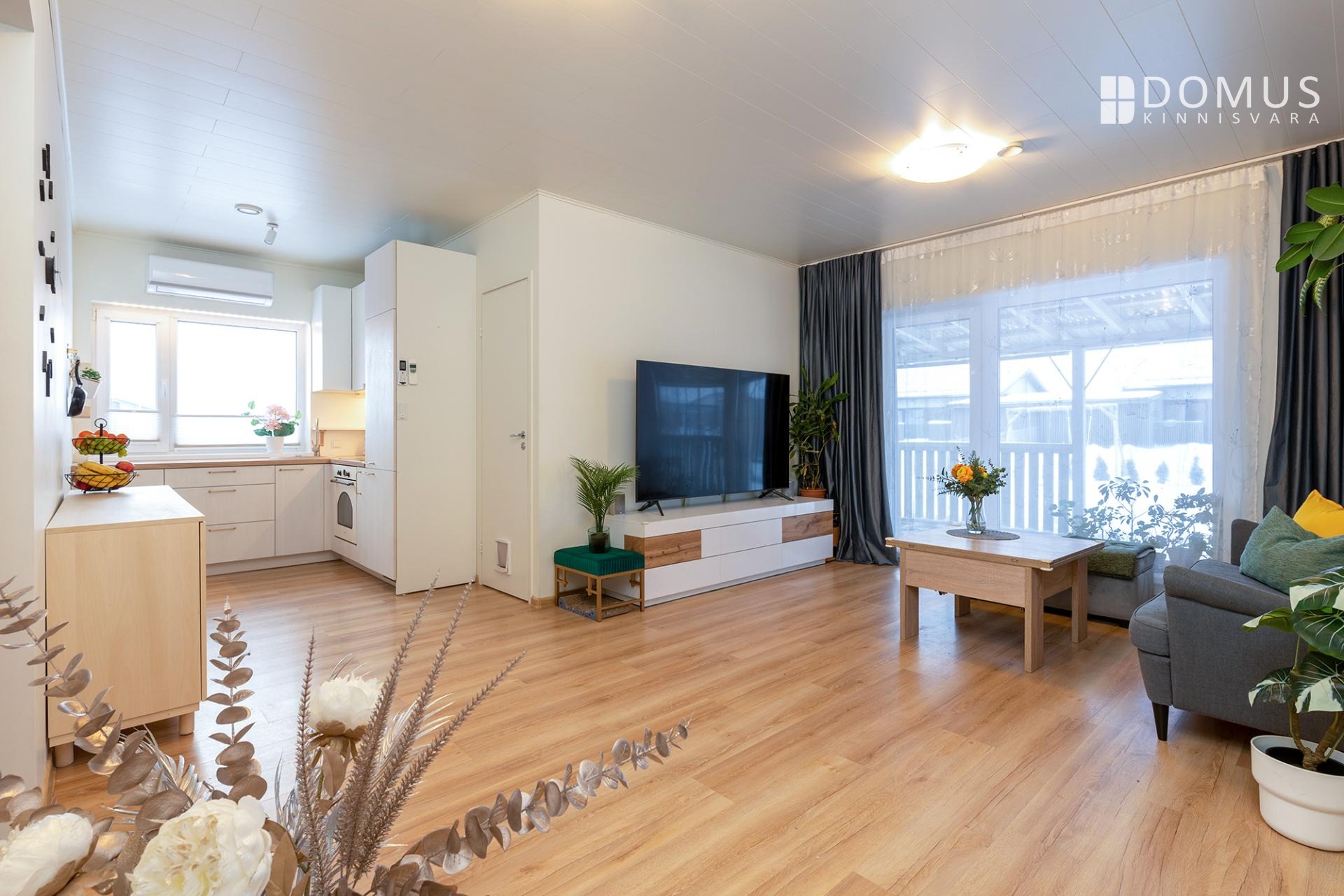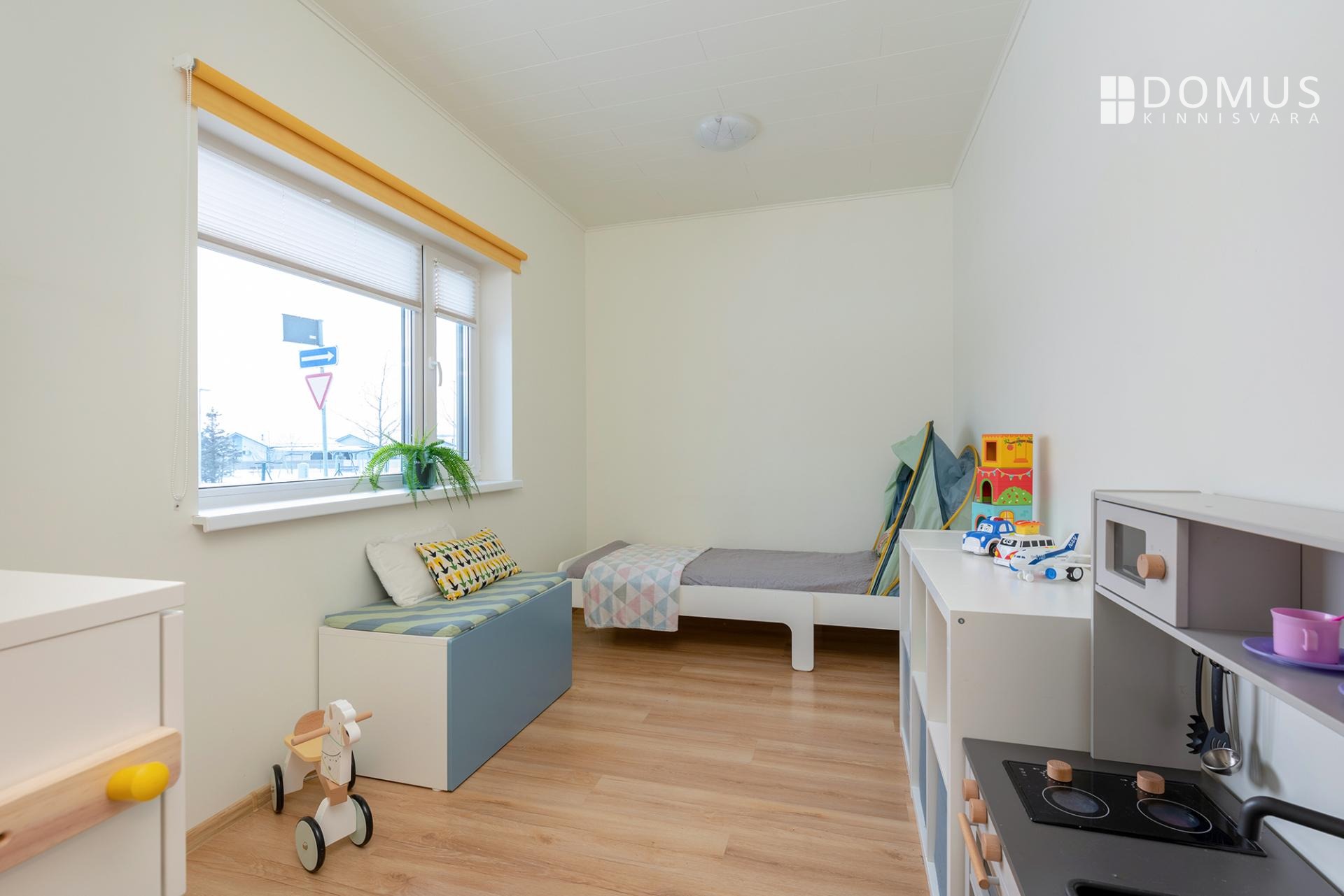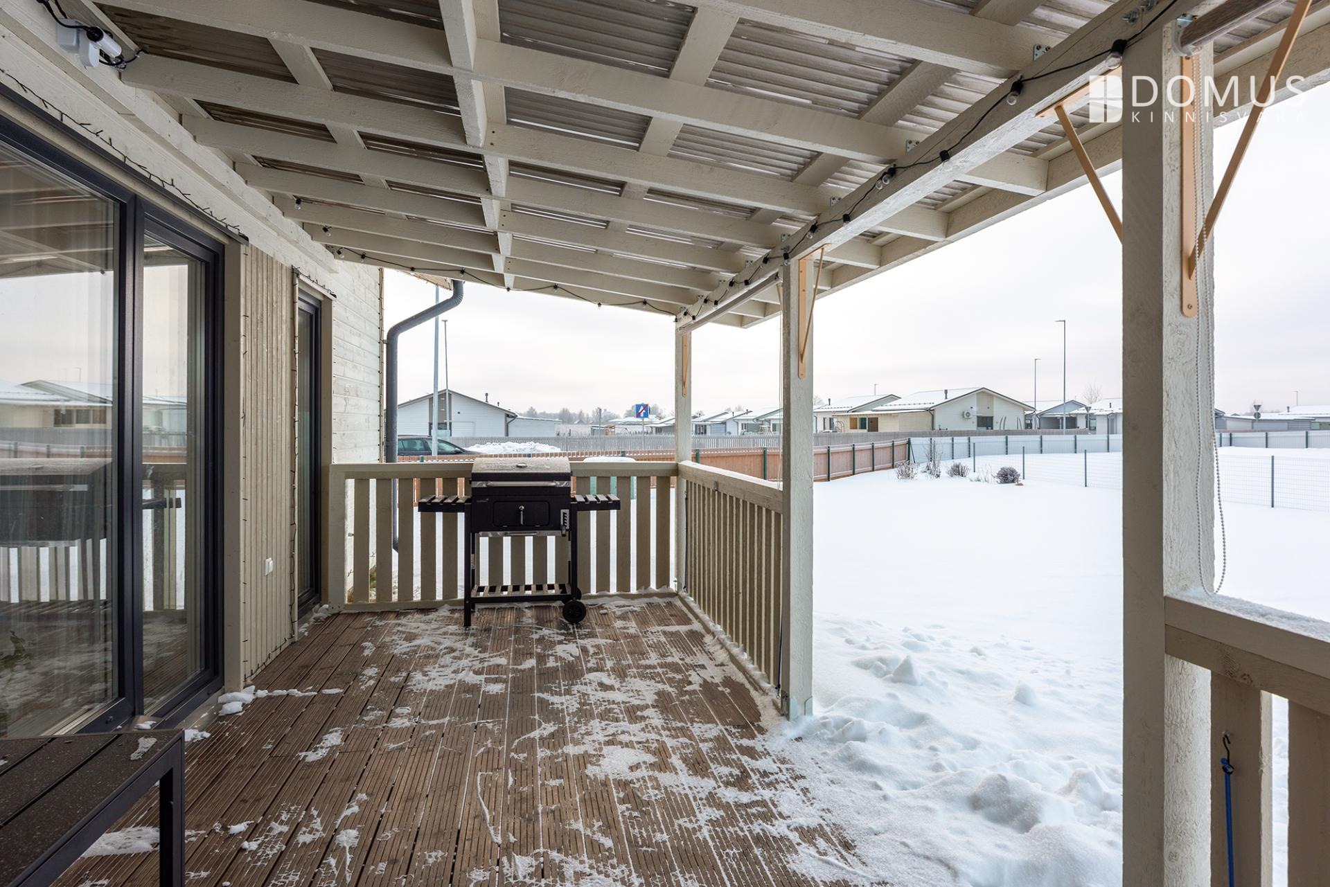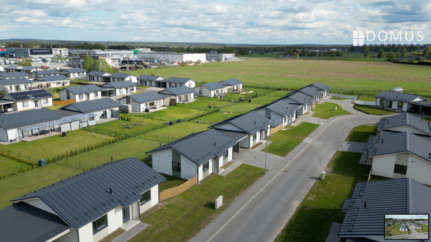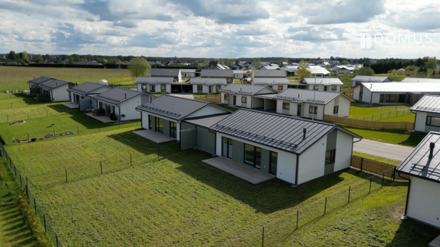 Hoones on olemas saun, 3 tuba, köök-elutuba, esik, suur katusega terrass ning aiaga piiratud muruplats – siin on ohutu lasta mudilasel või neljajalgsel sõbral elutoa uksest hoovi tormata. Autovarjualused ja kuuriboksid annavad lisaväärtust ning ühtse ilmega elamurajoon on silmale nauditav.