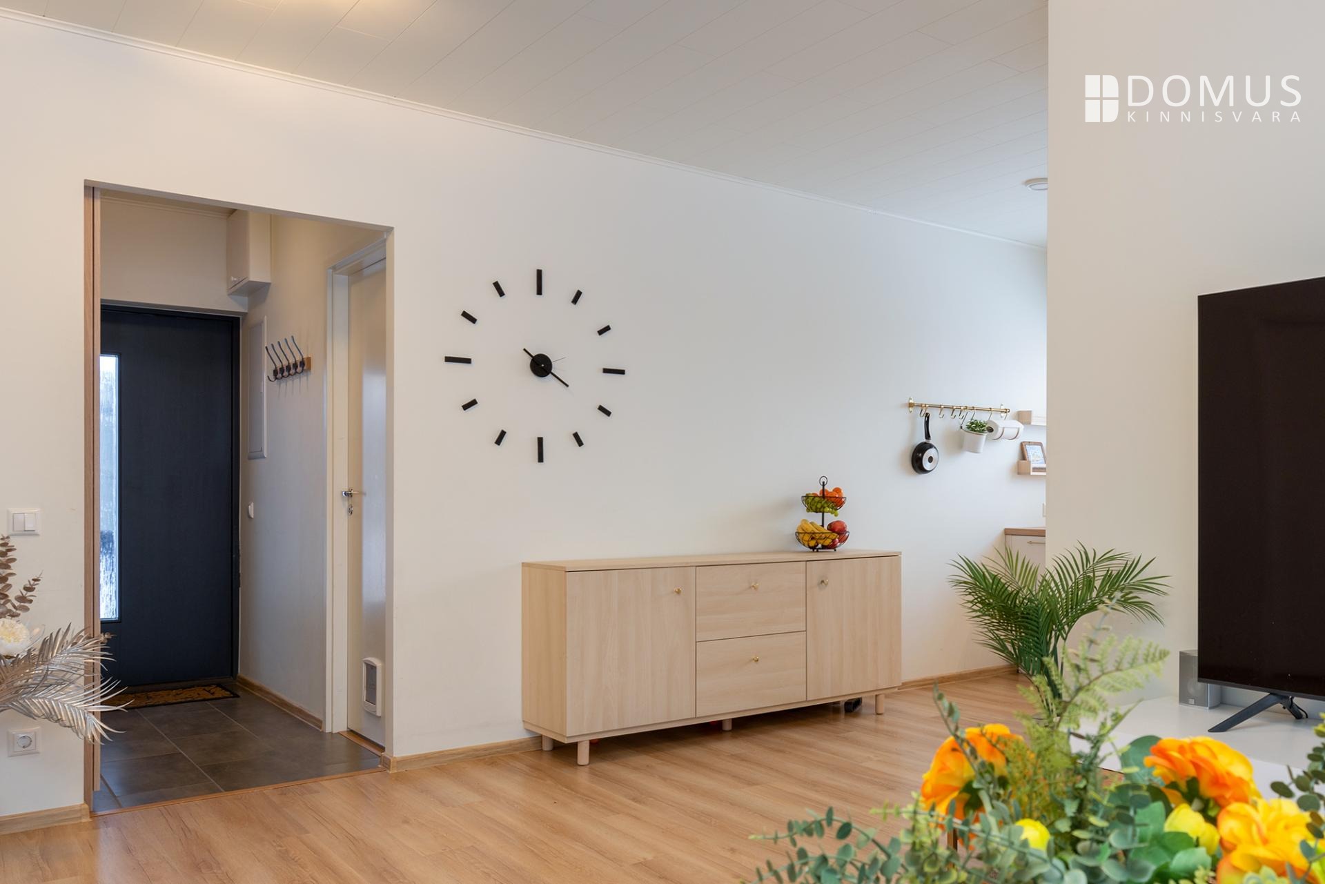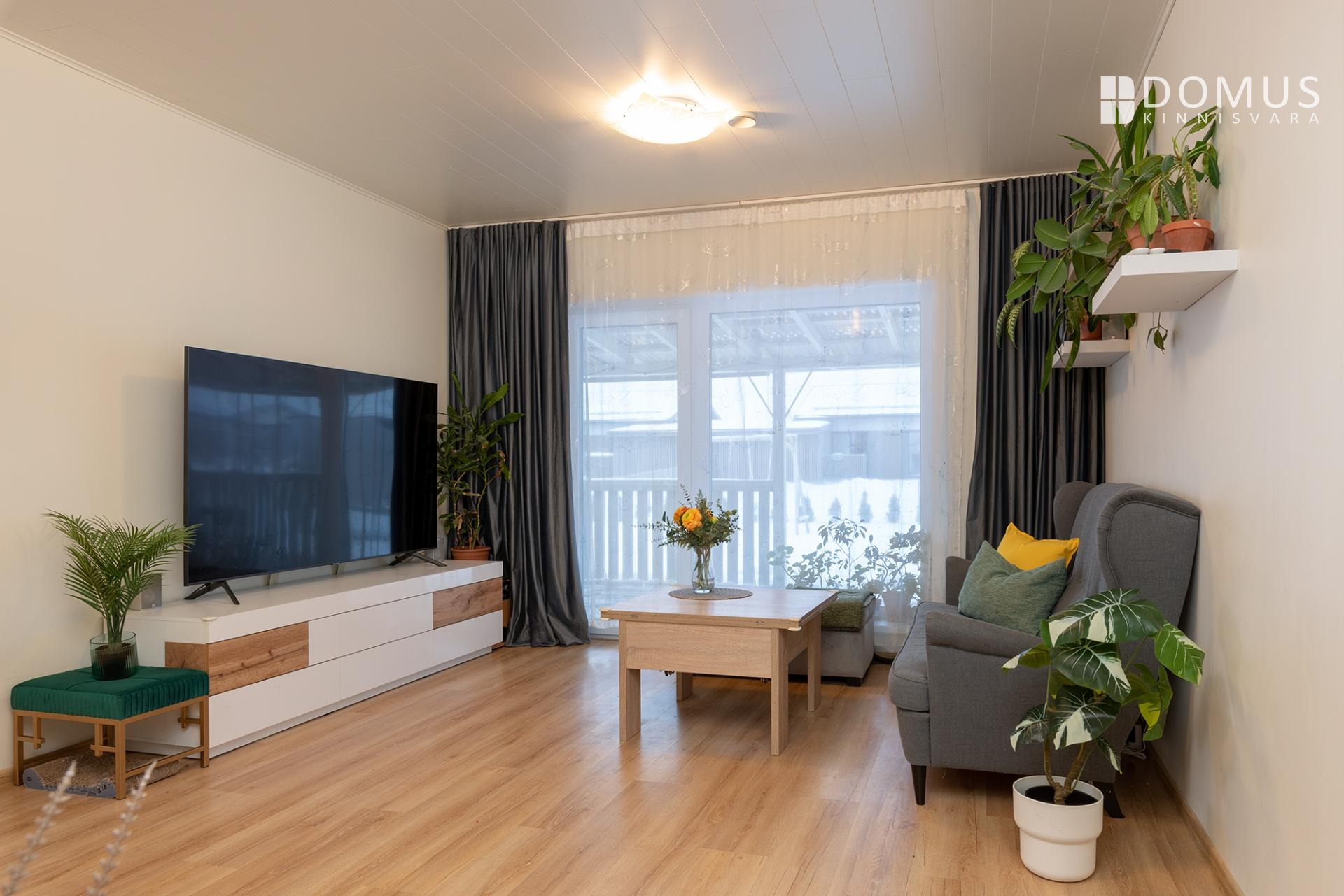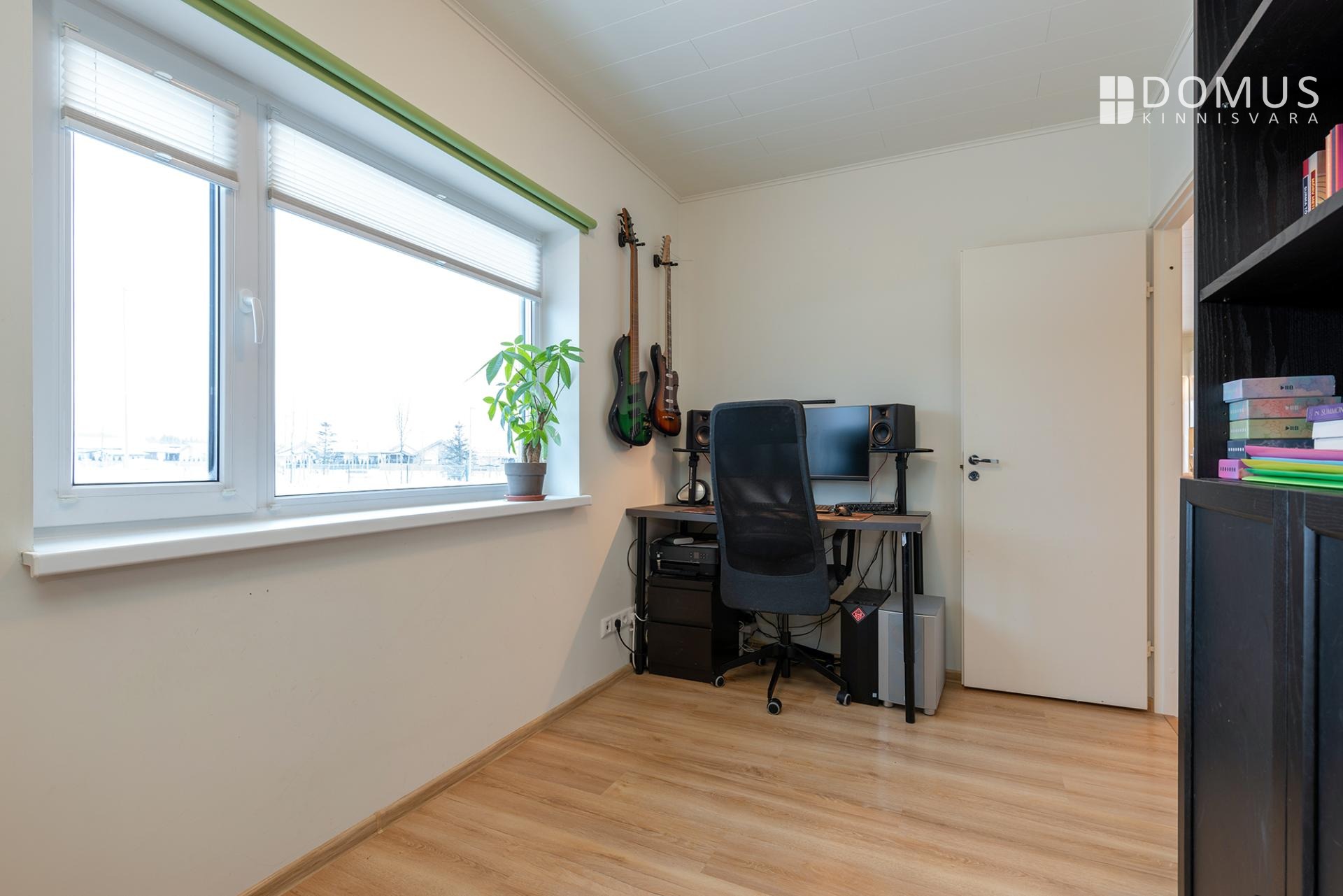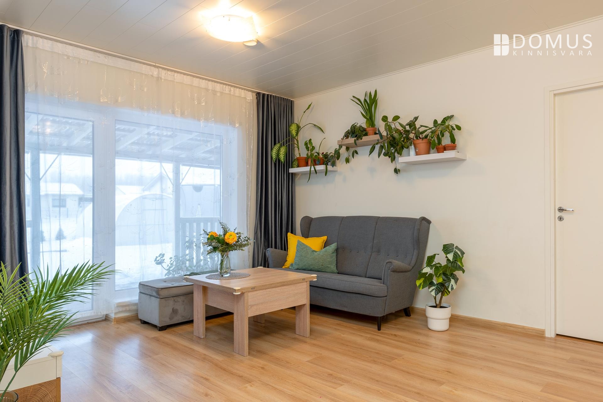 Hoones on olemas saun, 3 tuba, köök-elutuba, esik, suur katusega terrass ning aiaga piiratud muruplats – siin on ohutu lasta mudilasel või neljajalgsel sõbral elutoa uksest hoovi tormata. Autovarjualused ja kuuriboksid annavad lisaväärtust ning ühtse ilmega elamurajoon on silmale nauditav.