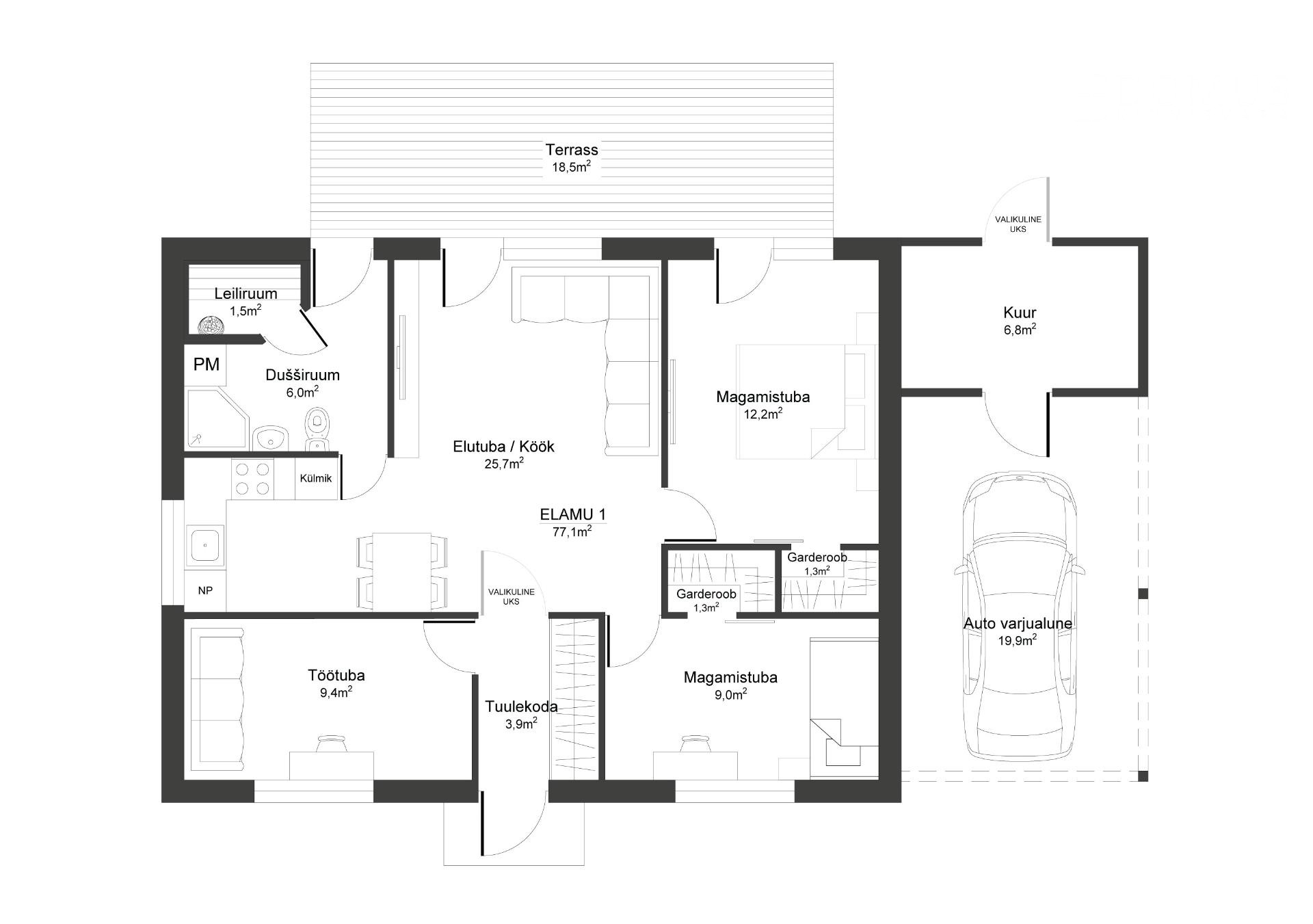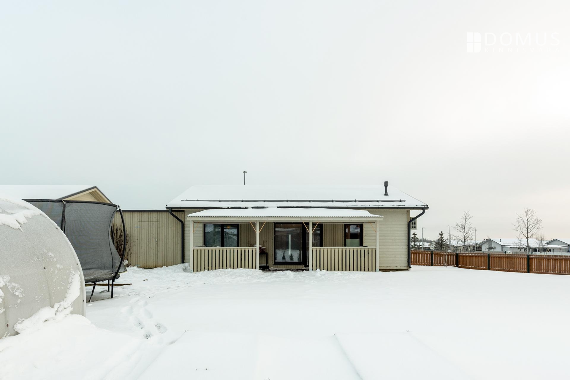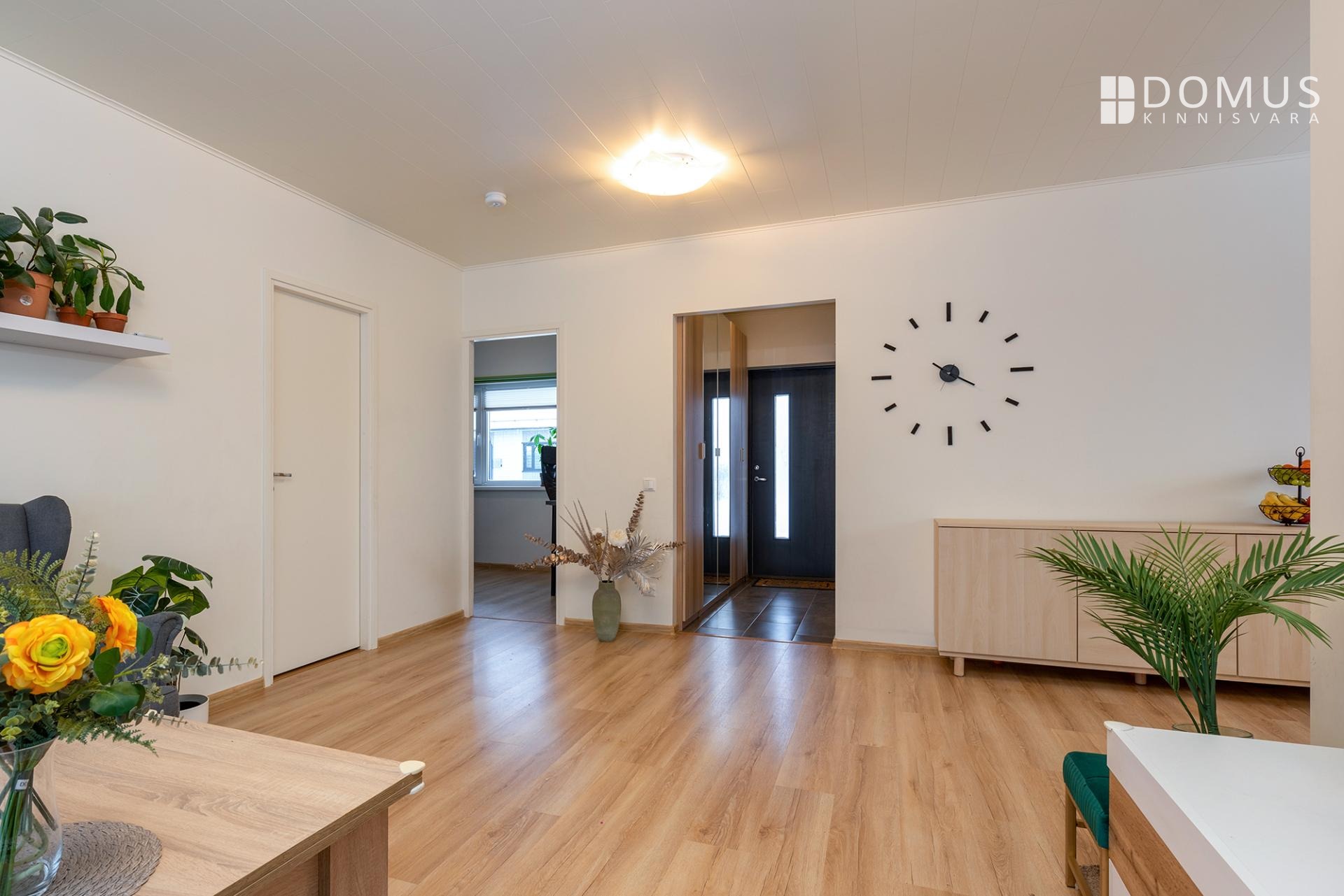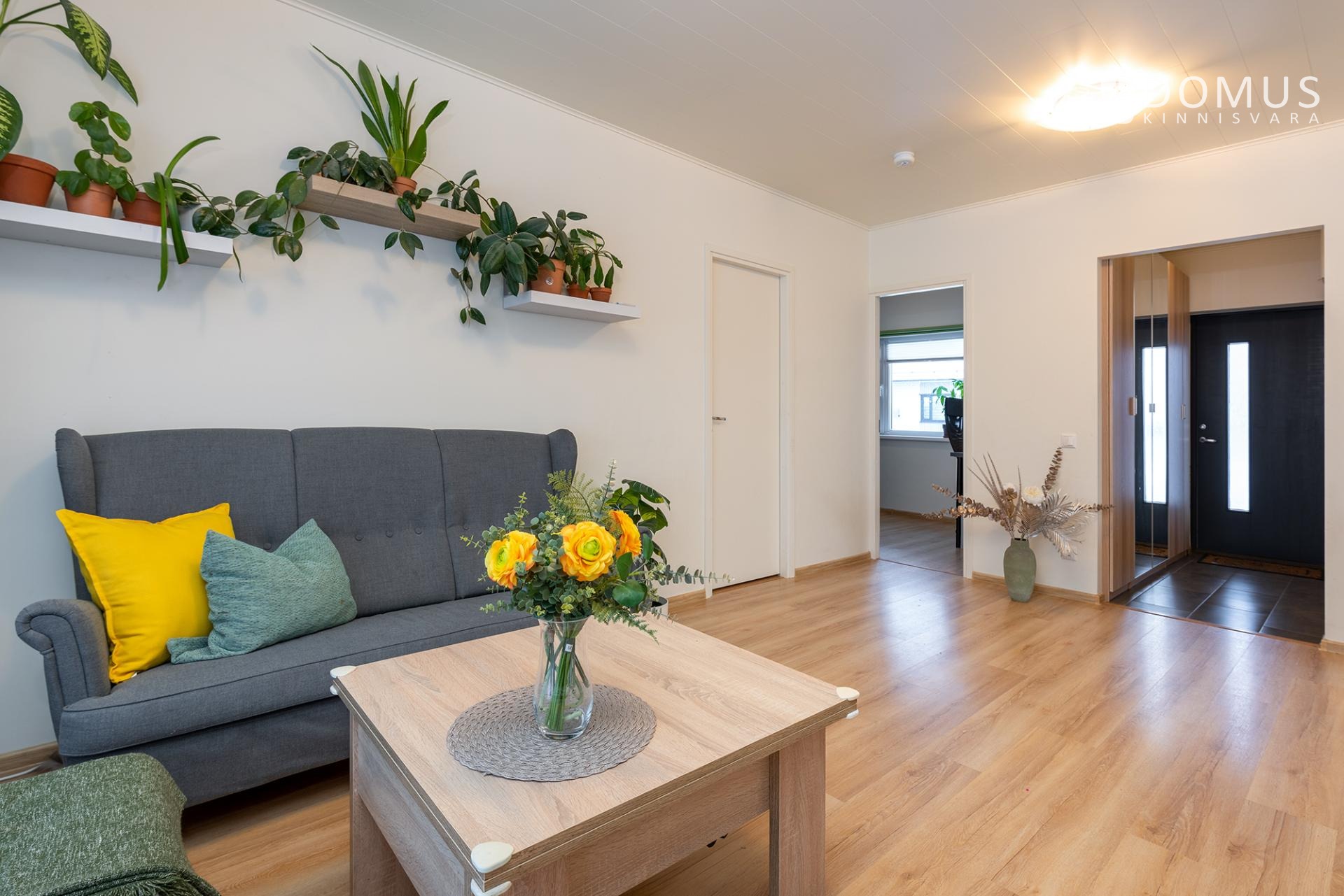 Hoones on olemas saun, 3 tuba, köök-elutuba, esik, suur katusega terrass ning aiaga piiratud muruplats – siin on ohutu lasta mudilasel või neljajalgsel sõbral elutoa uksest hoovi tormata. Autovarjualused ja kuuriboksid annavad lisaväärtust ning ühtse ilmega elamurajoon on silmale nauditav.