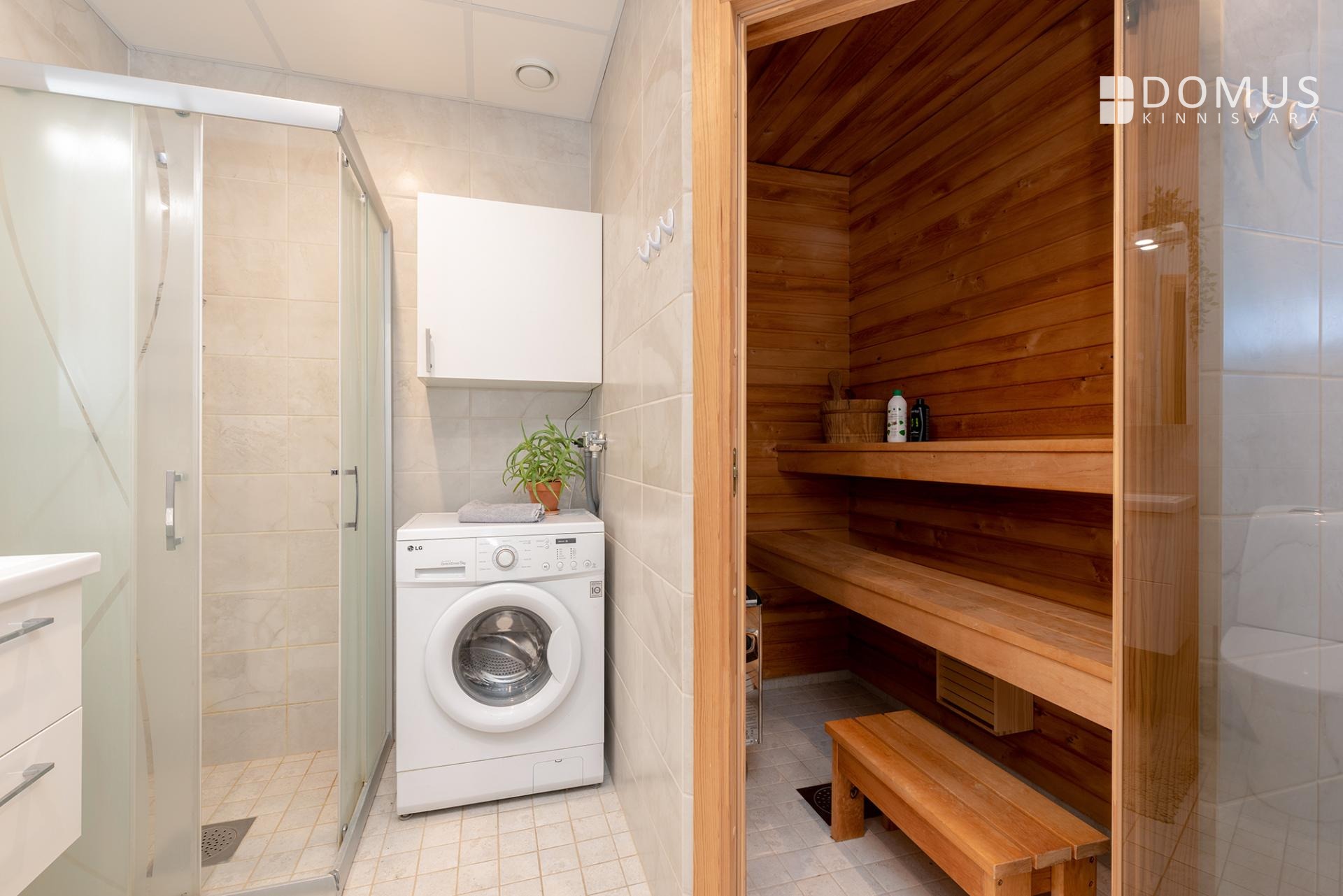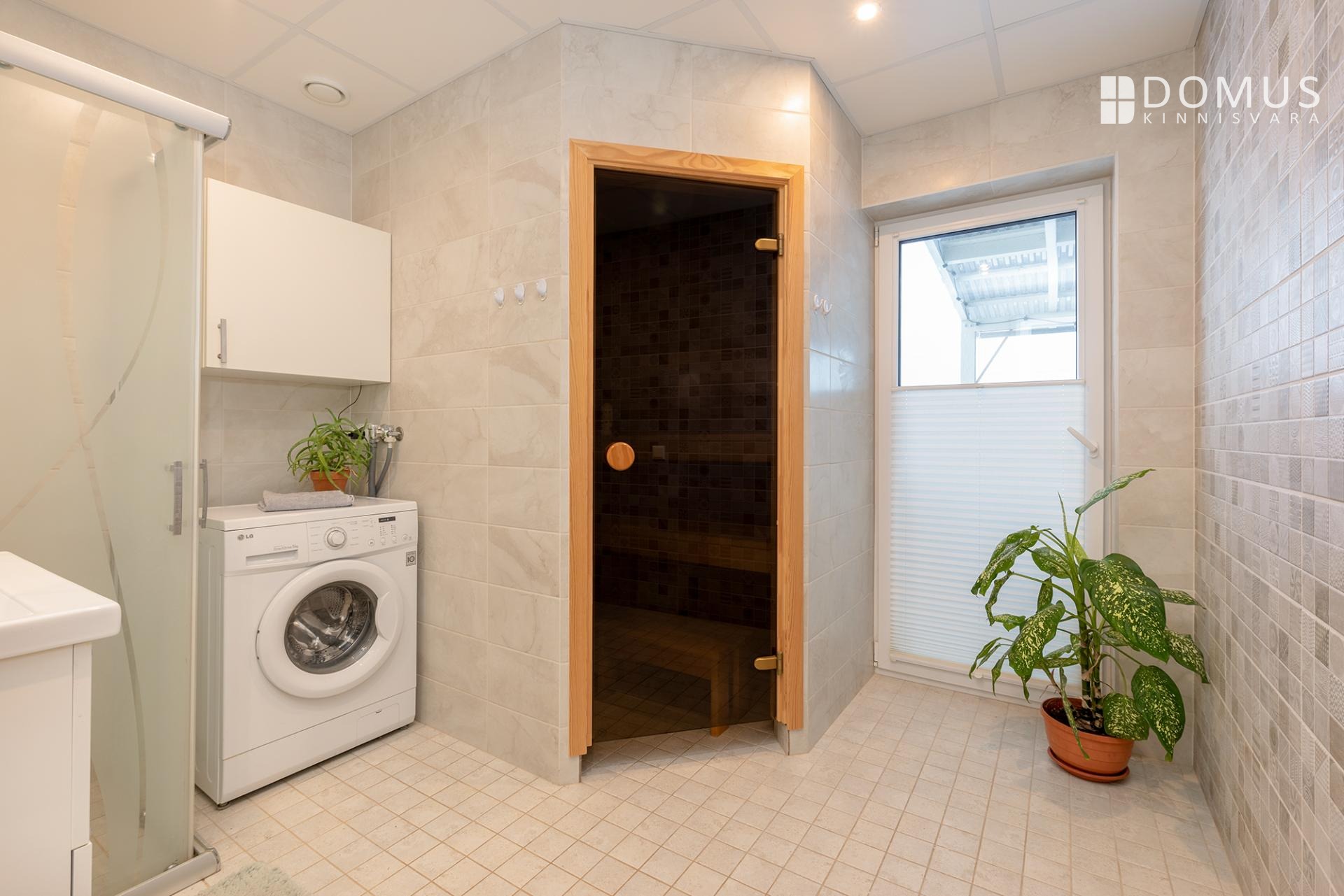 Saunas ootab sind Harvia keris, kuhu külmal talveõhtul on eriti mõnus sapsakas vett visata ning seejärel terrassiukse kaudu lumehange supsata. Magamistubade garderoobidele on paigaldatud liuguksed ning kodusema tunde loomiseks on lisaks seinavärvile kasutatud ka emotsiooni loovat tapeeti.